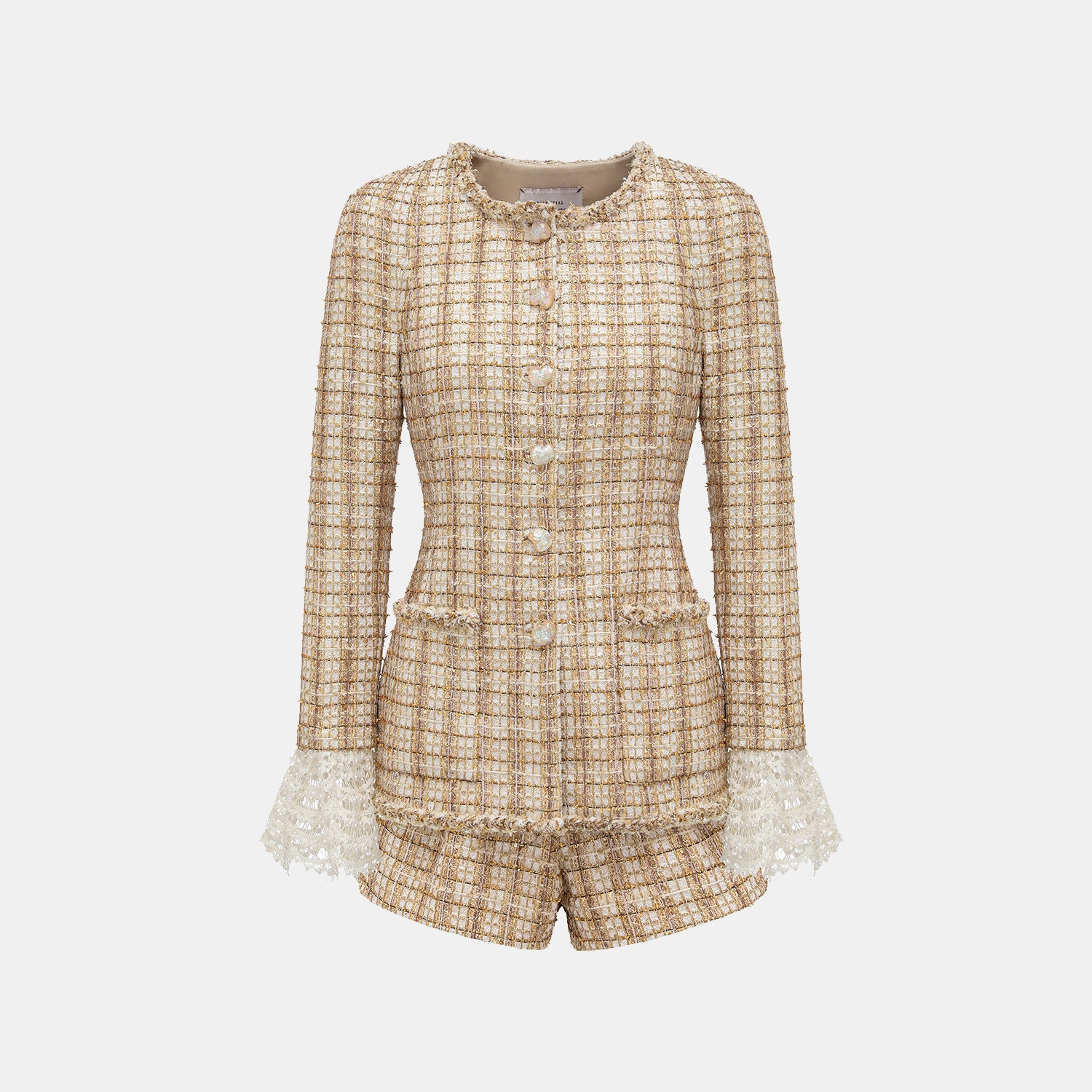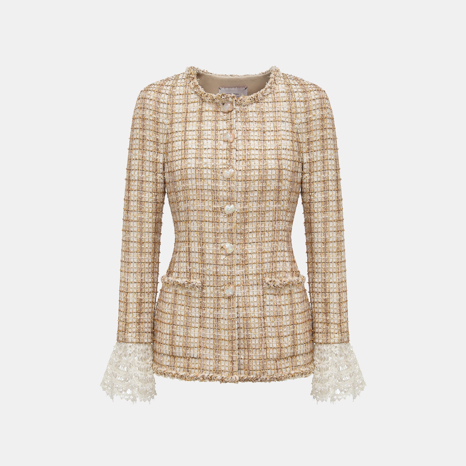"Sloane Ave." 法國頂級縷金工藝蕾絲拚袖修身花呢外套—Versailles Chanson凡爾賽香頌