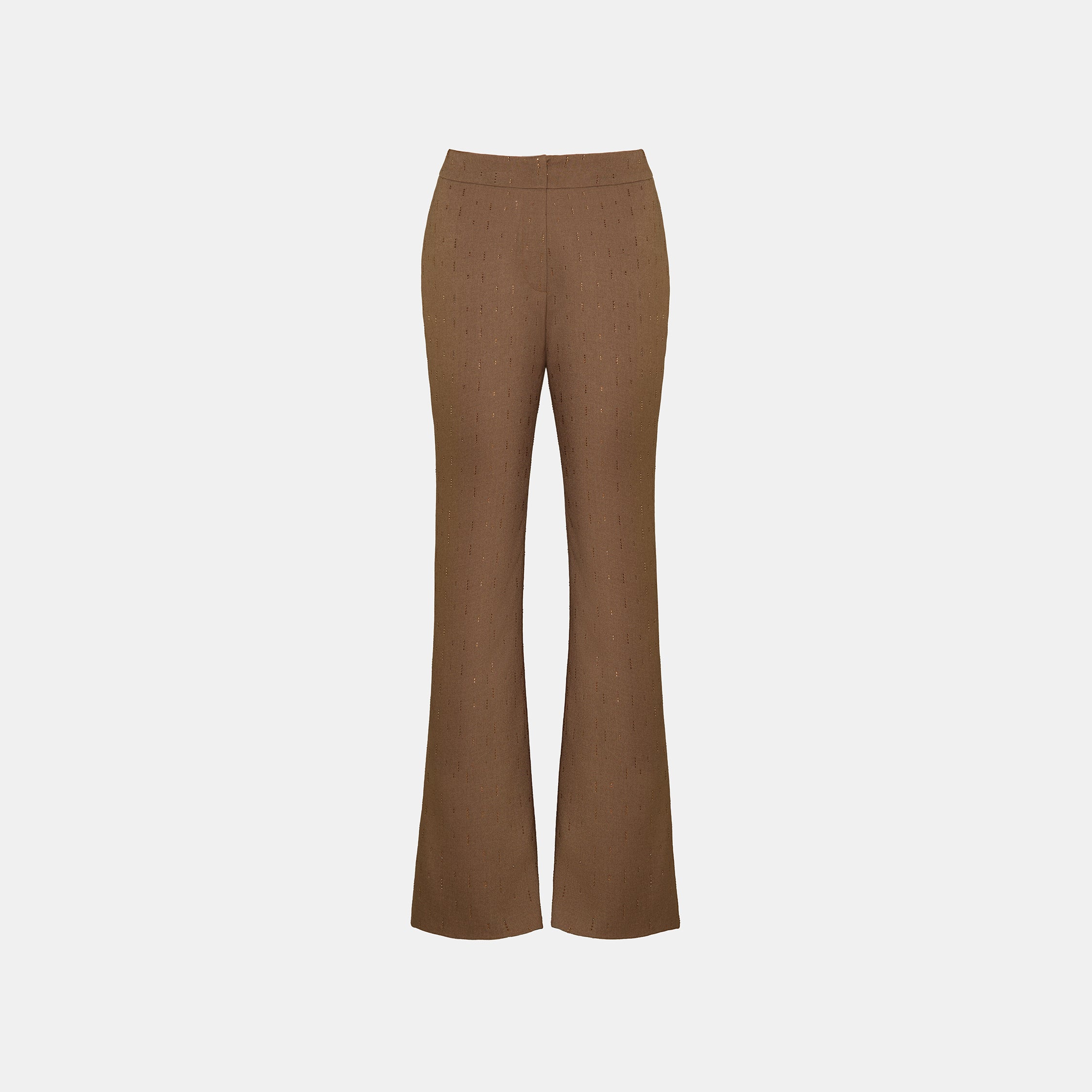 “Winter Diary” 100%Cashmere浮雕緞繡星點長版針織長褲—Sandal Light檀香白茶