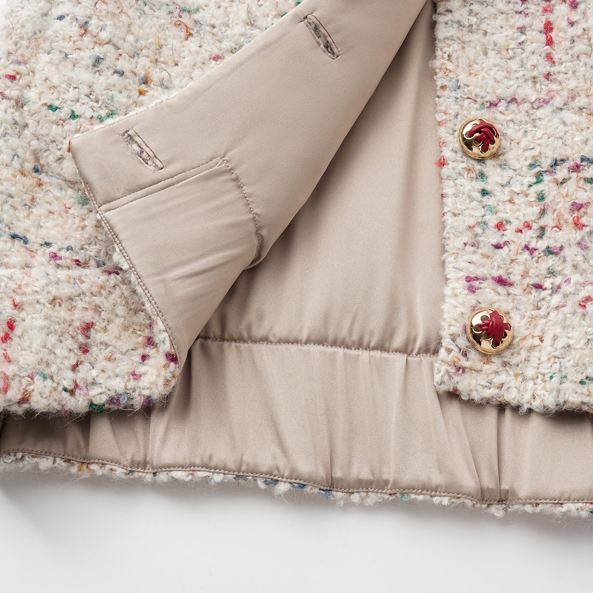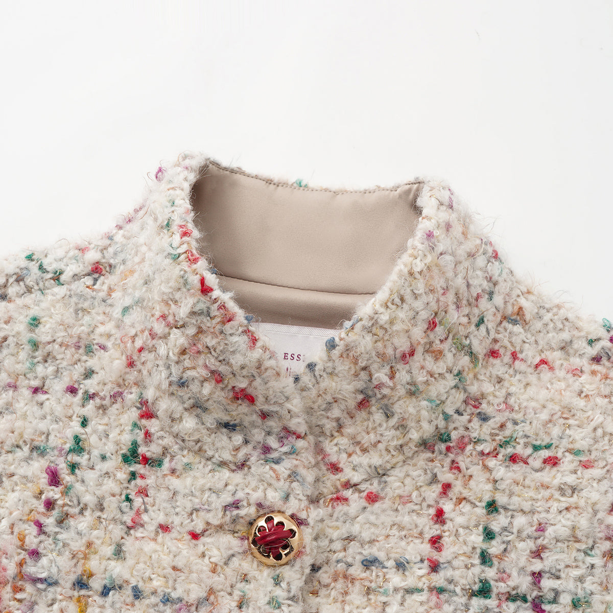 妳可以選擇將花呢外套搭配一件簡約素T與牛仔褲,輕鬆應對日常通勤;也能將精緻的立體蕾絲上衣與寬腿長褲搭配,在週末午後的藝文活動中展現層次品味。這不僅是一套衣服,而是一種「高級但不遙遠」的穿衣態度,是妳風格語彙的延伸,而非束縛。