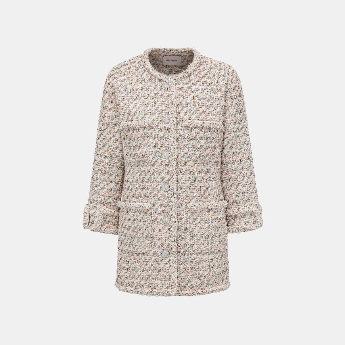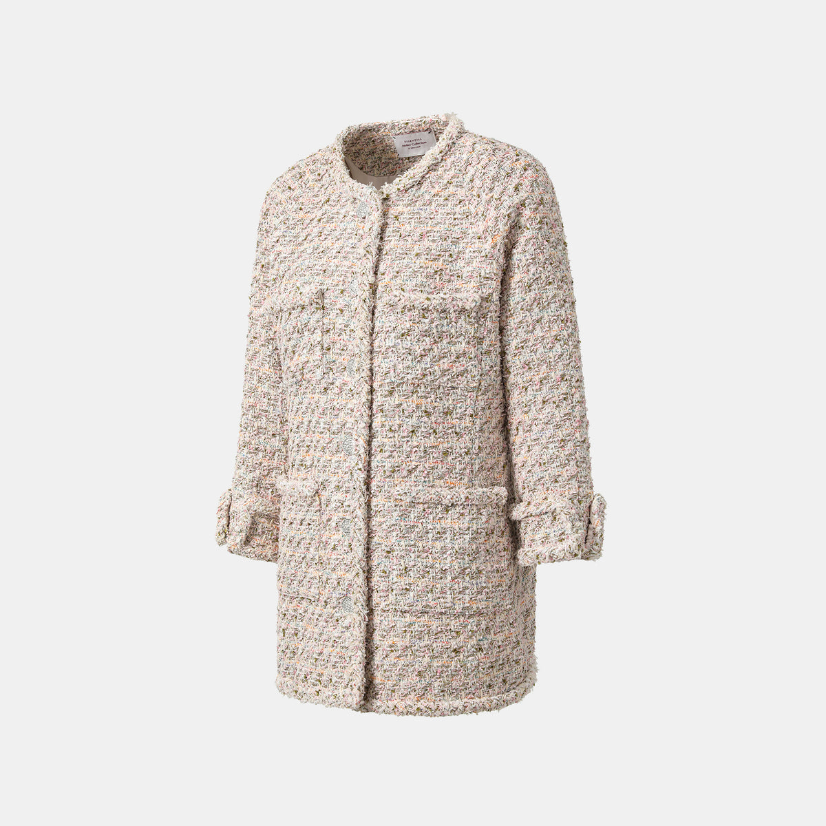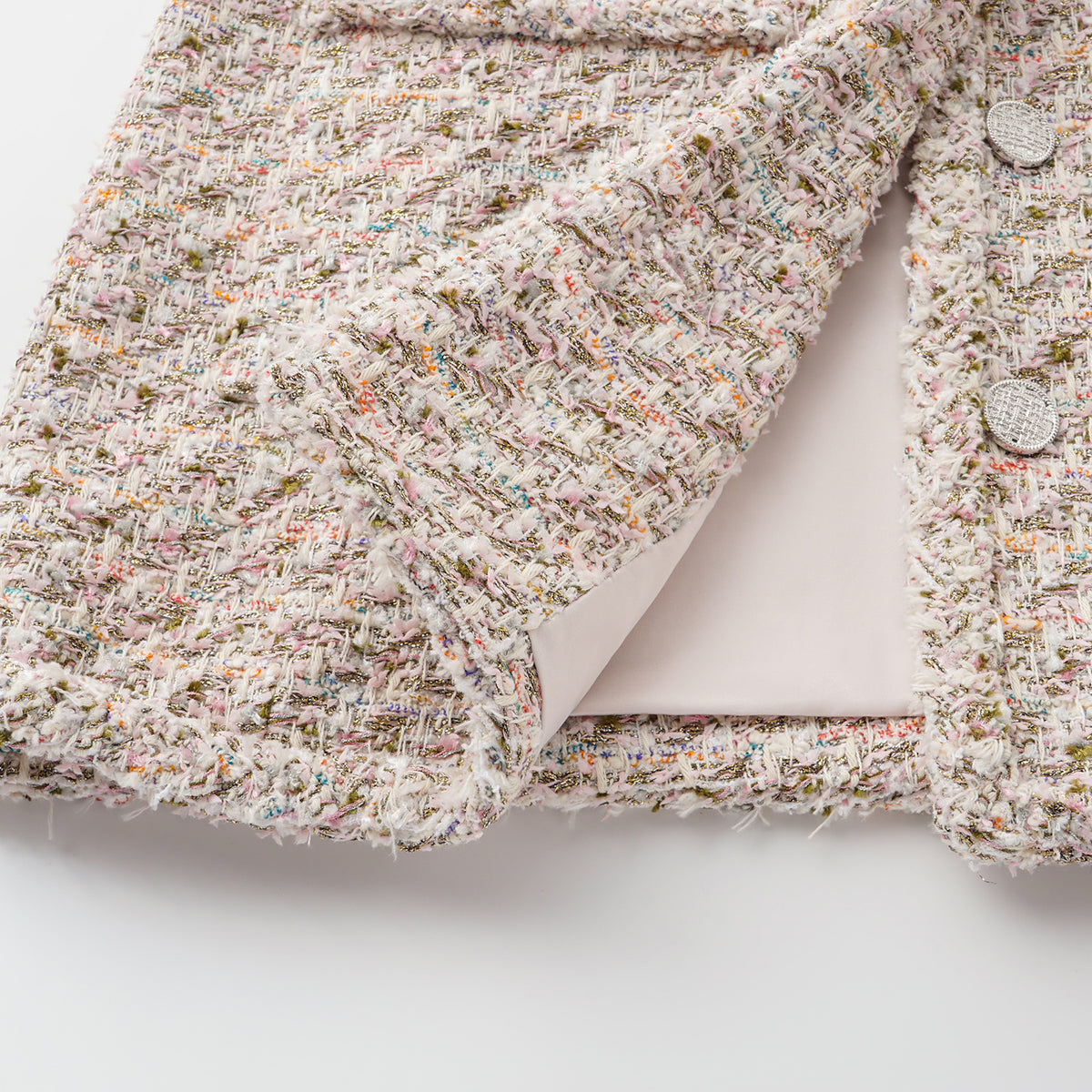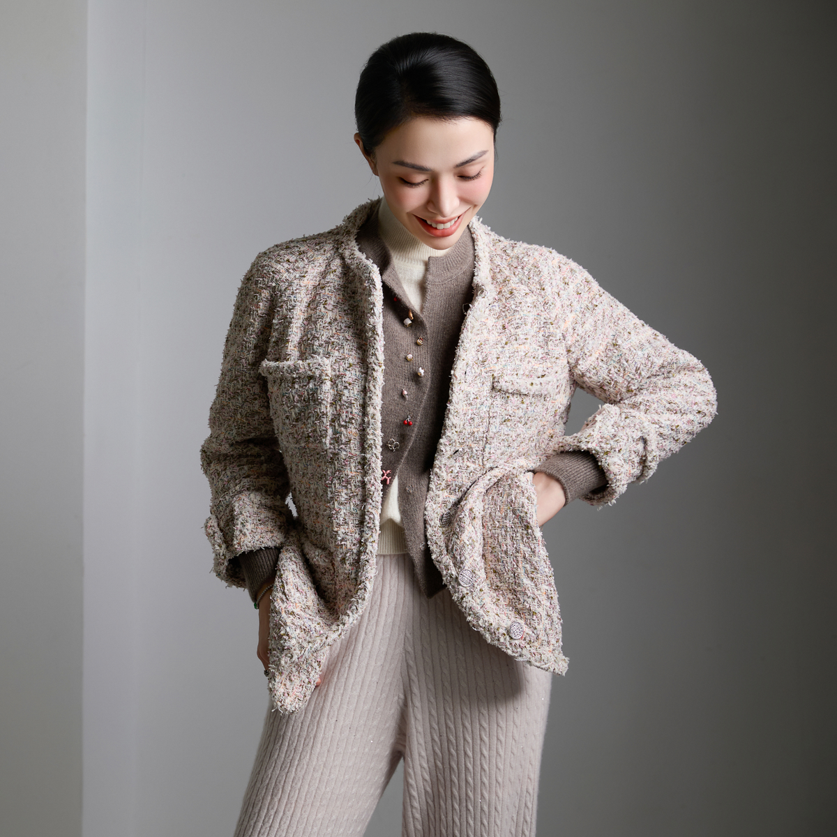 妳可以選擇將花呢外套搭配一件簡約素T與牛仔褲,輕鬆應對日常通勤;也能將精緻的立體蕾絲上衣與寬腿長褲搭配,在週末午後的藝文活動中展現層次品味。這不僅是一套衣服,而是一種「高級但不遙遠」的穿衣態度,是妳風格語彙的延伸,而非束縛。