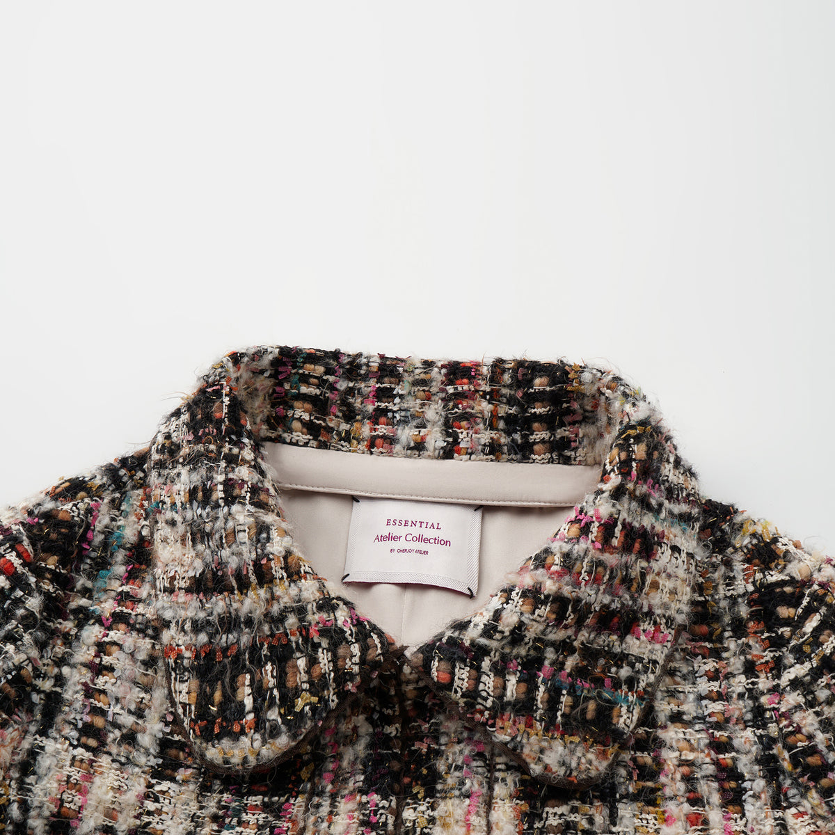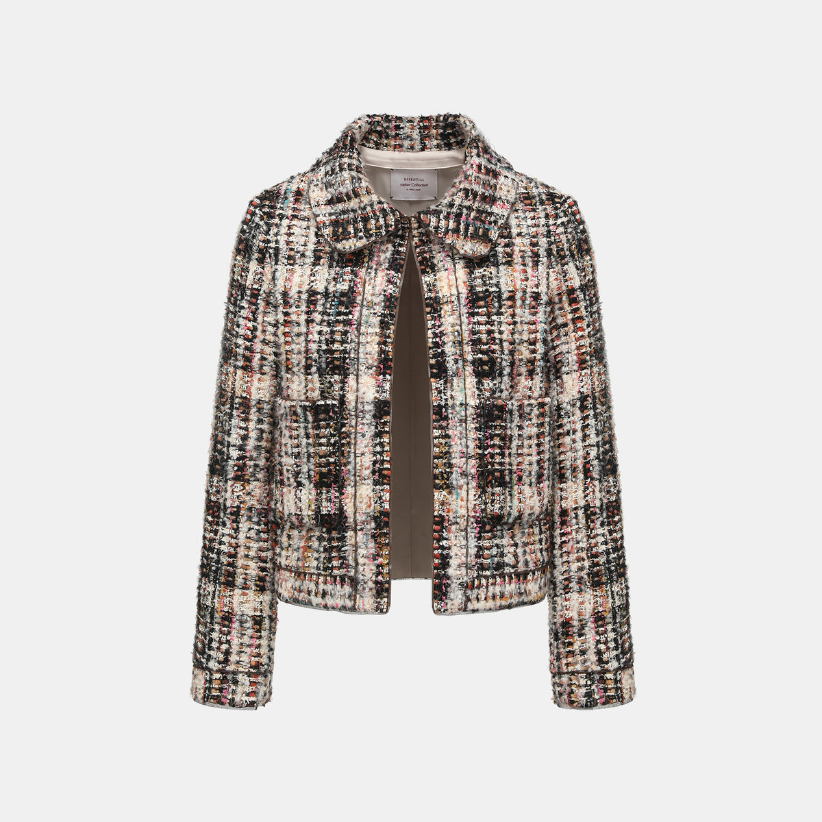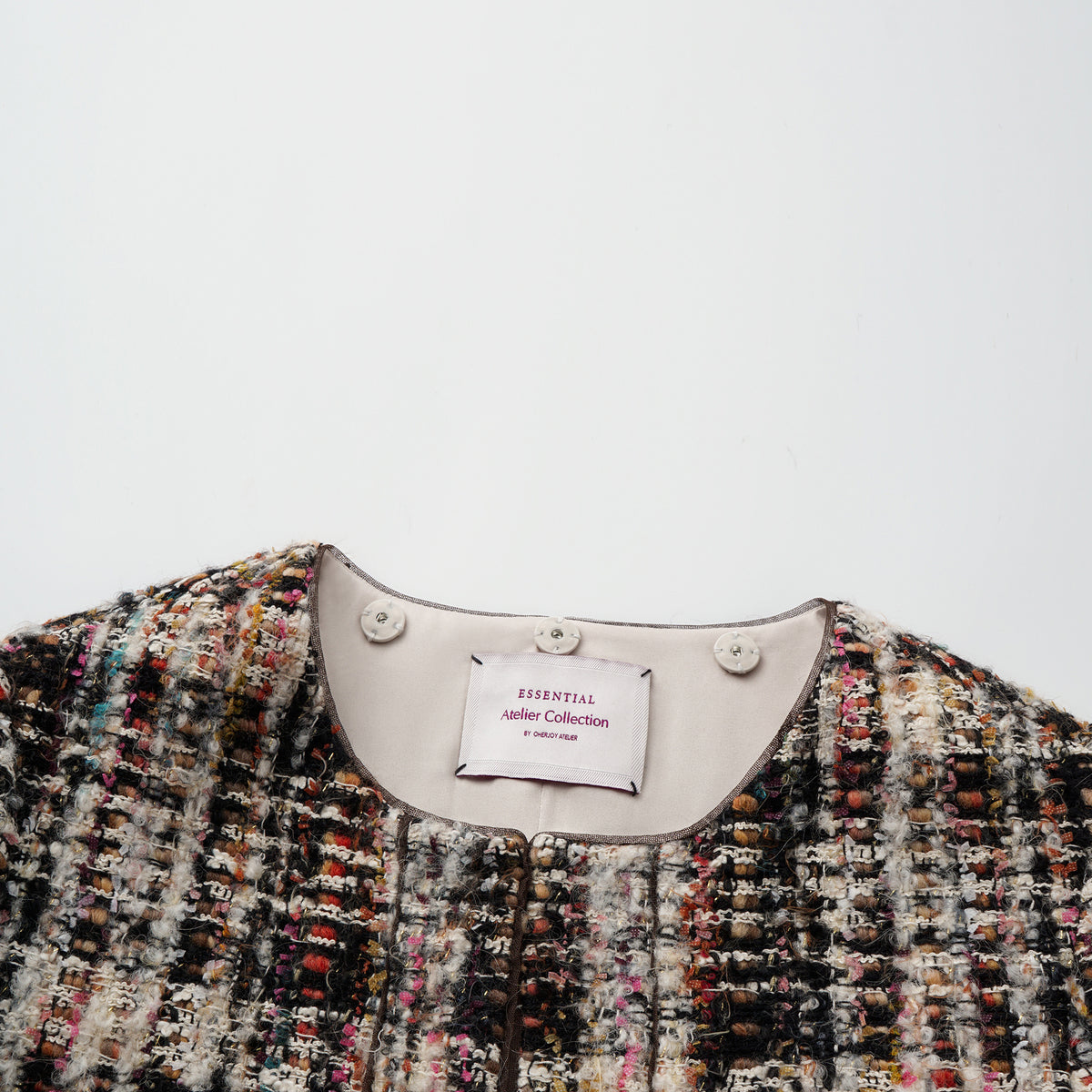 妳可以選擇將花呢外套搭配一件簡約素T與牛仔褲,輕鬆應對日常通勤;也能將精緻的立體蕾絲上衣與寬腿長褲搭配,在週末午後的藝文活動中展現層次品味。這不僅是一套衣服,而是一種「高級但不遙遠」的穿衣態度,是妳風格語彙的延伸,而非束縛。