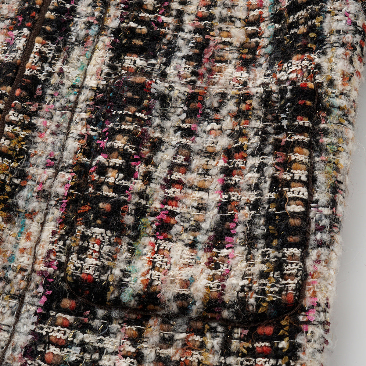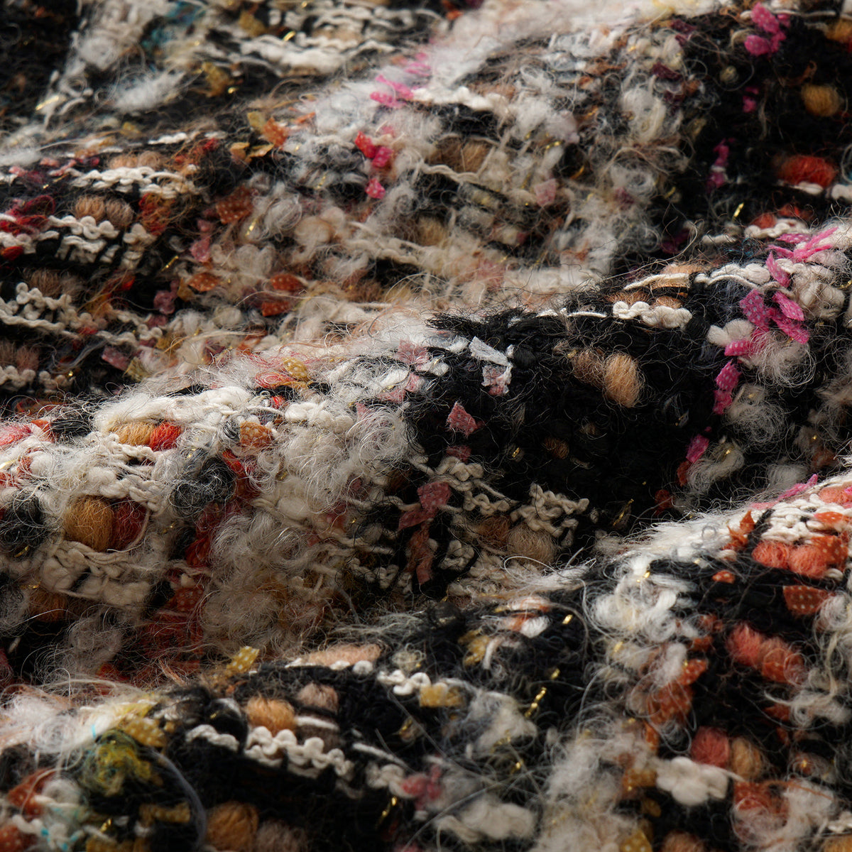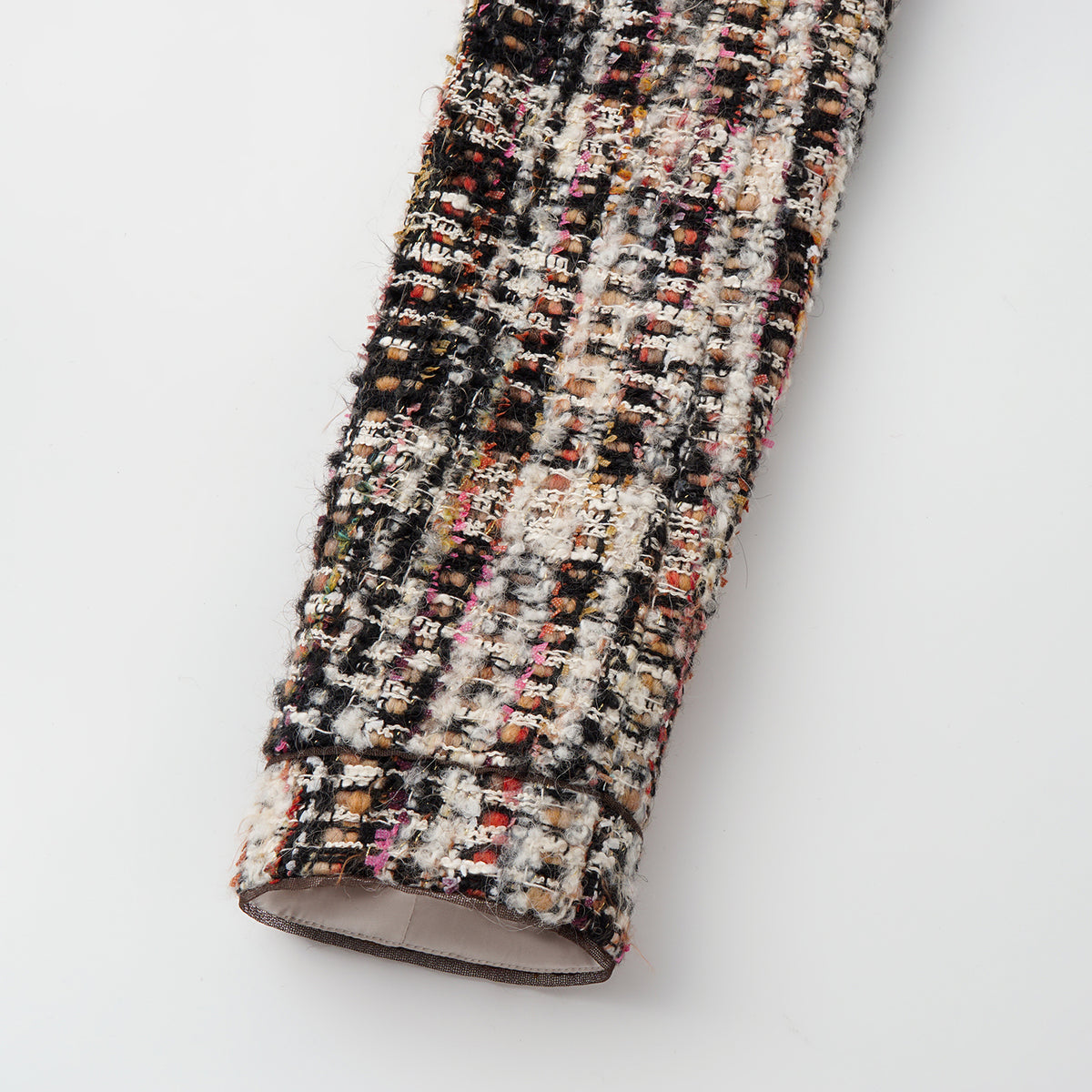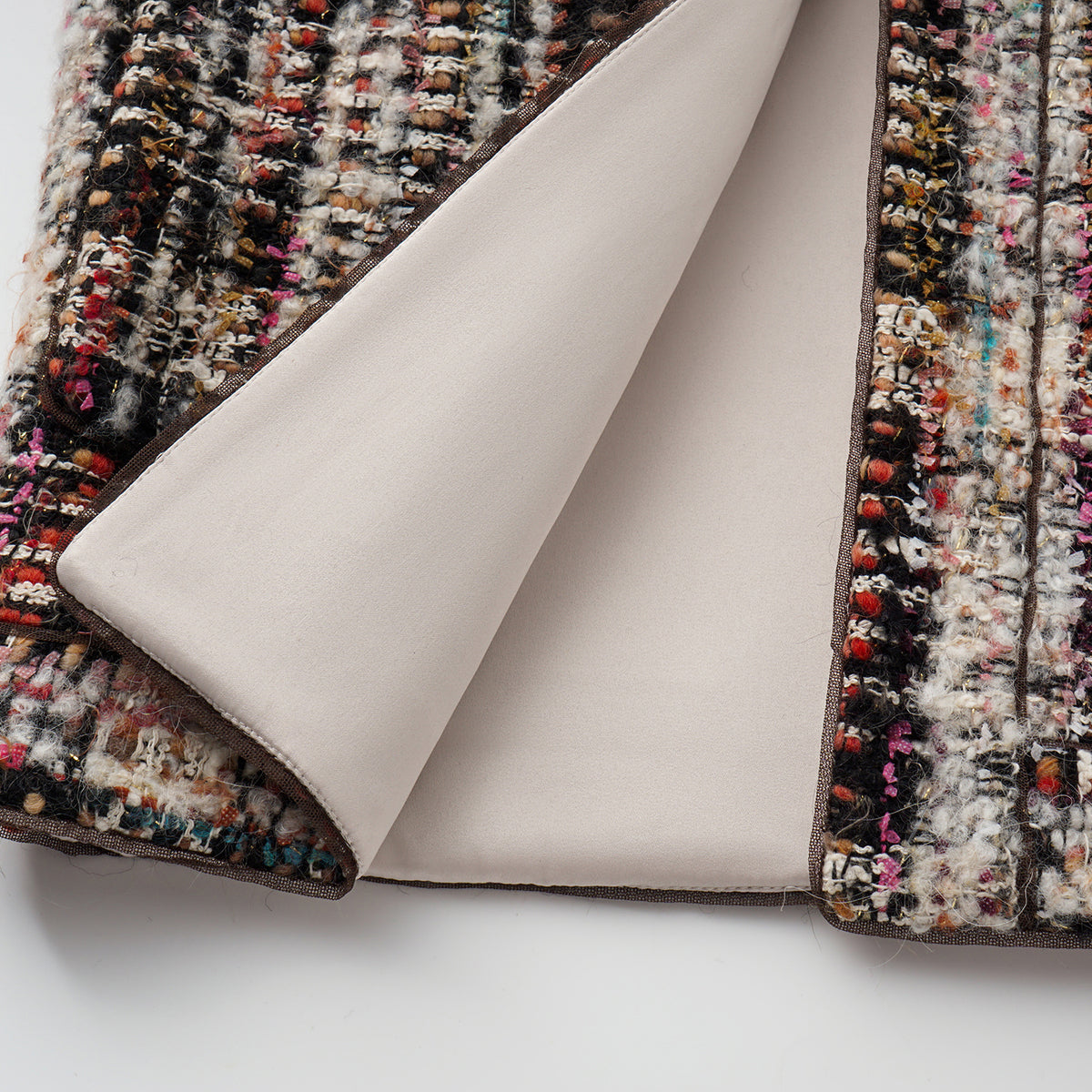 法國立體絨圈格織花呢,以層次豐富的毛線交錯出柔軟觸感與細膩光澤。色彩在織紋間流動,如午後陽光映照的城市光影,溫柔而有深度。