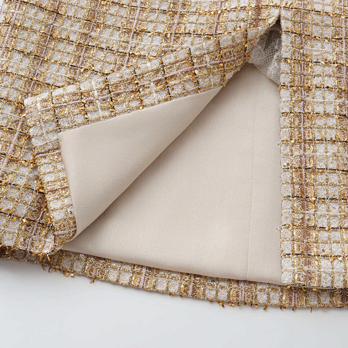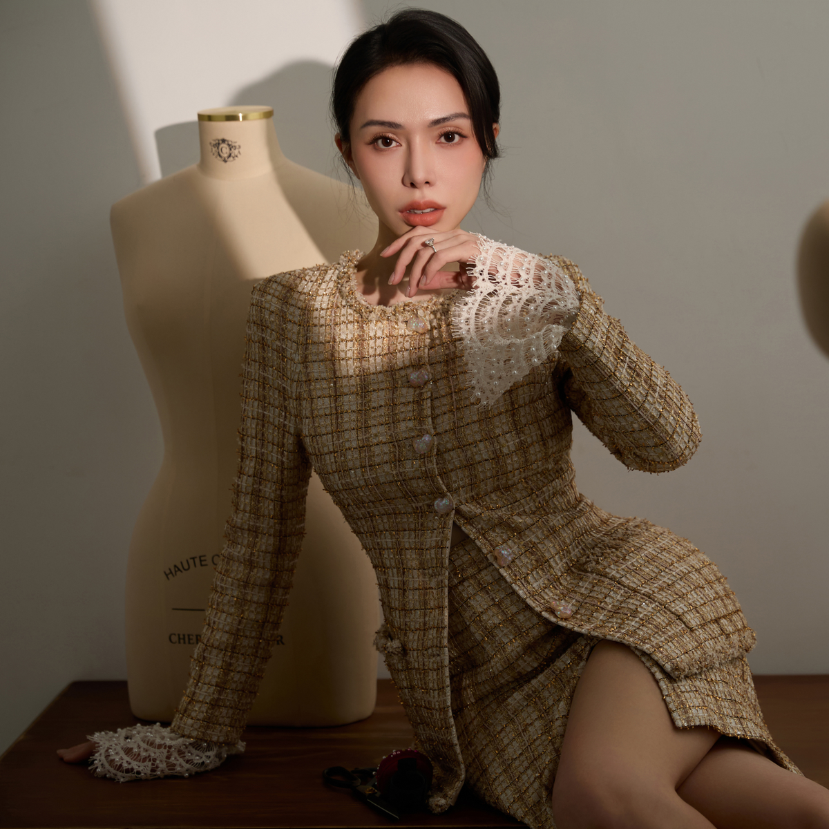妳可以選擇將花呢外套搭配一件簡約素T與牛仔褲,輕鬆應對日常通勤;也能將精緻的立體蕾絲上衣與寬腿長褲搭配,在週末午後的藝文活動中展現層次品味。這不僅是一套衣服,而是一種「高級但不遙遠」的穿衣態度,是妳風格語彙的延伸,而非束縛。