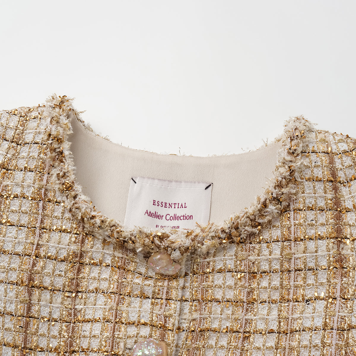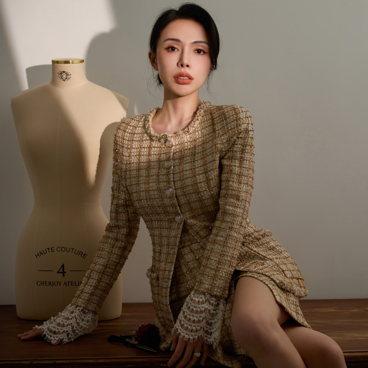 妳可以選擇將花呢外套搭配一件簡約素T與牛仔褲,輕鬆應對日常通勤;也能將精緻的立體蕾絲上衣與寬腿長褲搭配,在週末午後的藝文活動中展現層次品味。這不僅是一套衣服,而是一種「高級但不遙遠」的穿衣態度,是妳風格語彙的延伸,而非束縛。