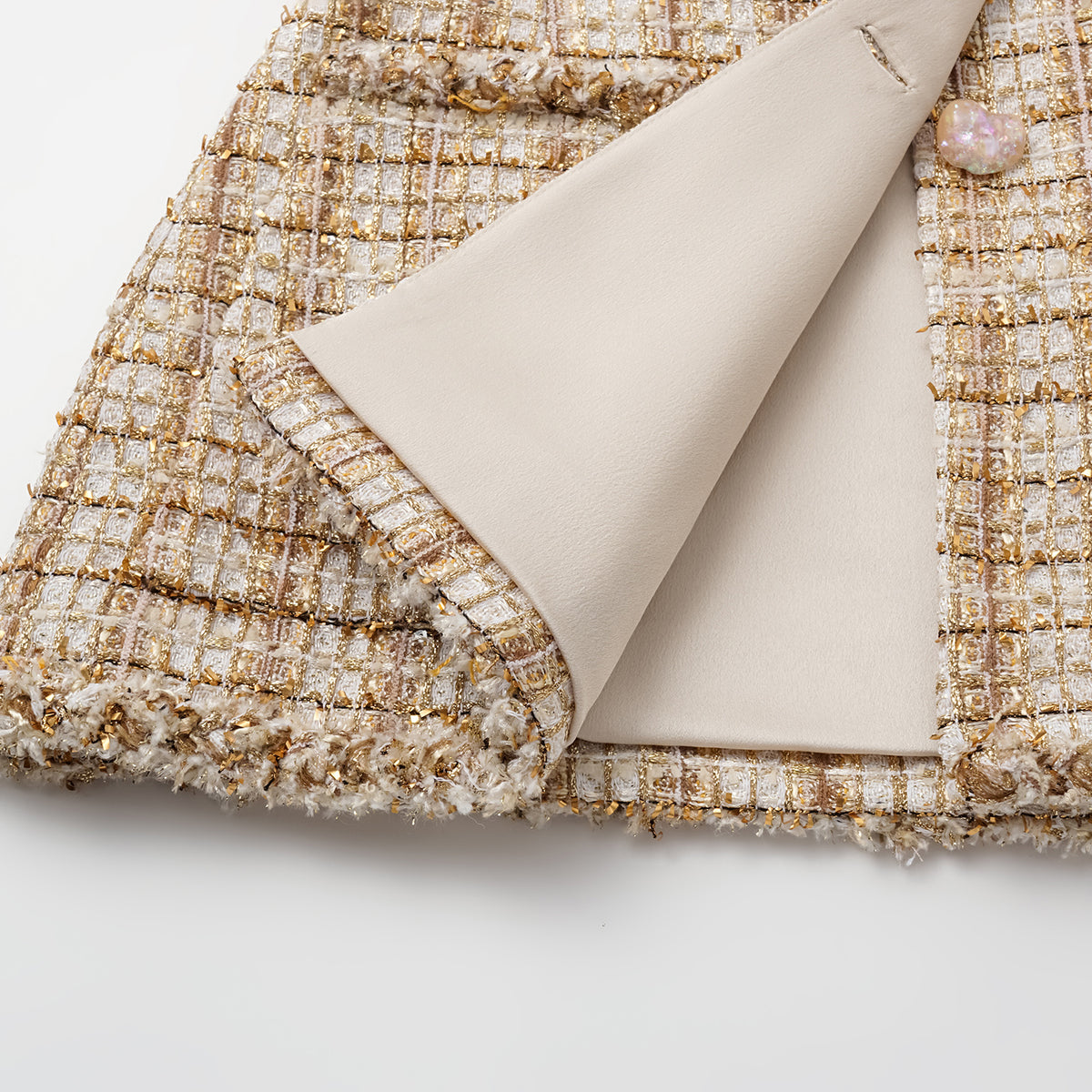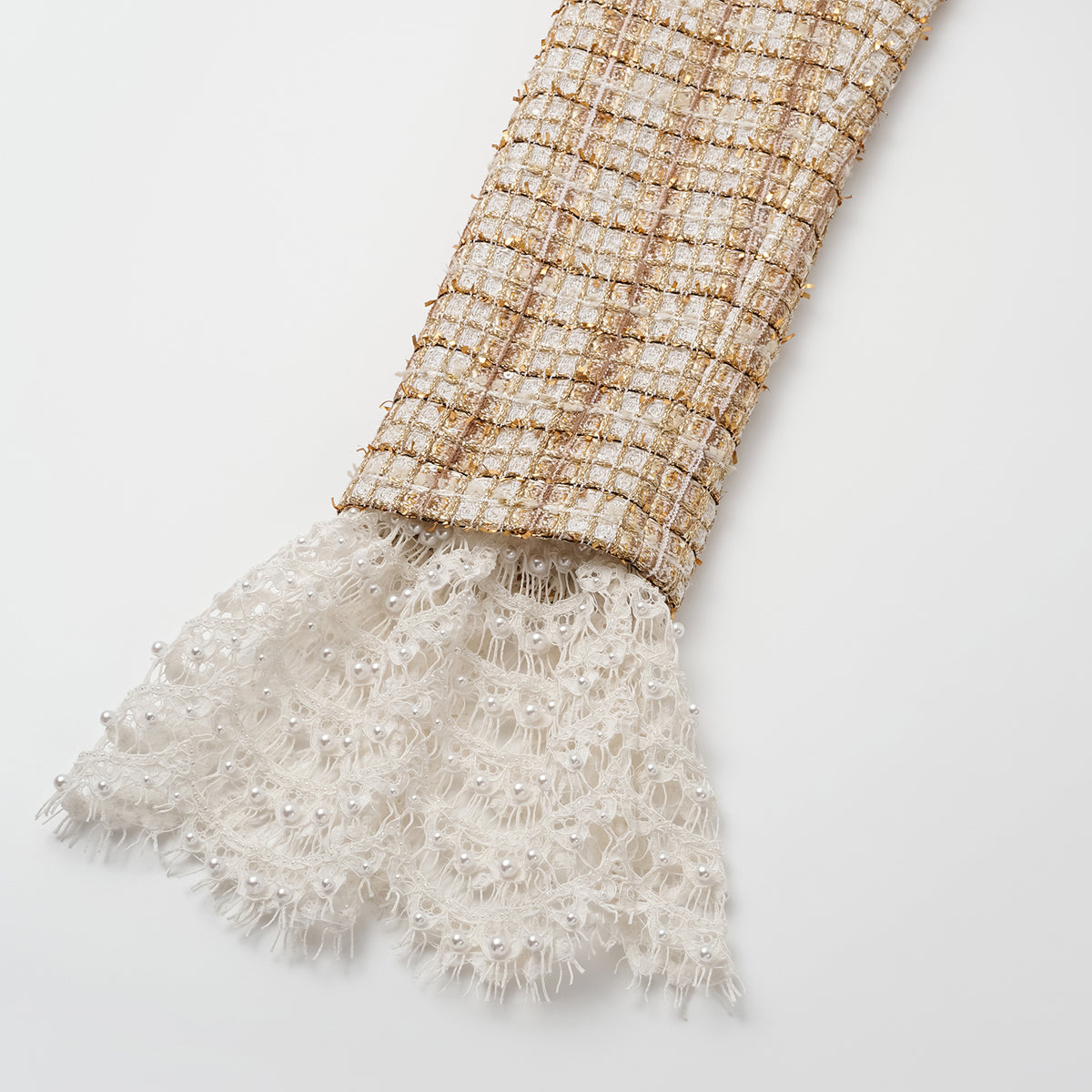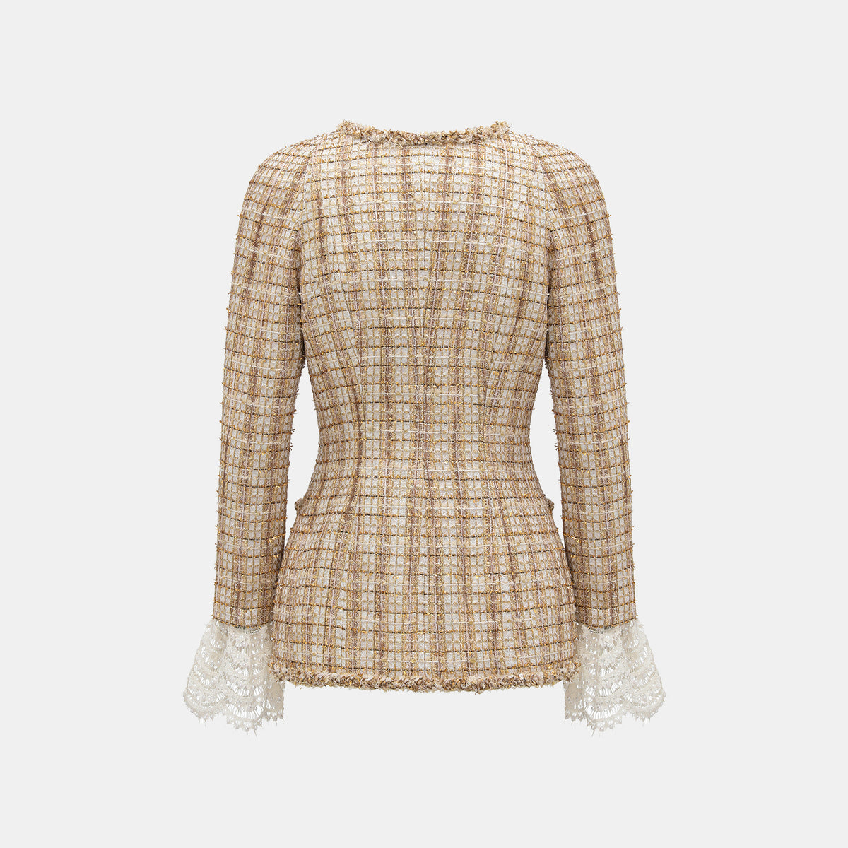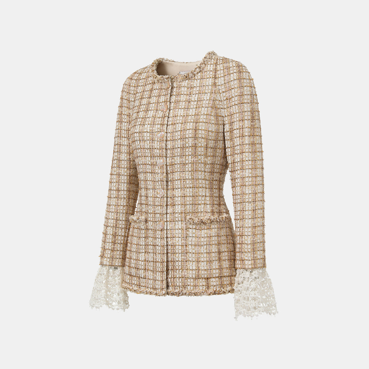"Sloane Ave." 法國頂級縷金工藝蕾絲拚袖修身花呢外套—Versailles Chanson凡爾賽香頌