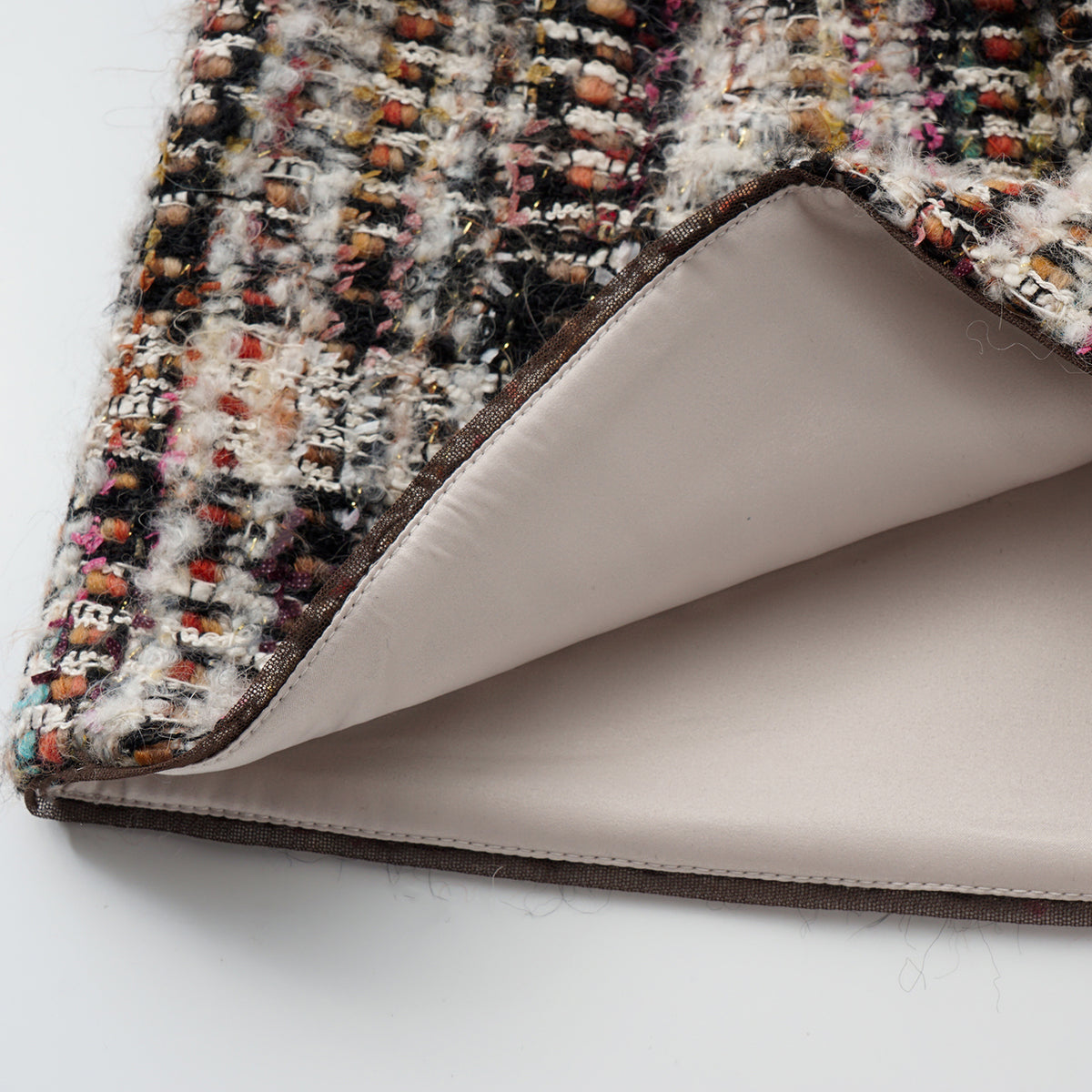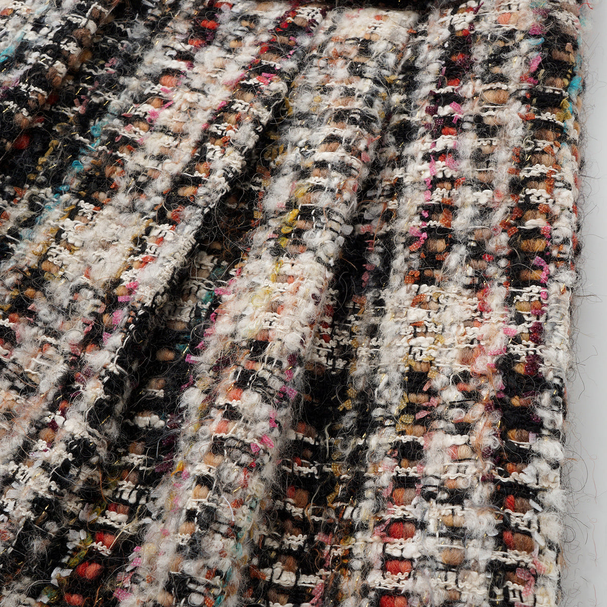 法國立體絨圈格織花呢,以層次豐富的毛線交錯出柔軟觸感與細膩光澤。色彩在織紋間流動,如午後陽光映照的城市光影,溫柔而有深度。