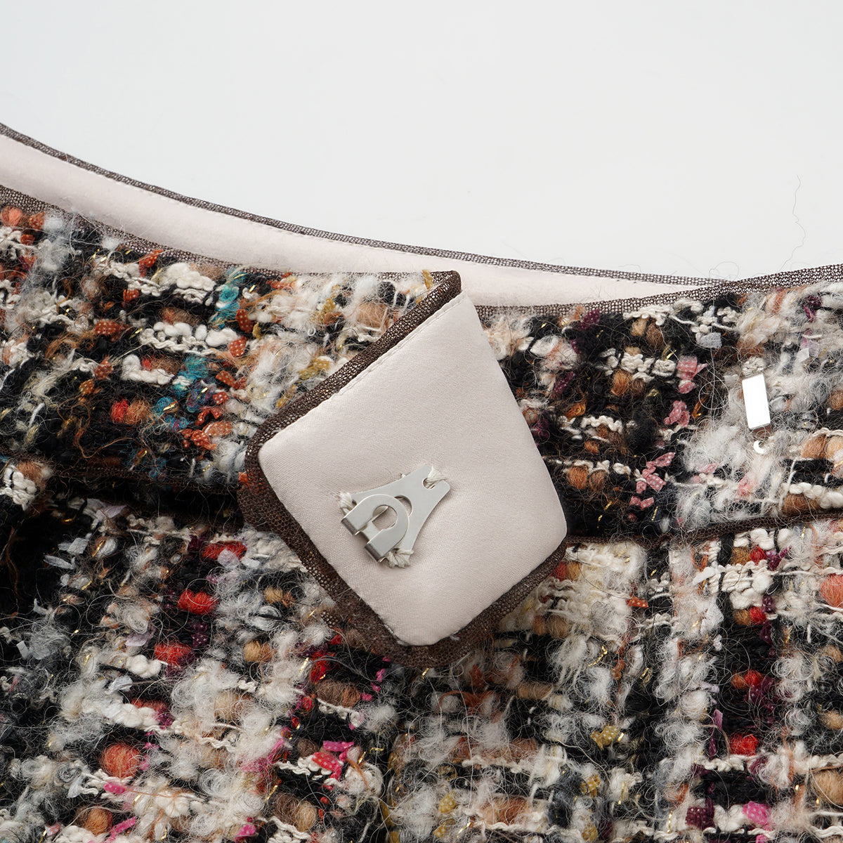 首先在面料選用上,此系列嚴選來自義大利、法國等地的頂級供應商——包括有百年歷史的刺繡工坊與頂級花呢廠,確保每件作品的觸感、光澤與垂墜度皆達到精緻層次。輪廓設計則考量東方女性身形比例,並強調「舒適與挺度並存」,在修飾線條的同時保留動態空間,讓穿著者在優雅中自如移動。