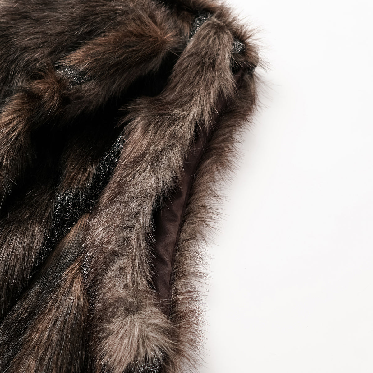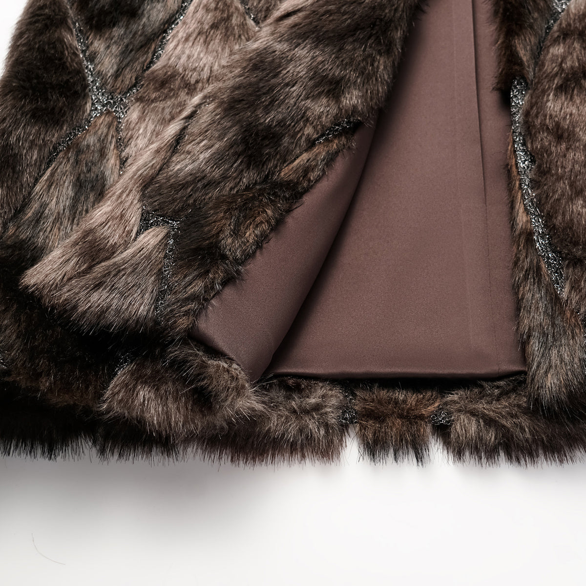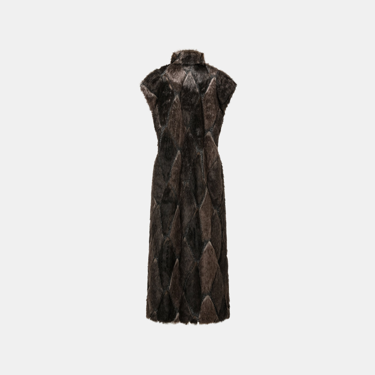 義大利製蕾絲拼接工藝環保皮草馬甲-長 — 滿天星