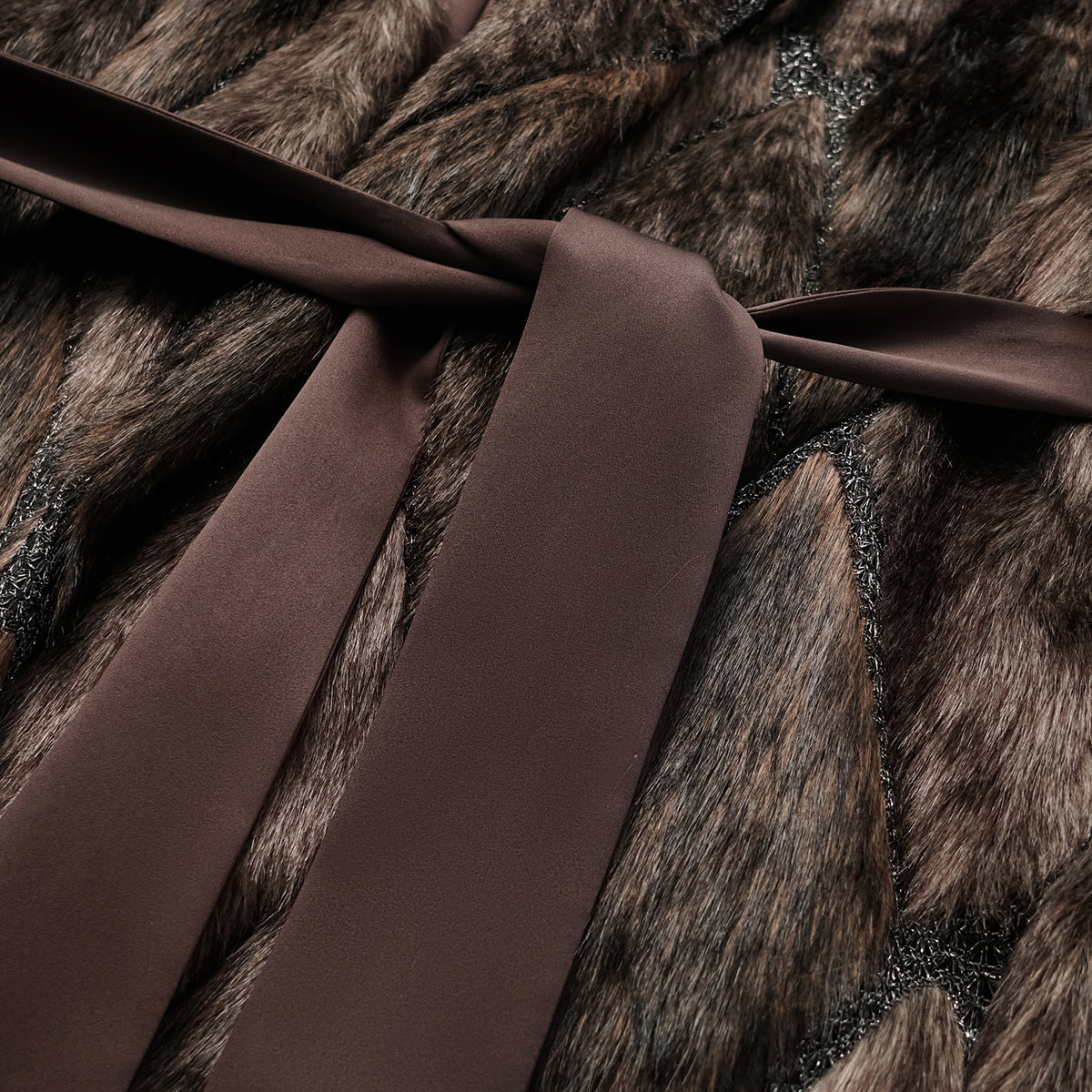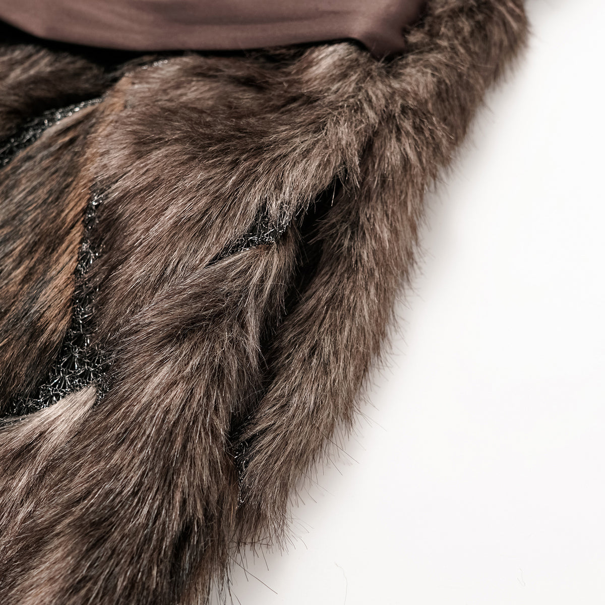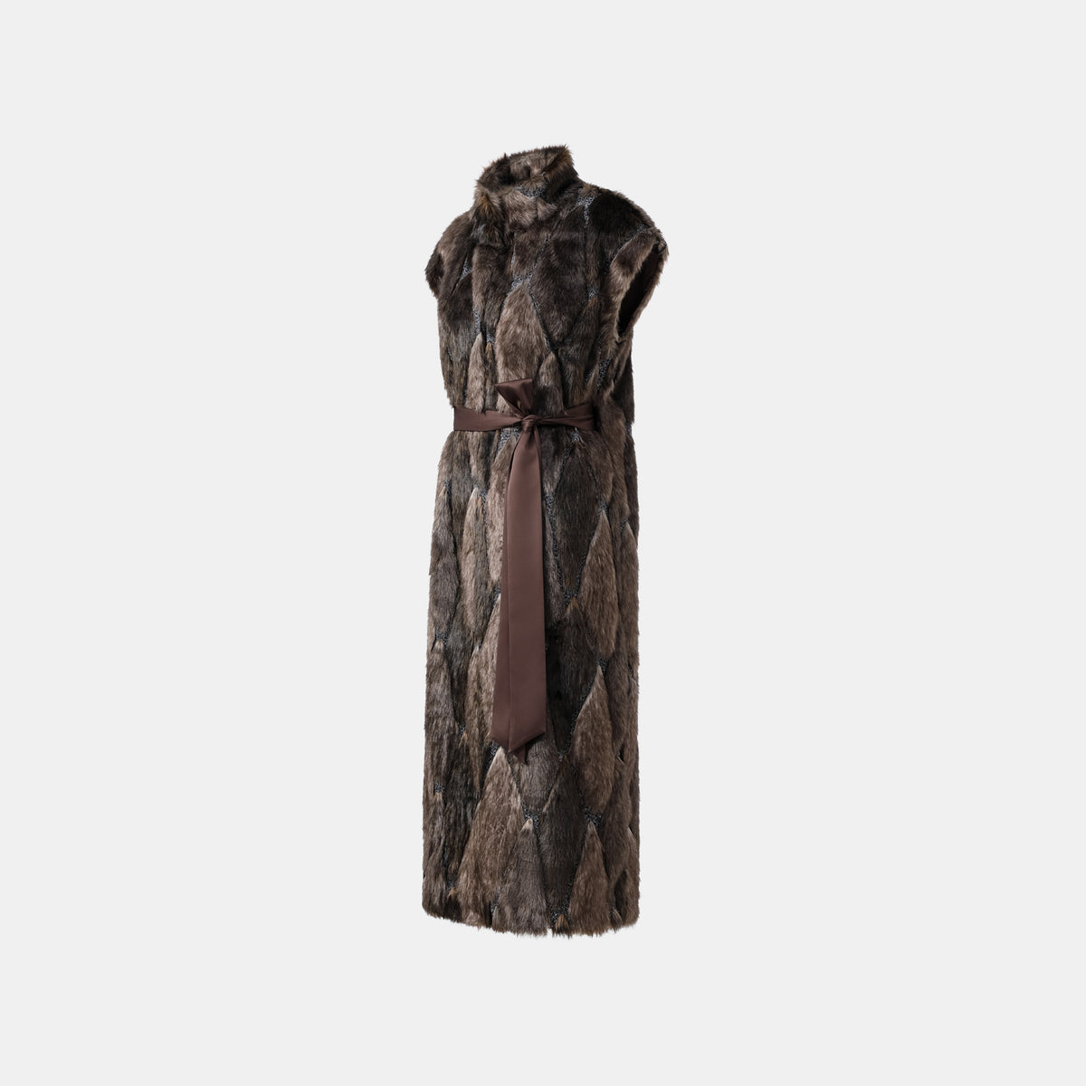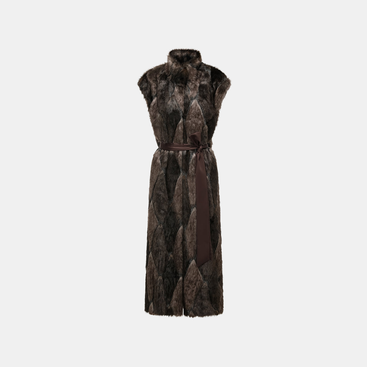 義大利製蕾絲拼接工藝環保皮草馬甲-長 — 滿天星