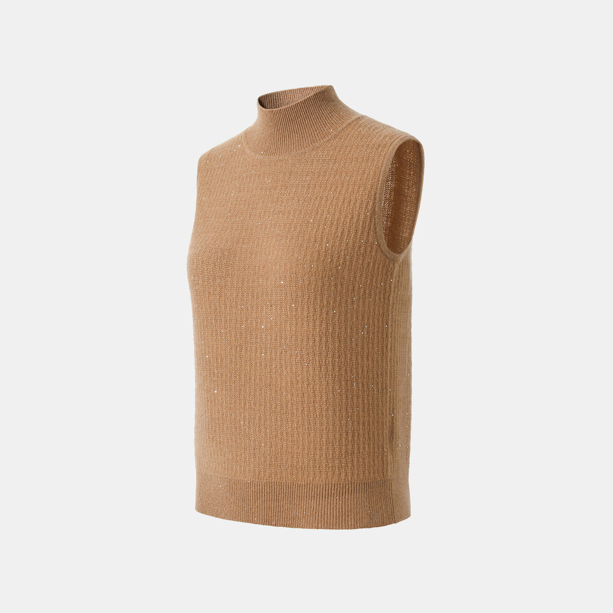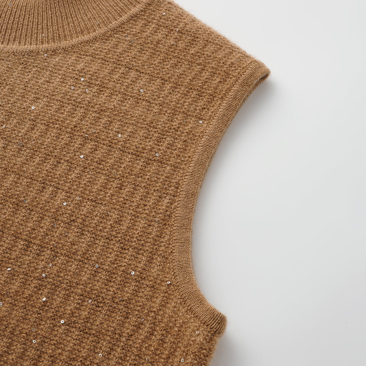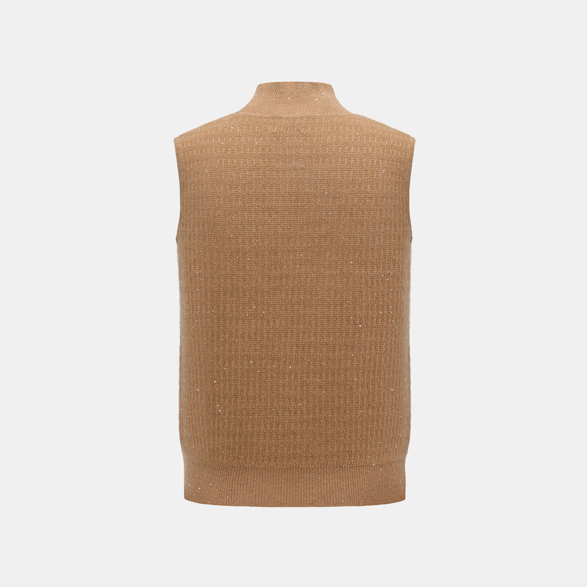 “Autumn Diary” 100% Cashmere極細絨柔星點高領針織背心—Golden Acorn橡果暖陽