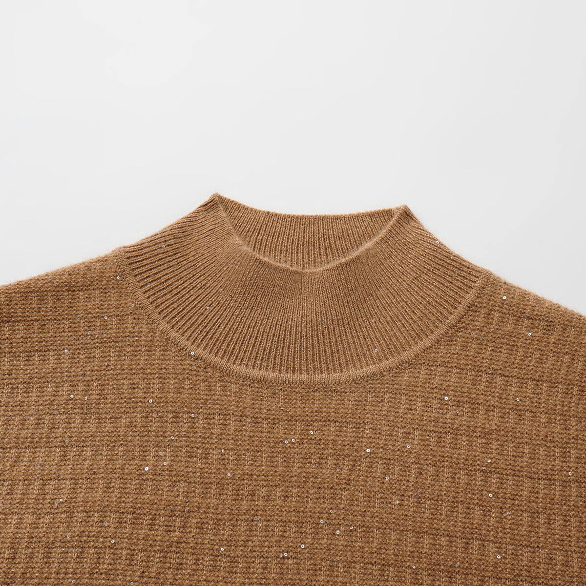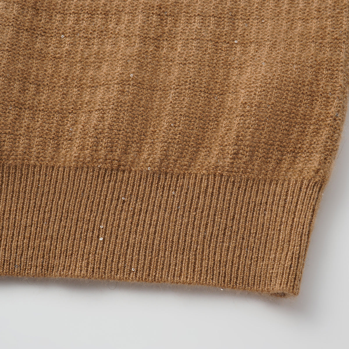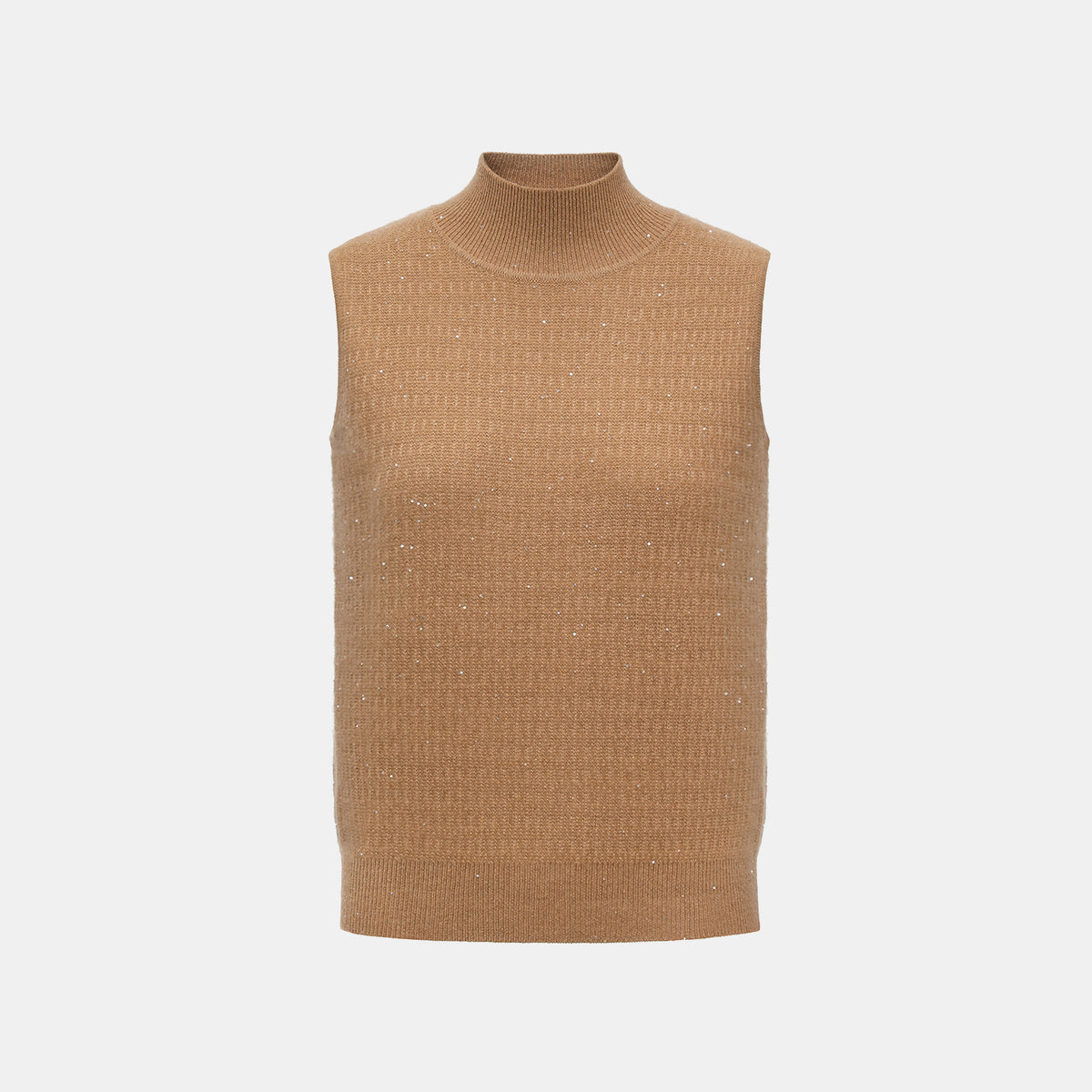 “Autumn Diary” 100% Cashmere極細絨柔星點高領針織背心—Golden Acorn橡果暖陽