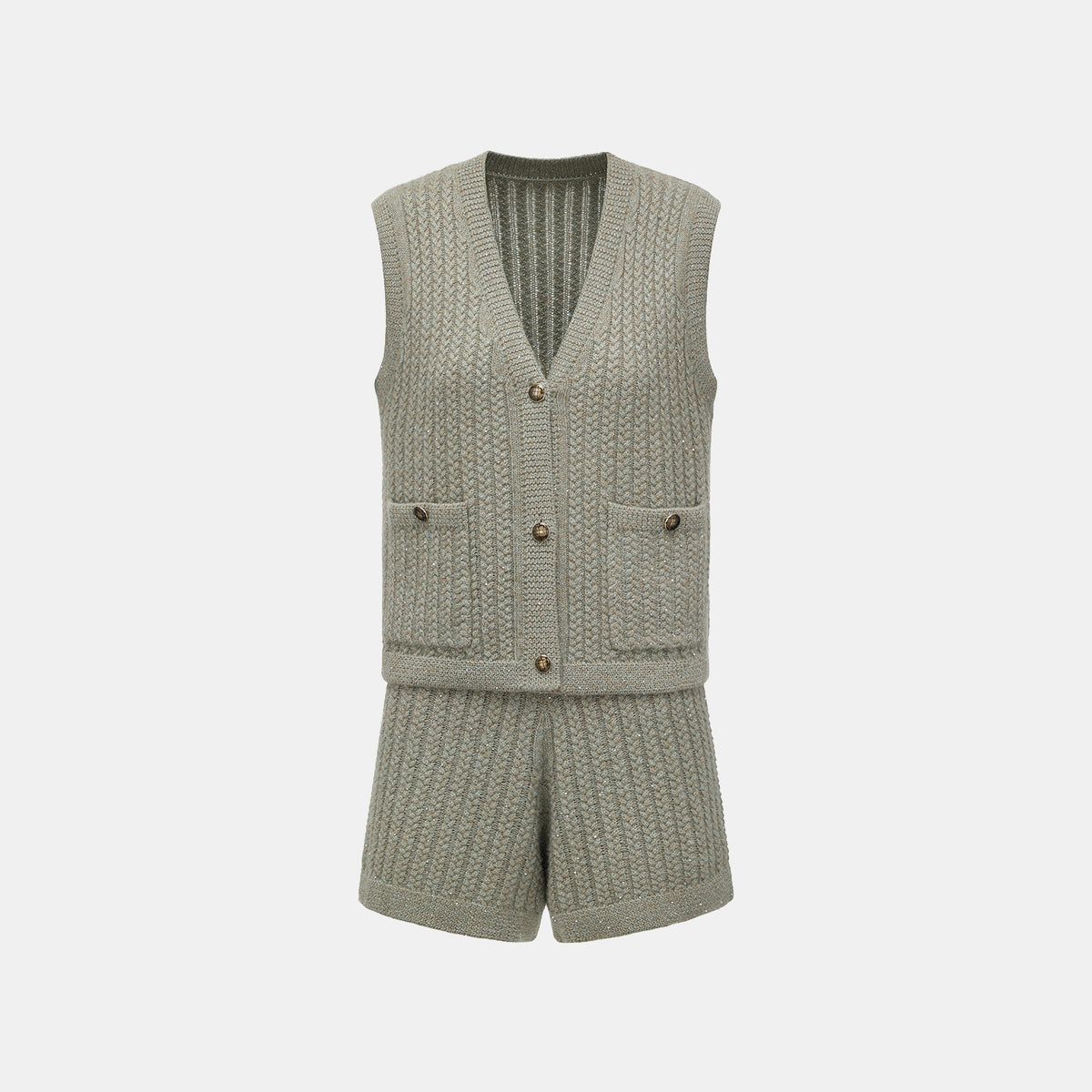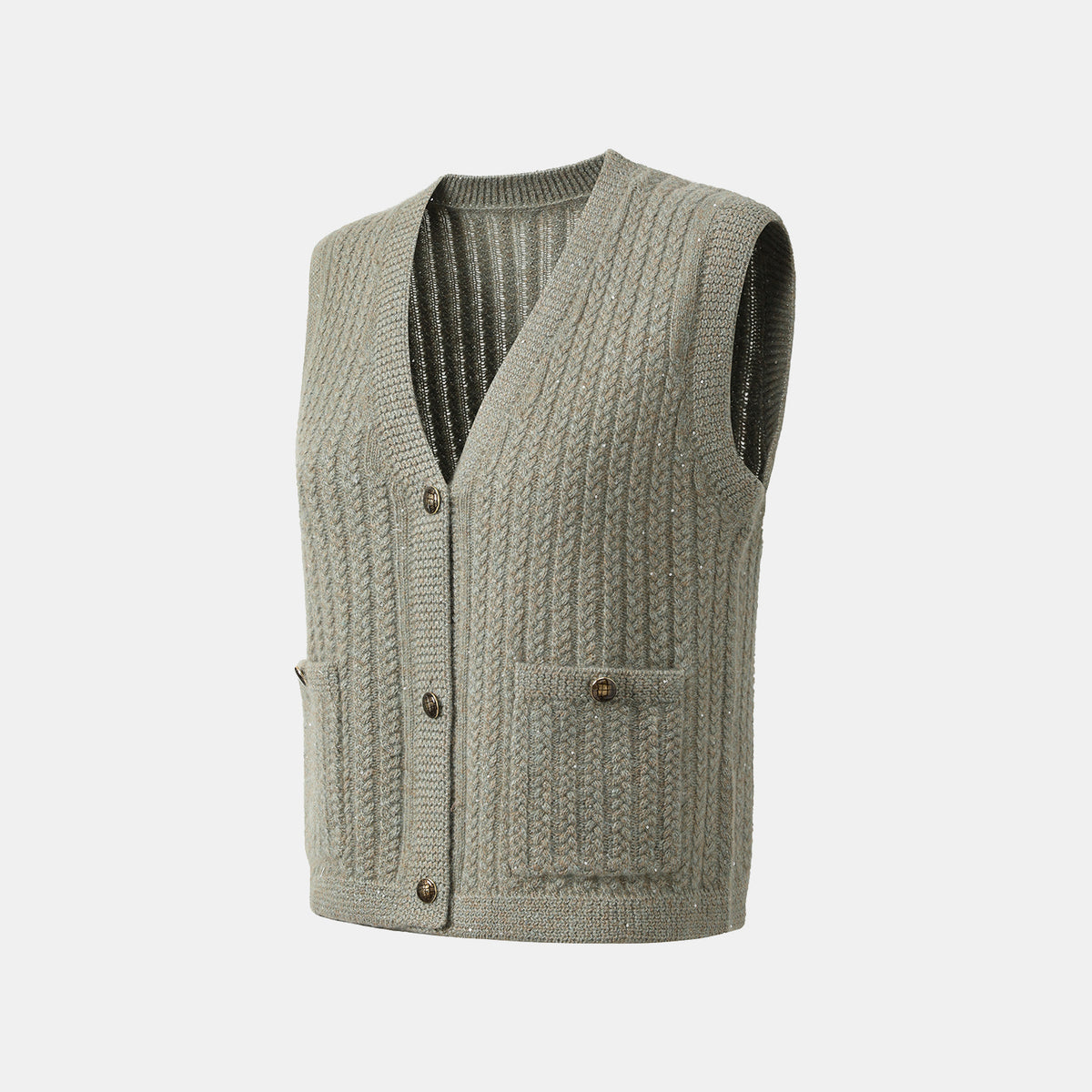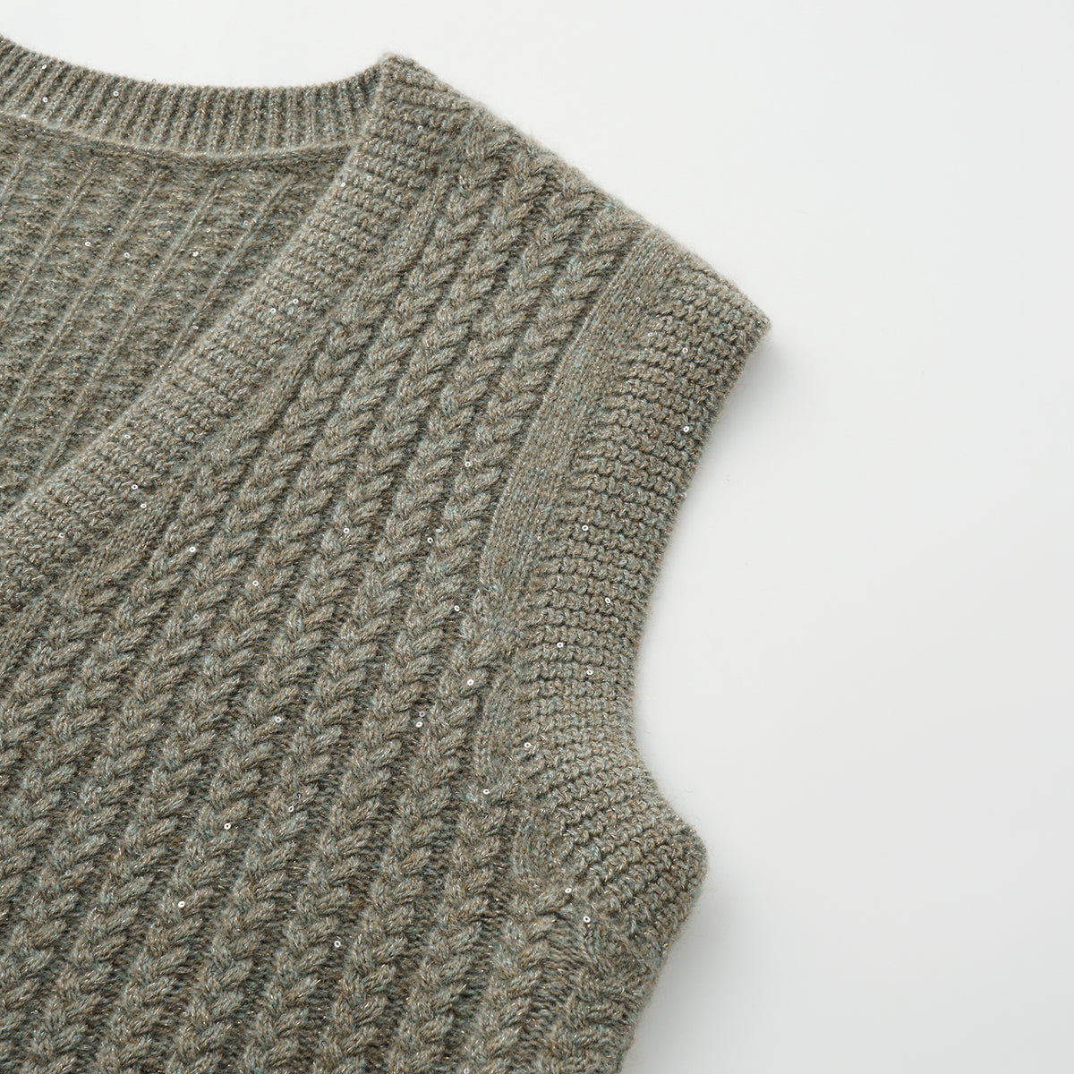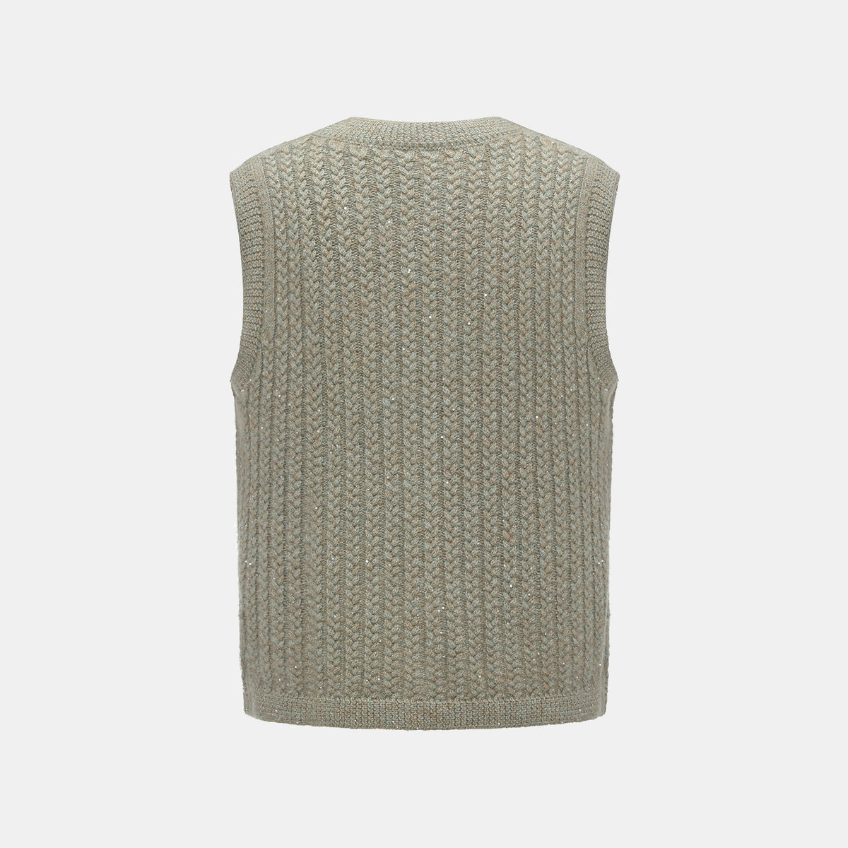 “Autumn Diary” 100% Cashmere 立體細麻花星點亮片針織背心—Silver Birch銀樺霧林