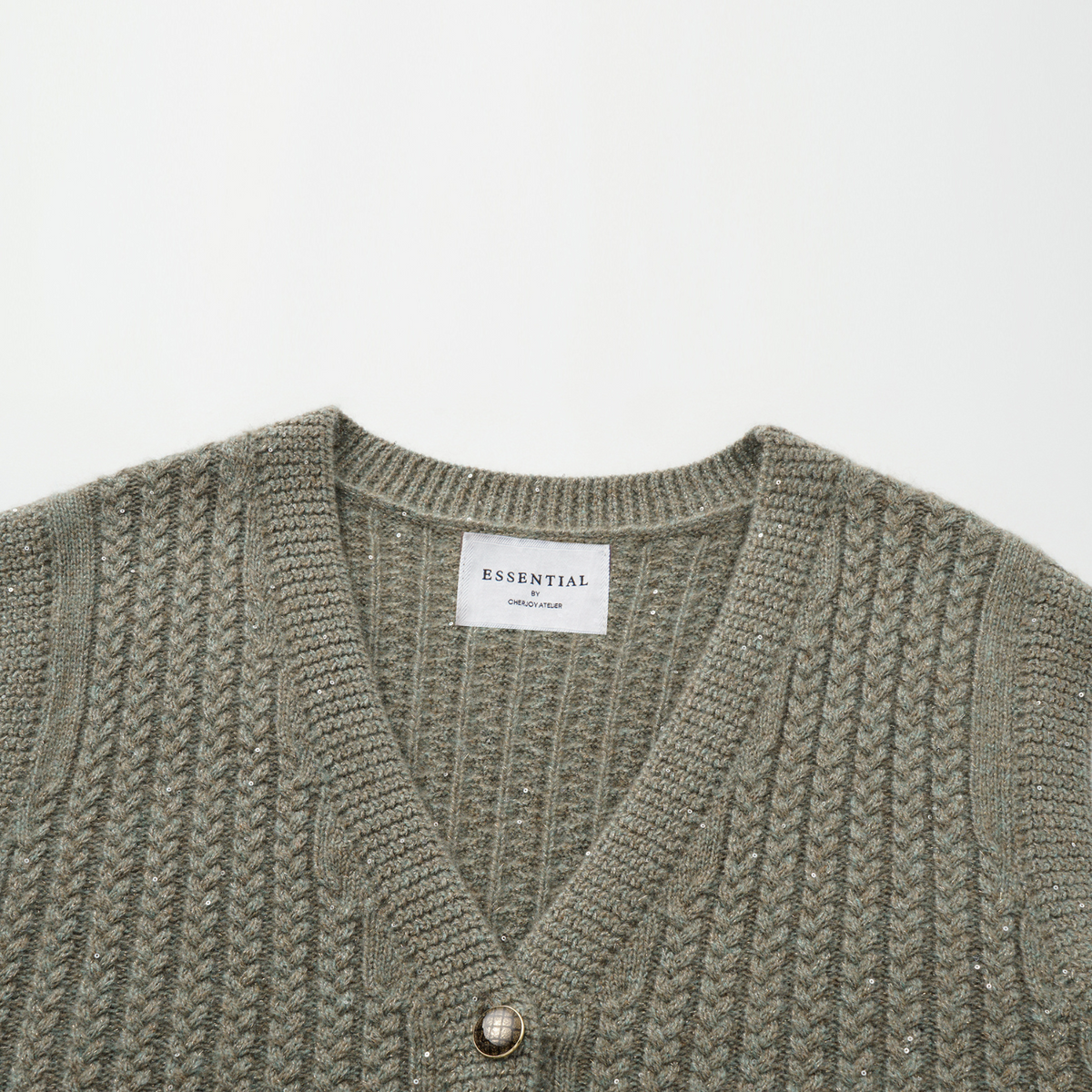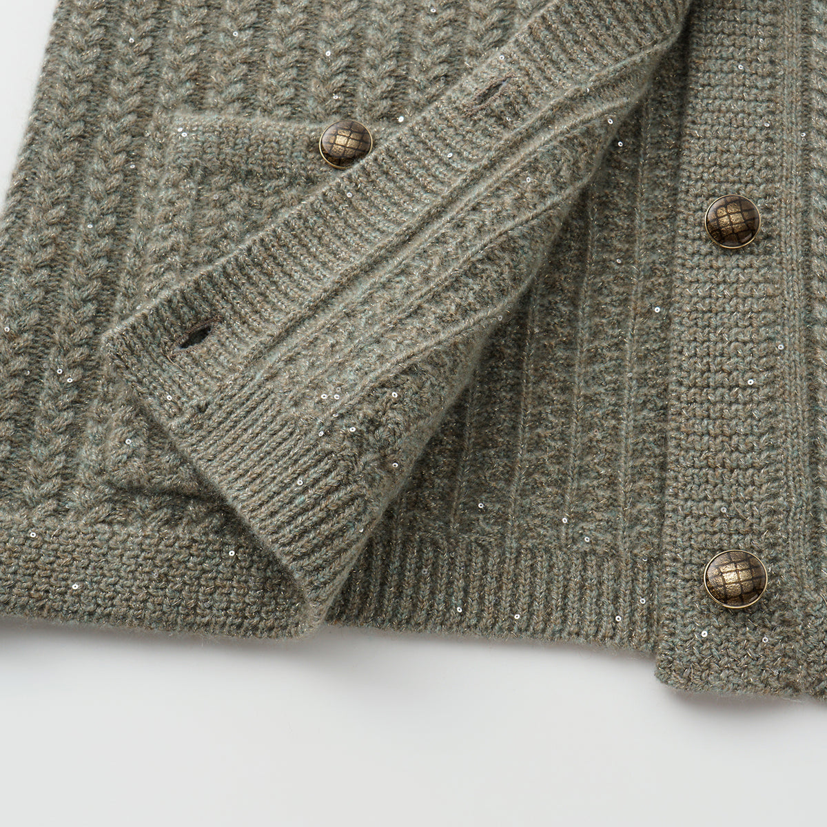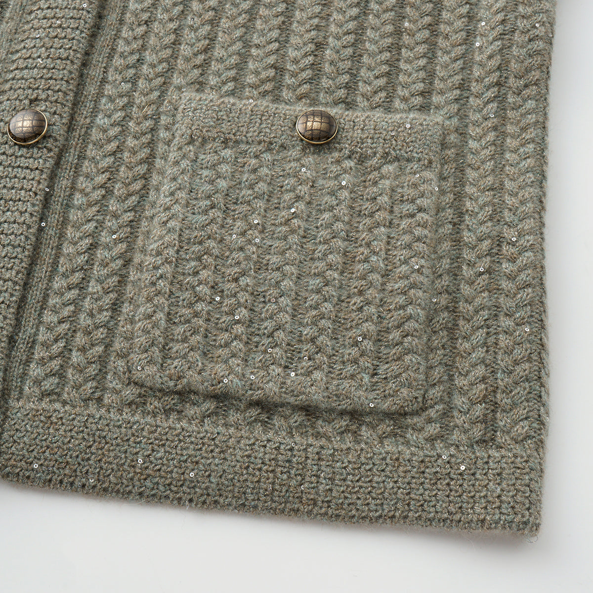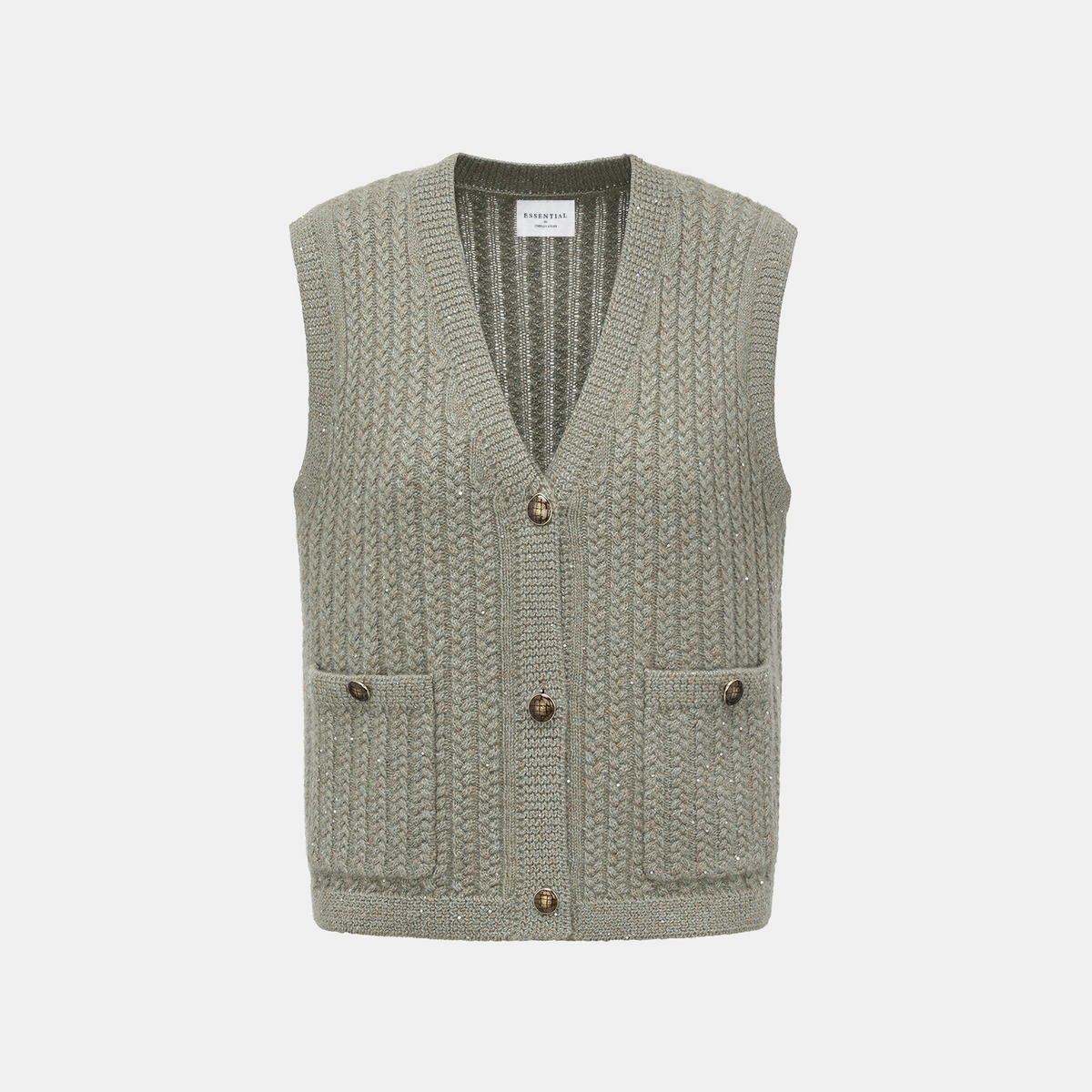“Autumn Diary” 100% Cashmere 立體細麻花星點亮片針織背心—Silver Birch銀樺霧林