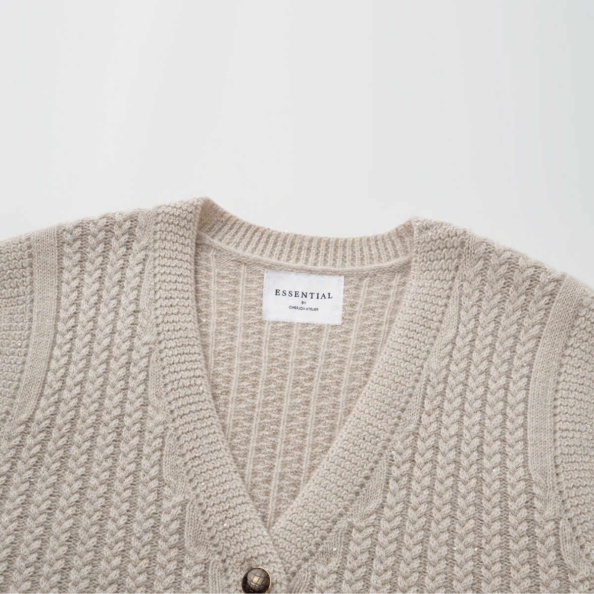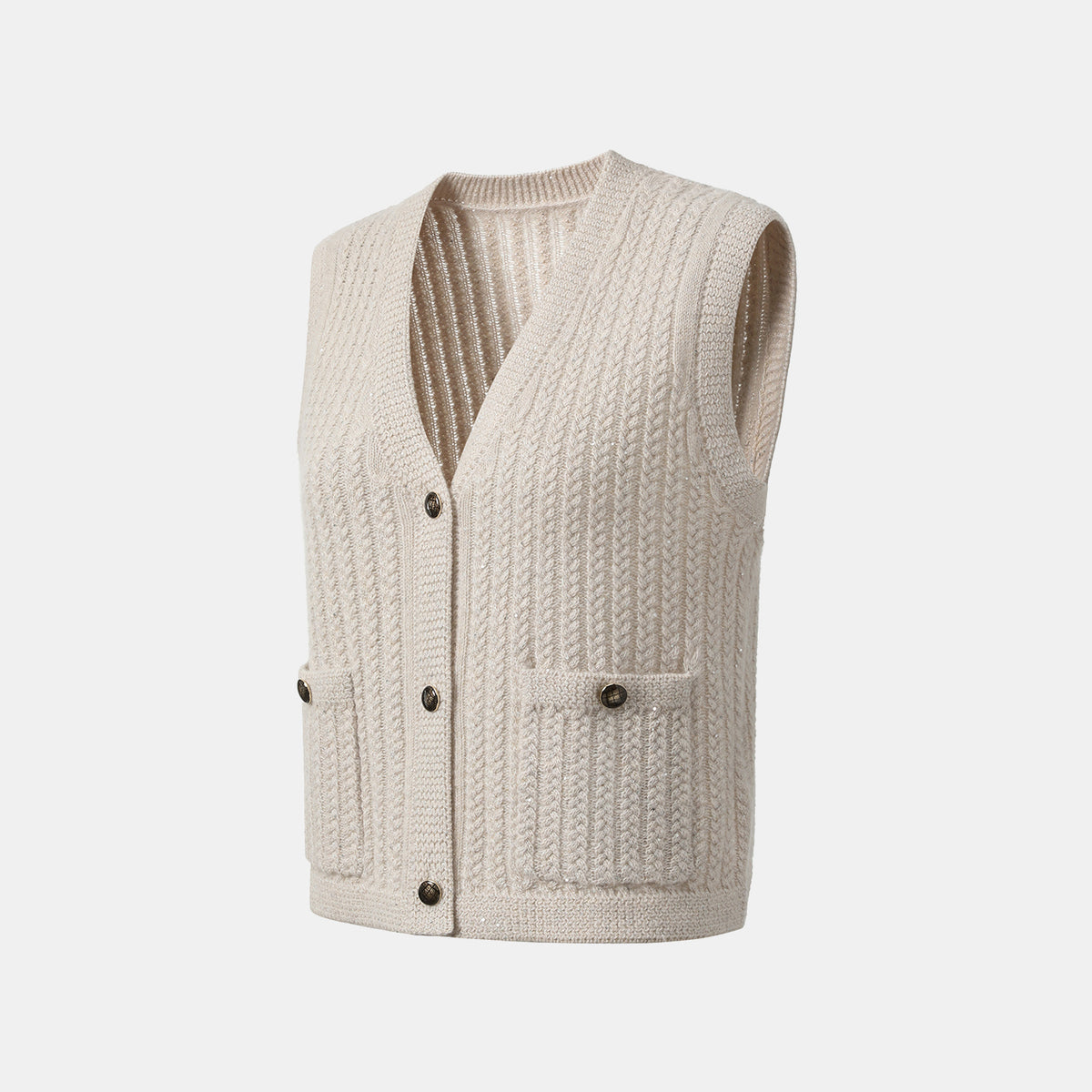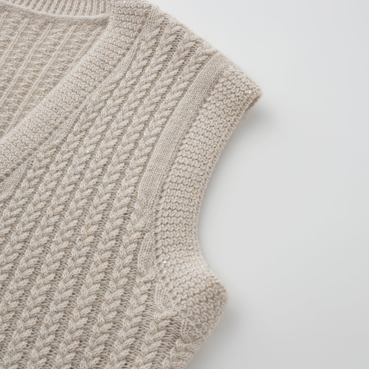 “Autumn Diary” 100% Cashmere 立體細麻花星點亮片針織背心—Nordic Dawn北境黎明