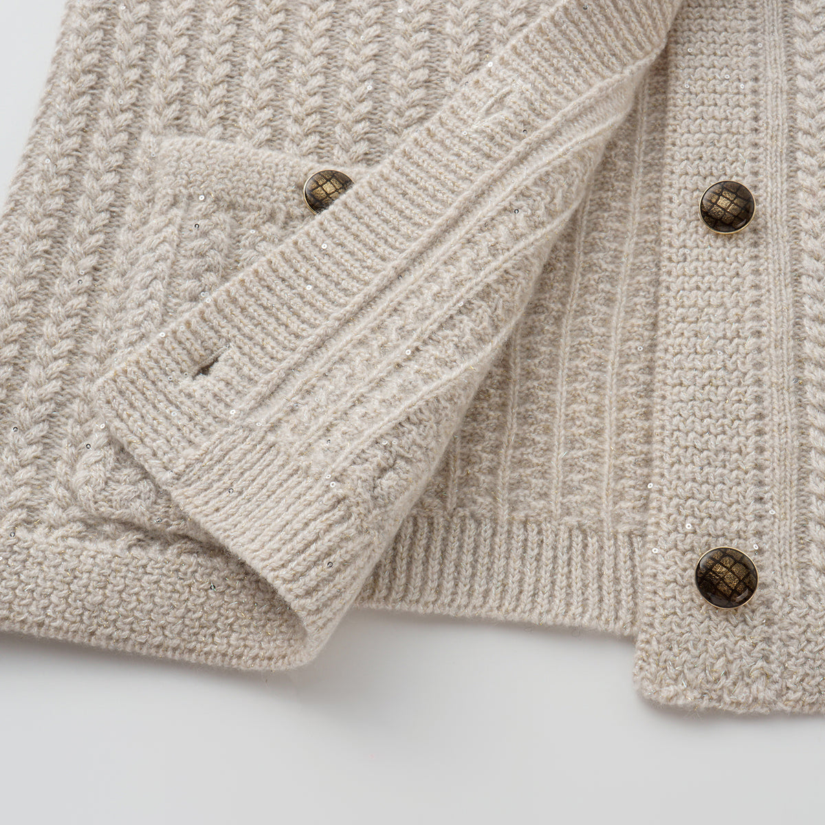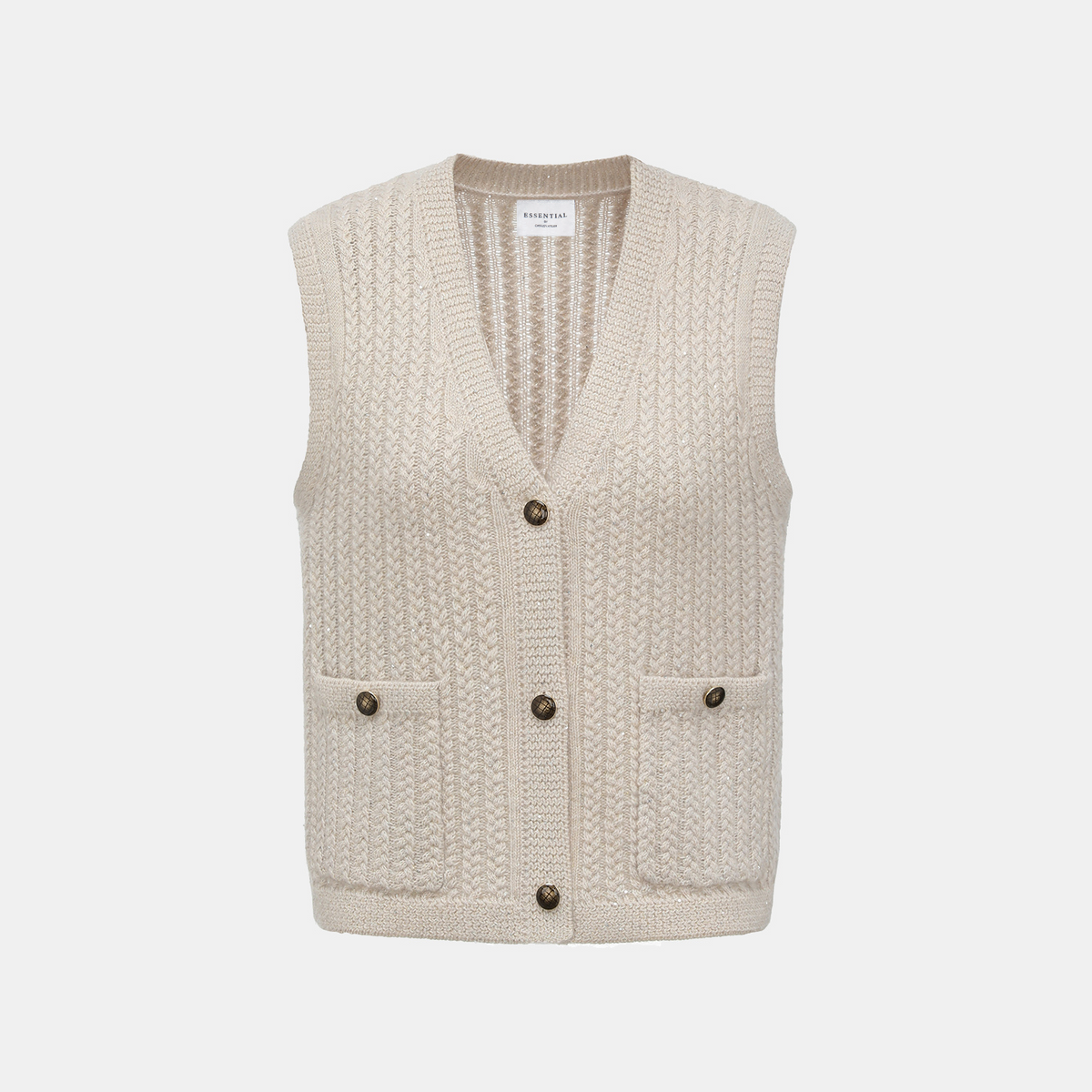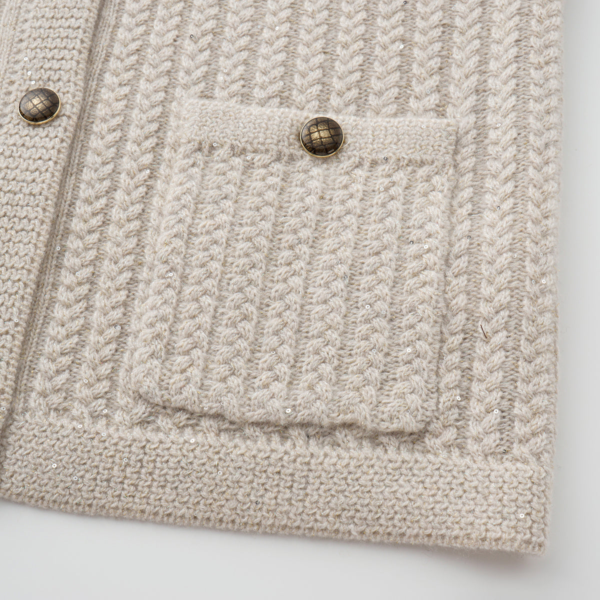 “Autumn Diary” 100% Cashmere 立體細麻花星點亮片針織背心—Nordic Dawn北境黎明