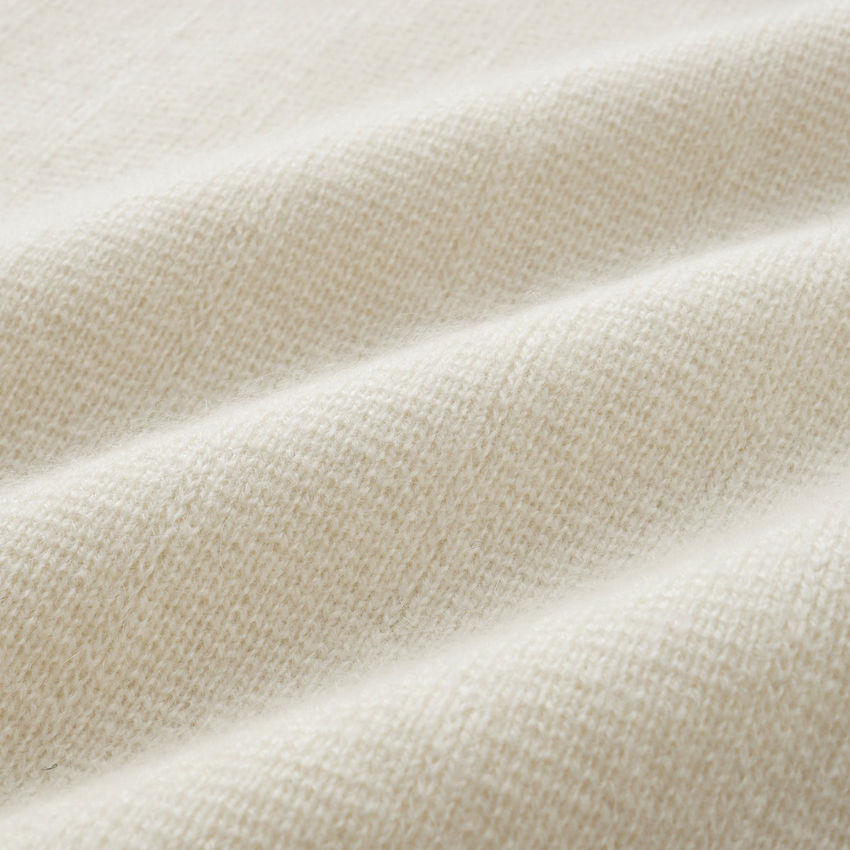 羊絨纖維直徑僅 14–16 微米,比人髮細三分之一,重量只有羊毛的三分之一,卻能提供雙倍的保暖。其天然捲曲結構能捕捉空氣,帶來「蓬鬆卻輕盈」的體驗。貼膚時無刺癢感,柔軟得如同羽毛拂過肌膚。