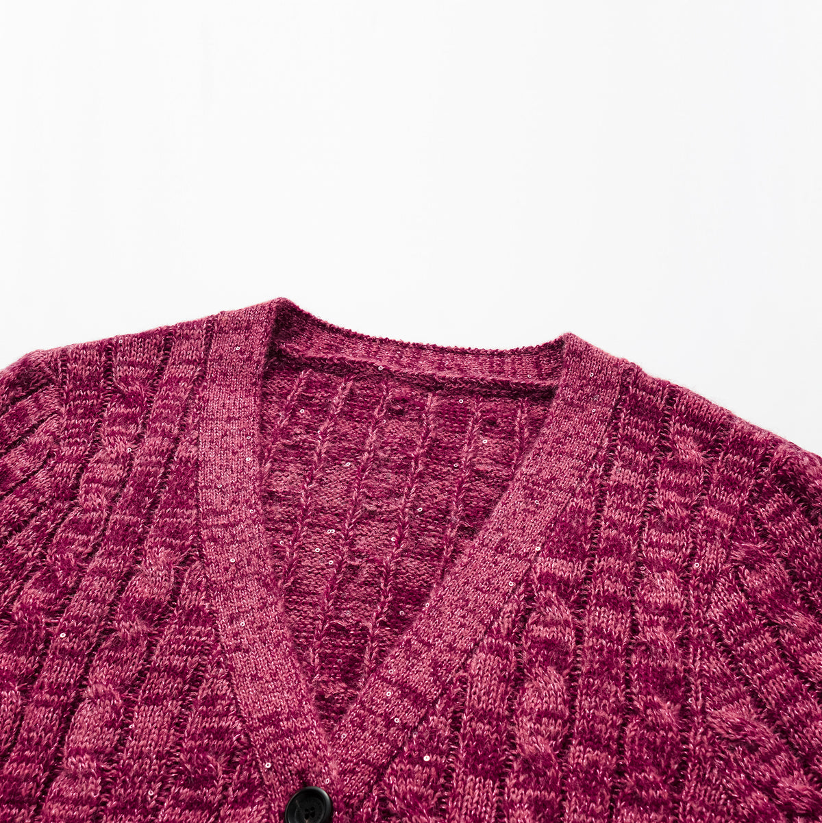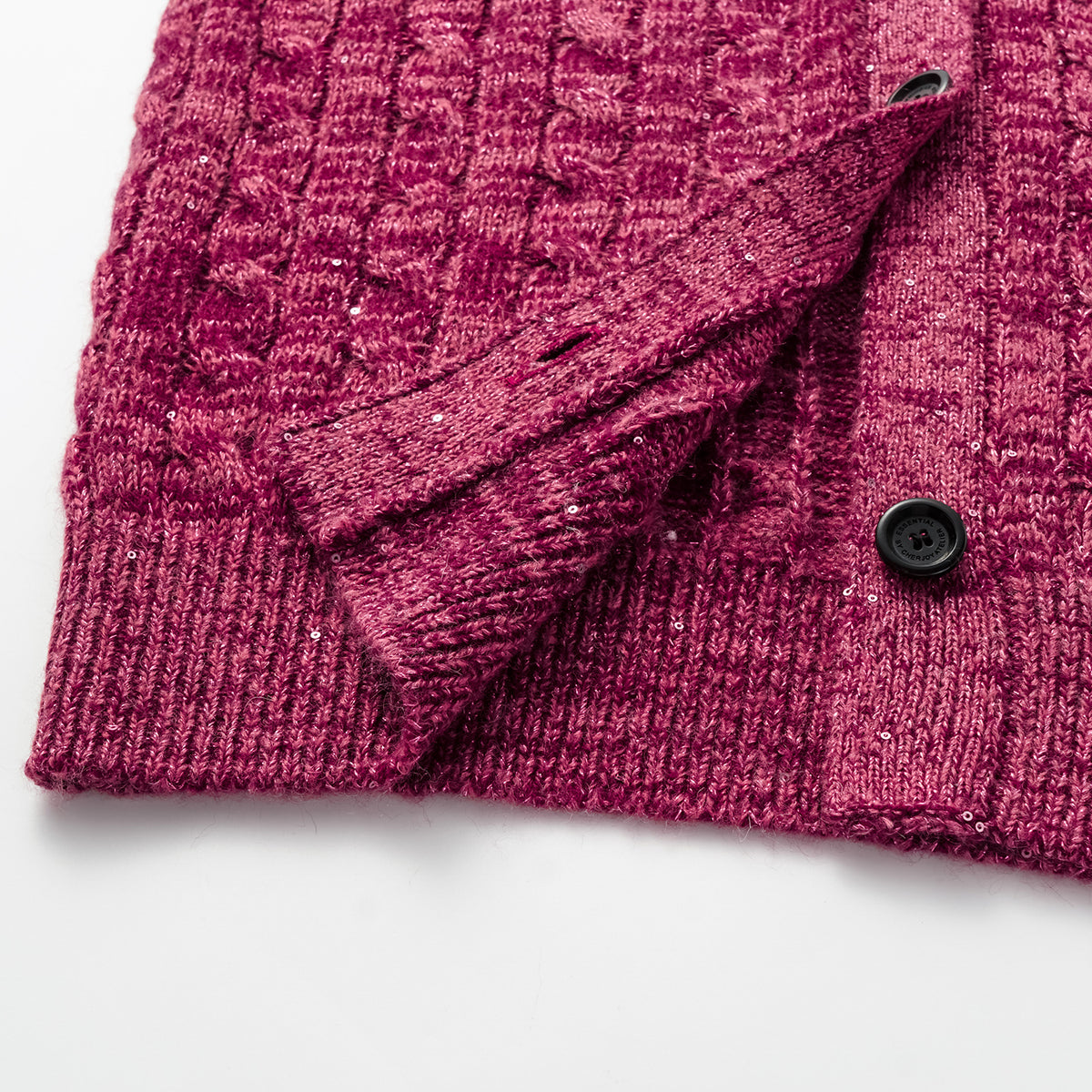 “Winter diary.” 100% Cashmere 亮片麻花編織針織開衫—Luck