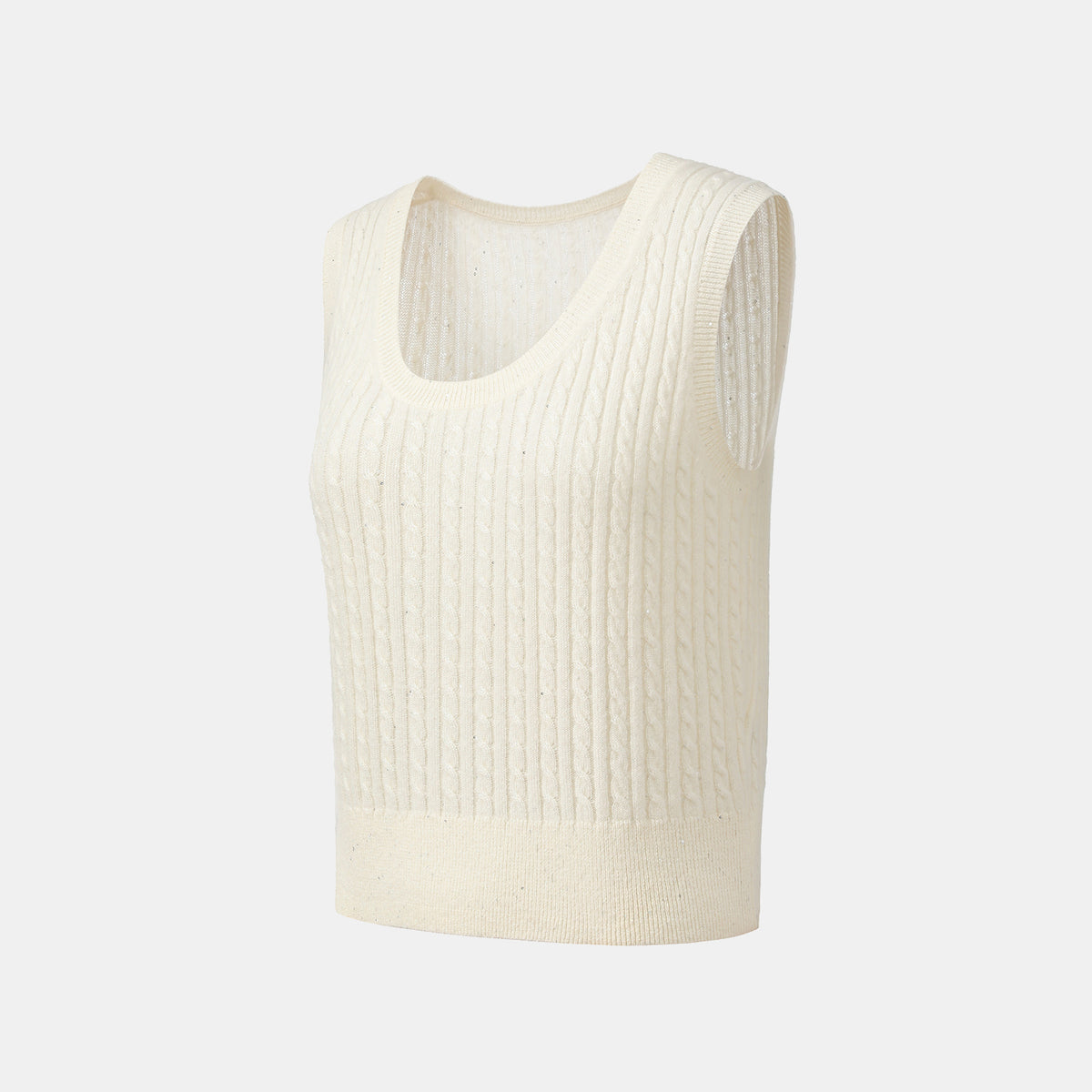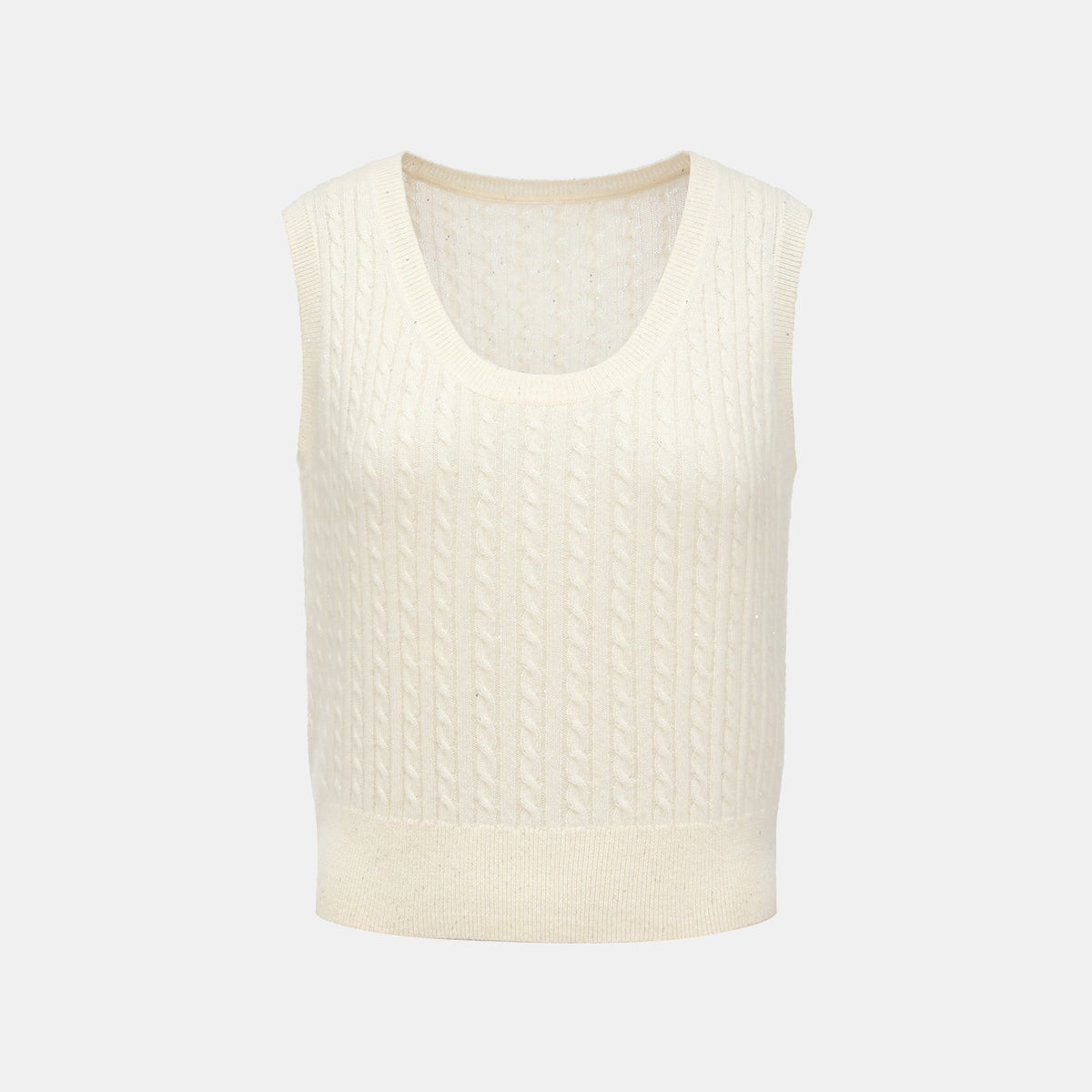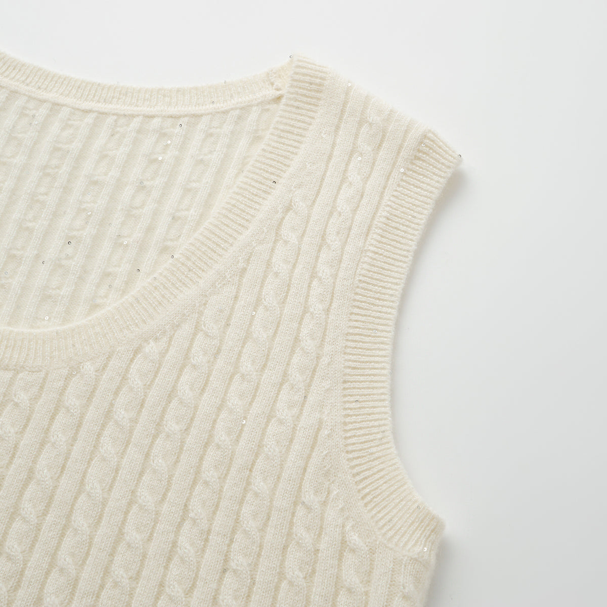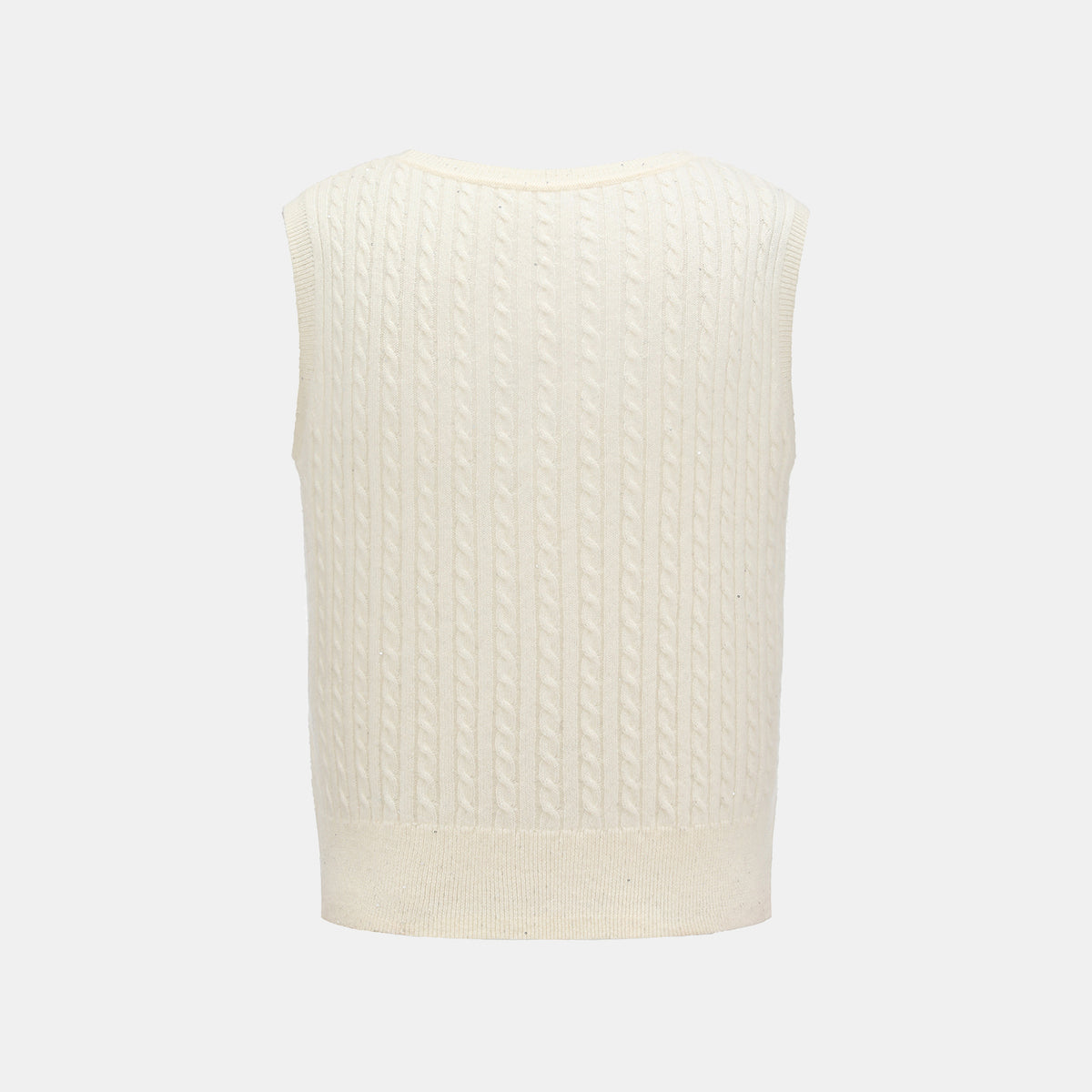 “Autumn Diary” 100% Cashmere 亮片麻花編織針織背心—Sandal Light檀香白茶