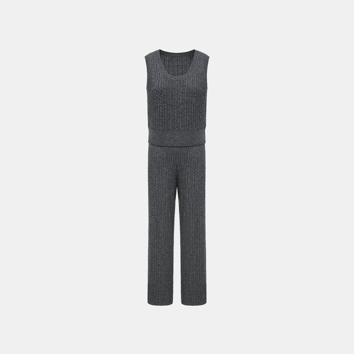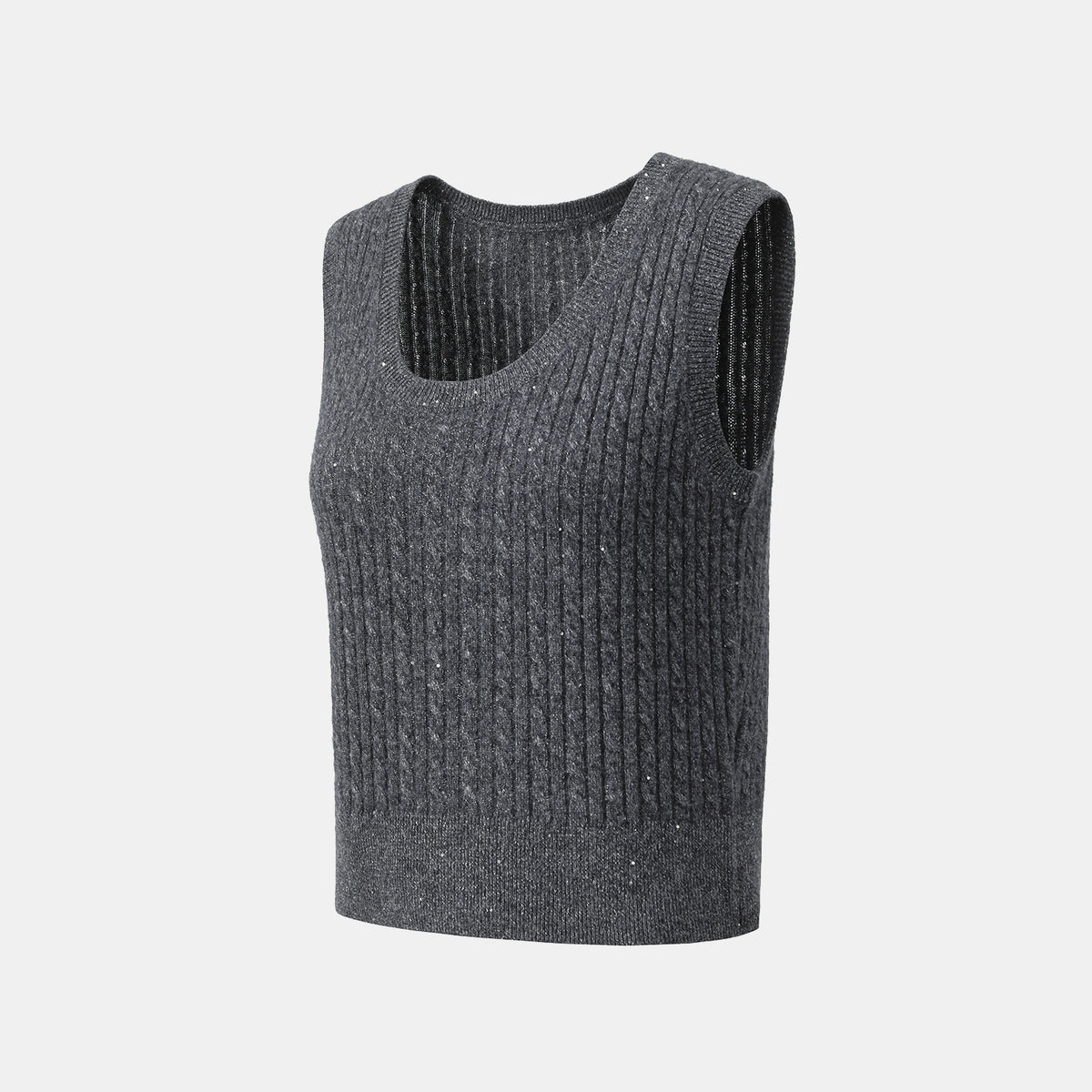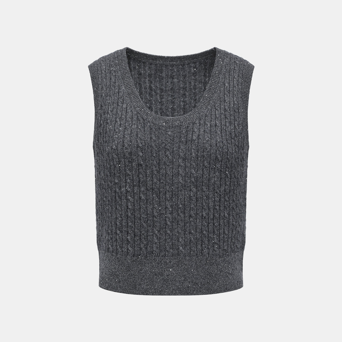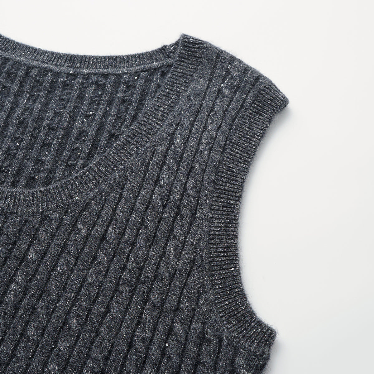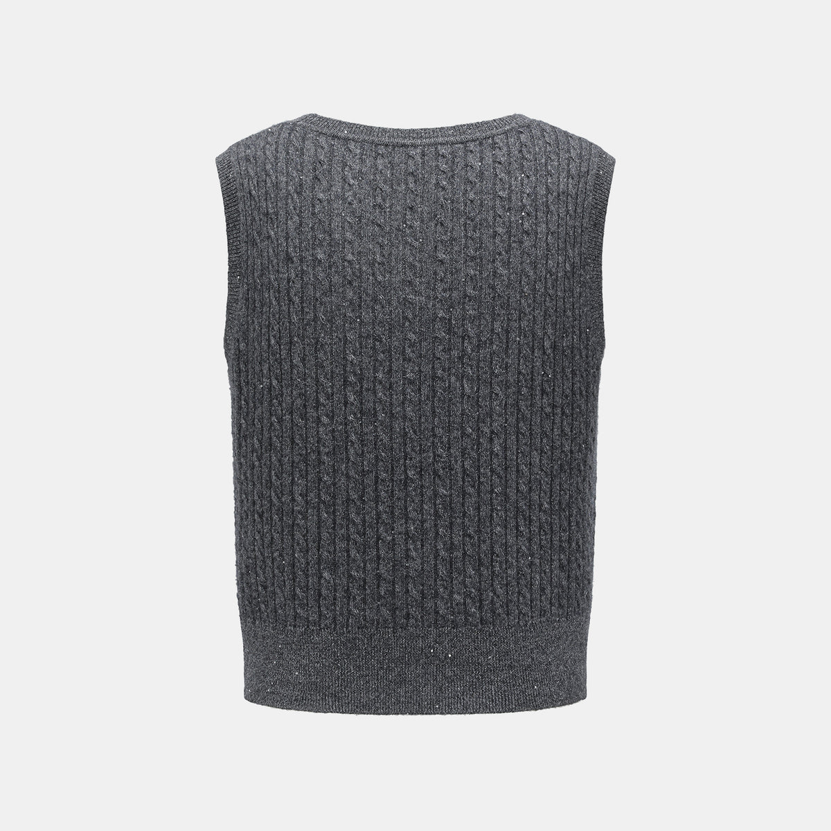 “Autumn Diary” 100% Cashmere 亮片麻花編織針織背心—Cedar Smoke雪松煙衫