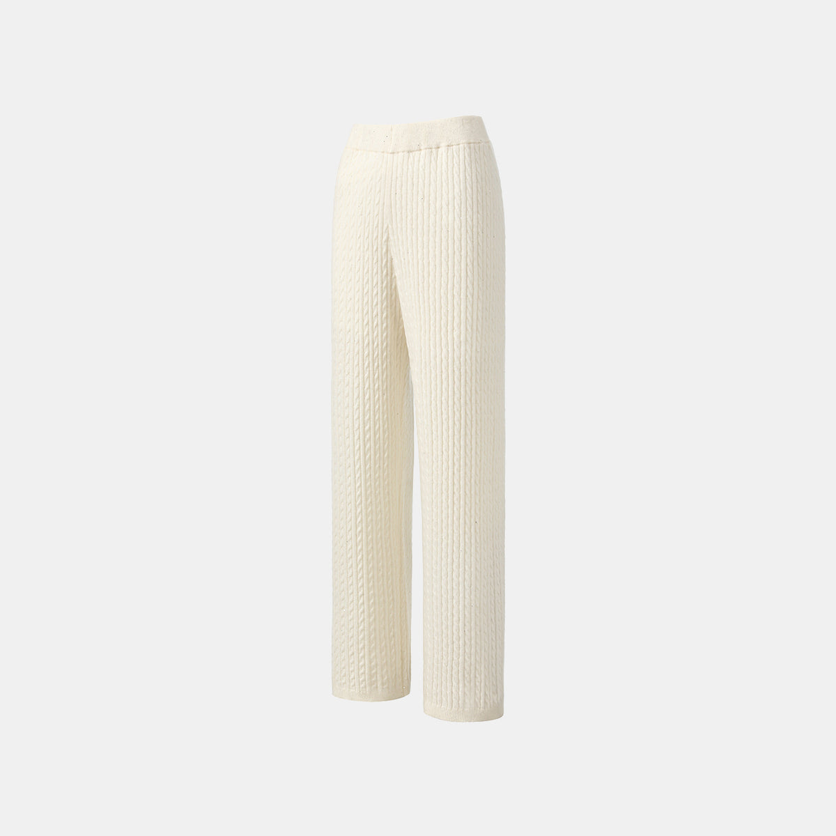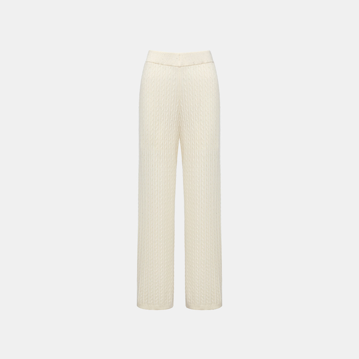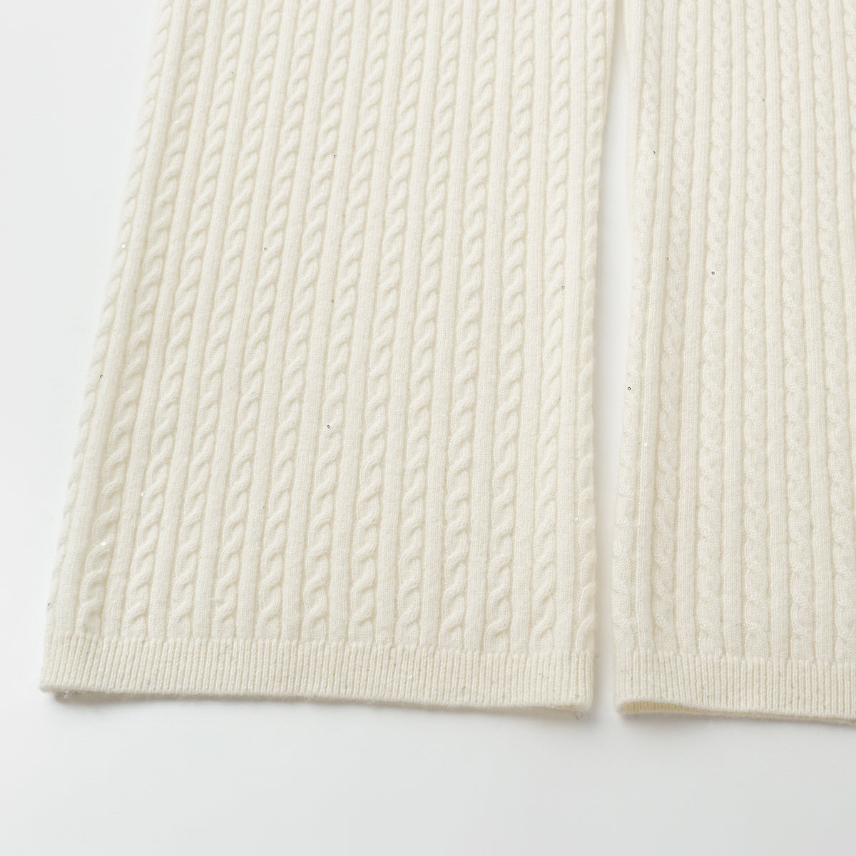 “Autumn Diary” 100% Cashmere 亮片麻花編織針織長褲—Sandal Light 檀香白茶