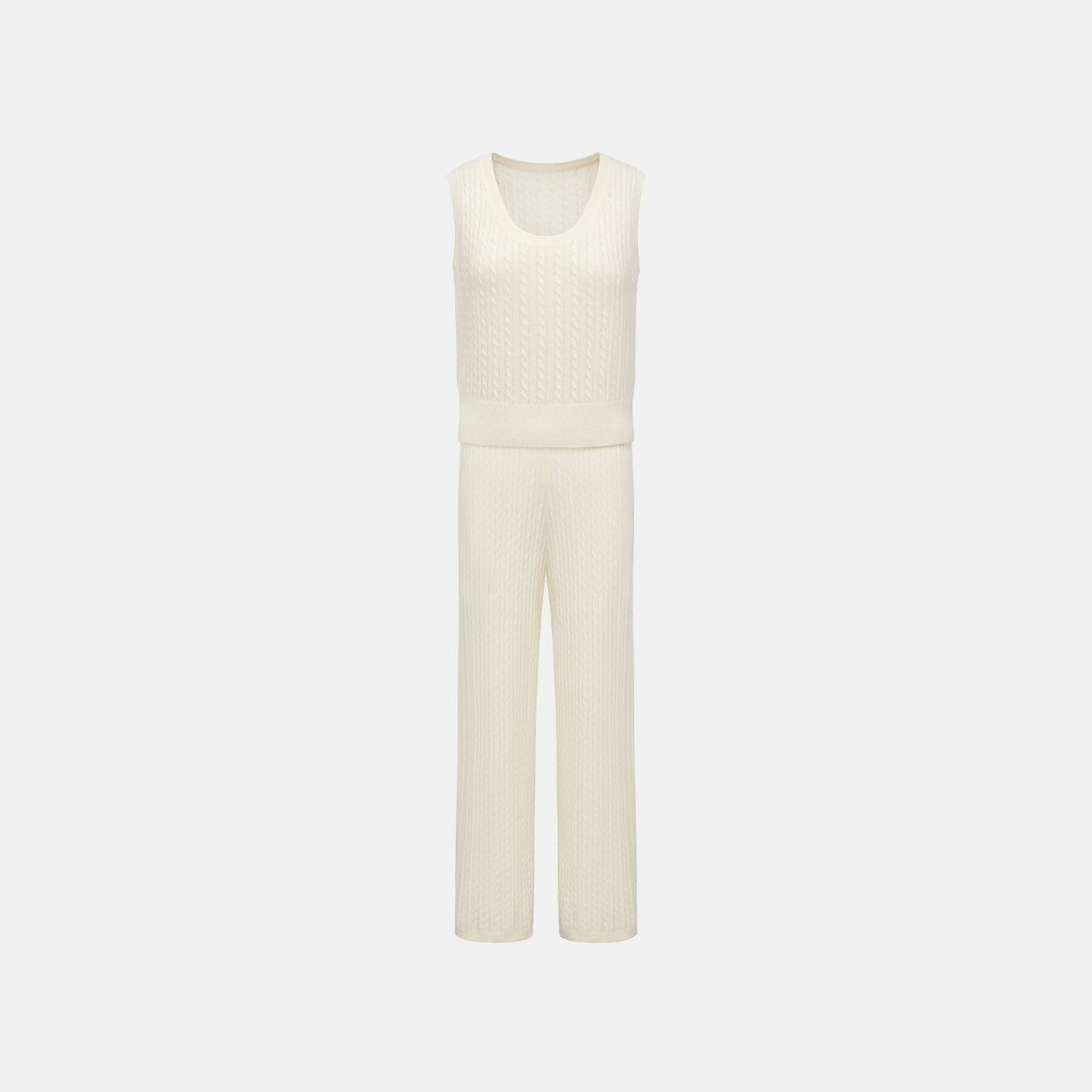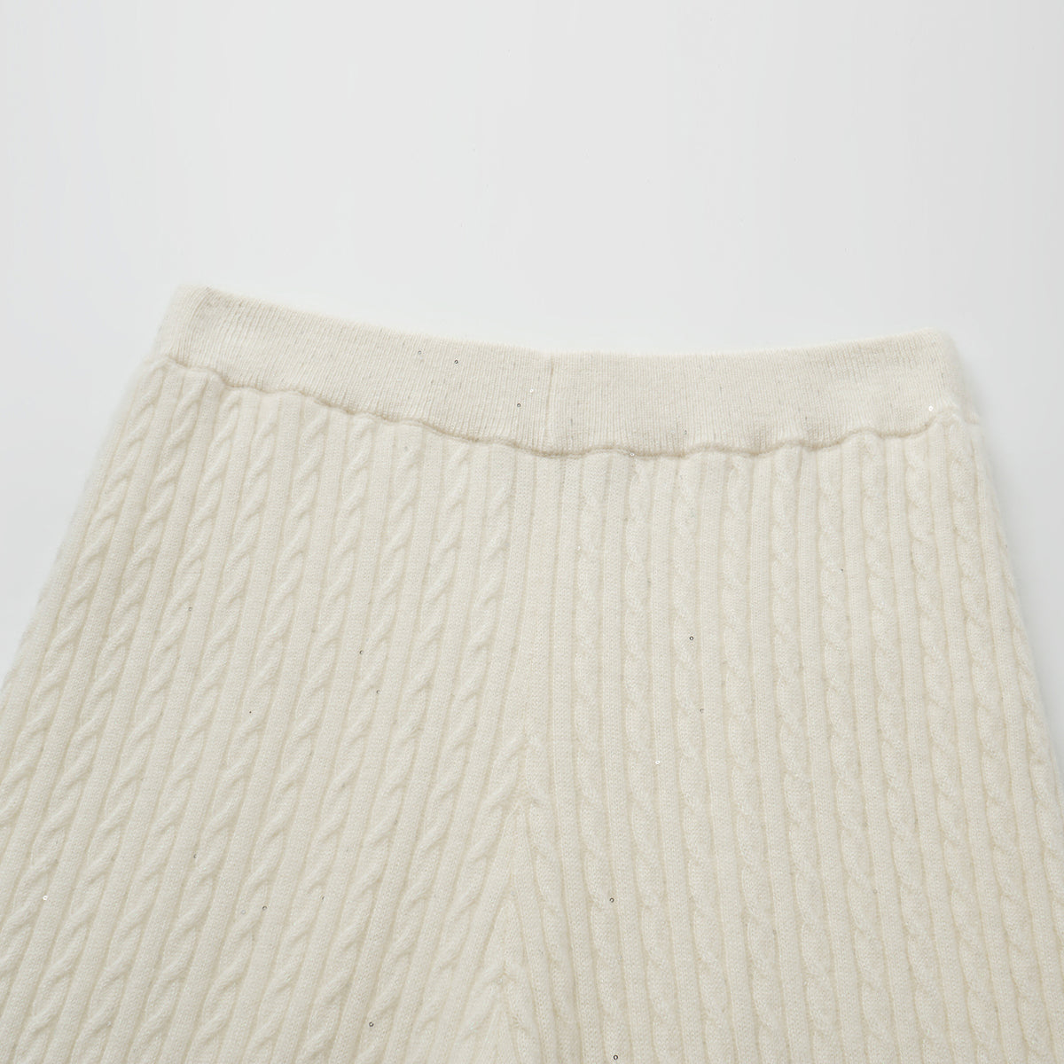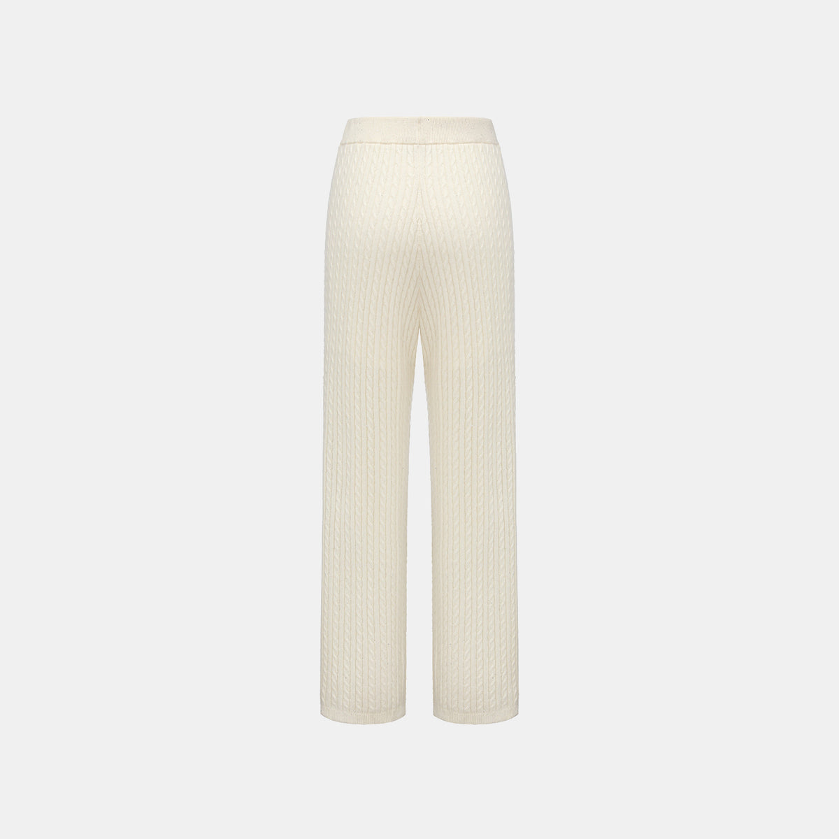 “Autumn Diary” 100% Cashmere 亮片麻花編織針織長褲—Sandal Light 檀香白茶
