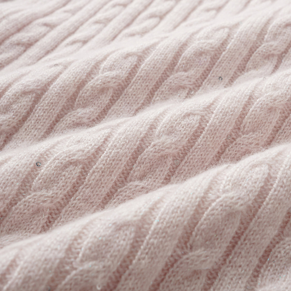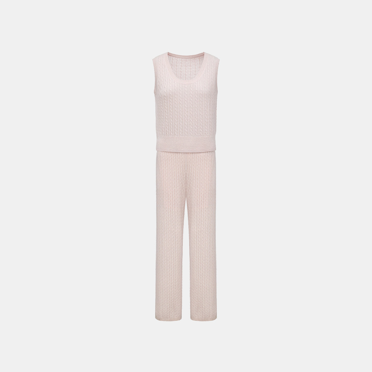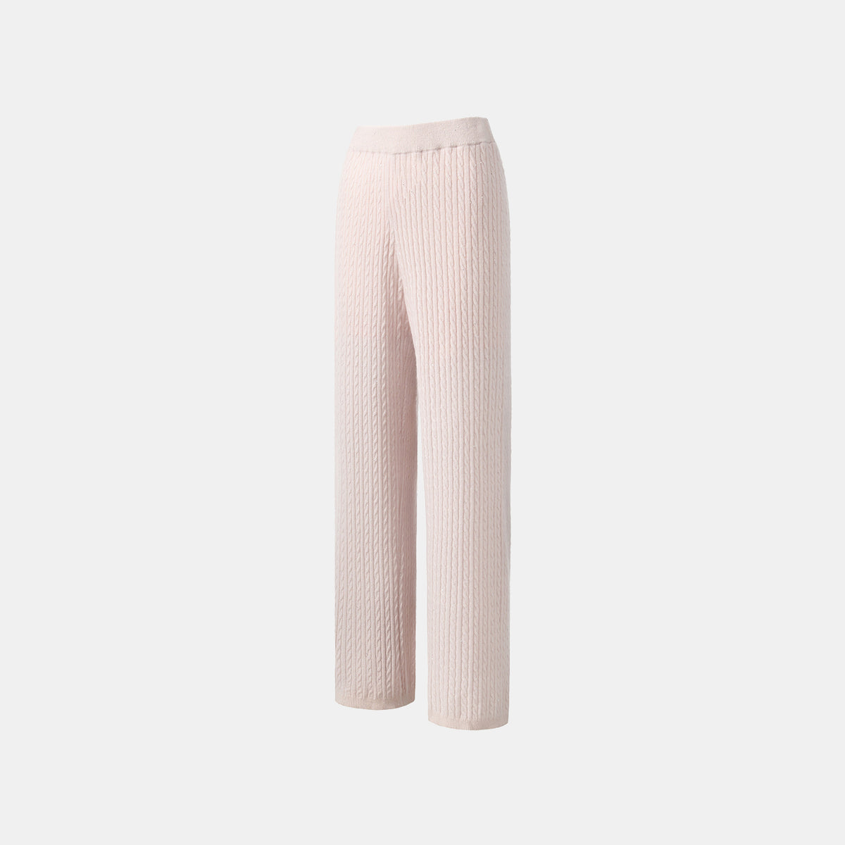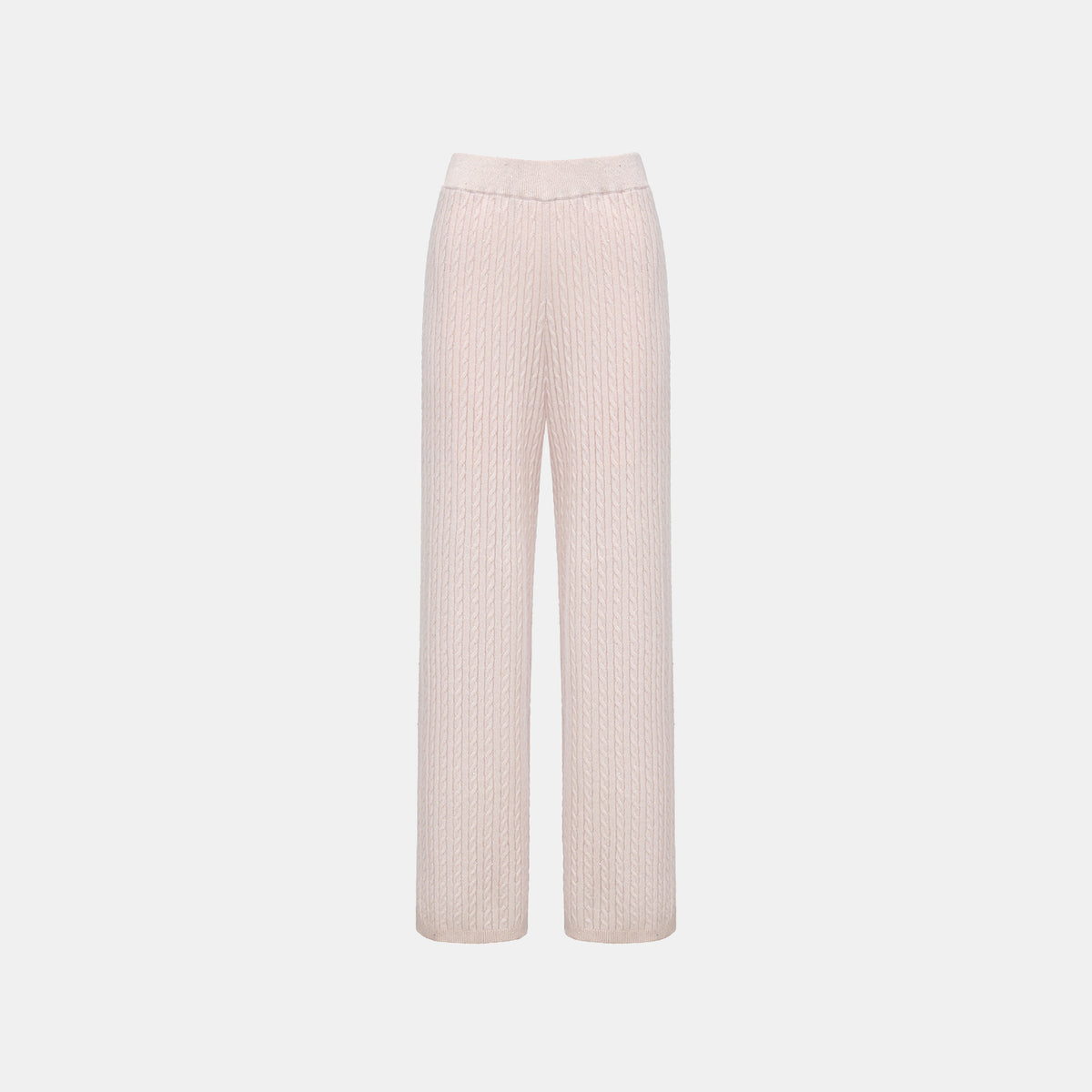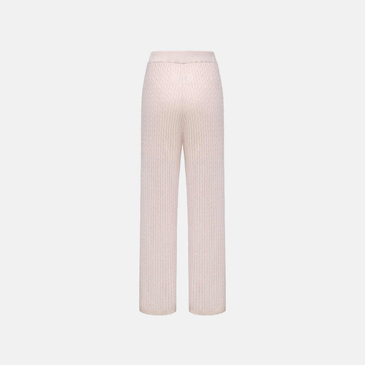 “Autumn Diary” 100% Cashmere 亮片麻花編織針織長褲—Blush Peony玫瑰晨露