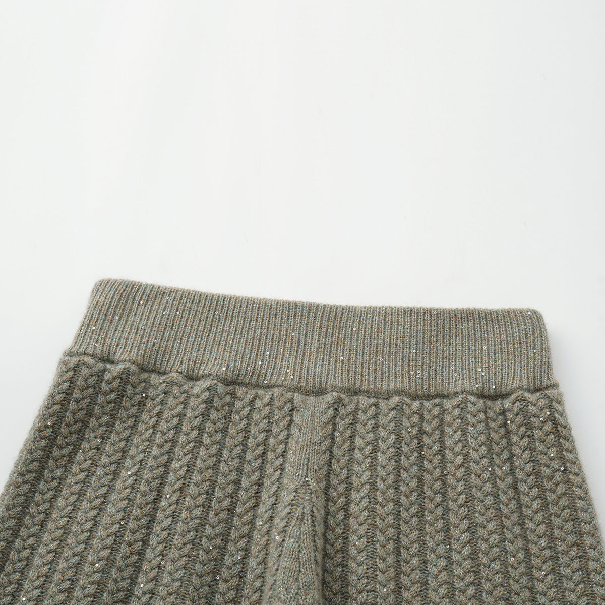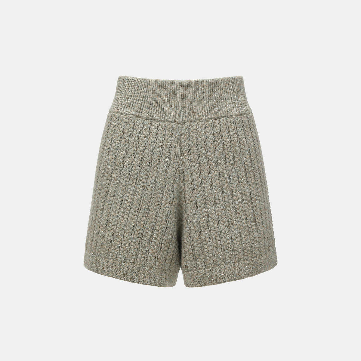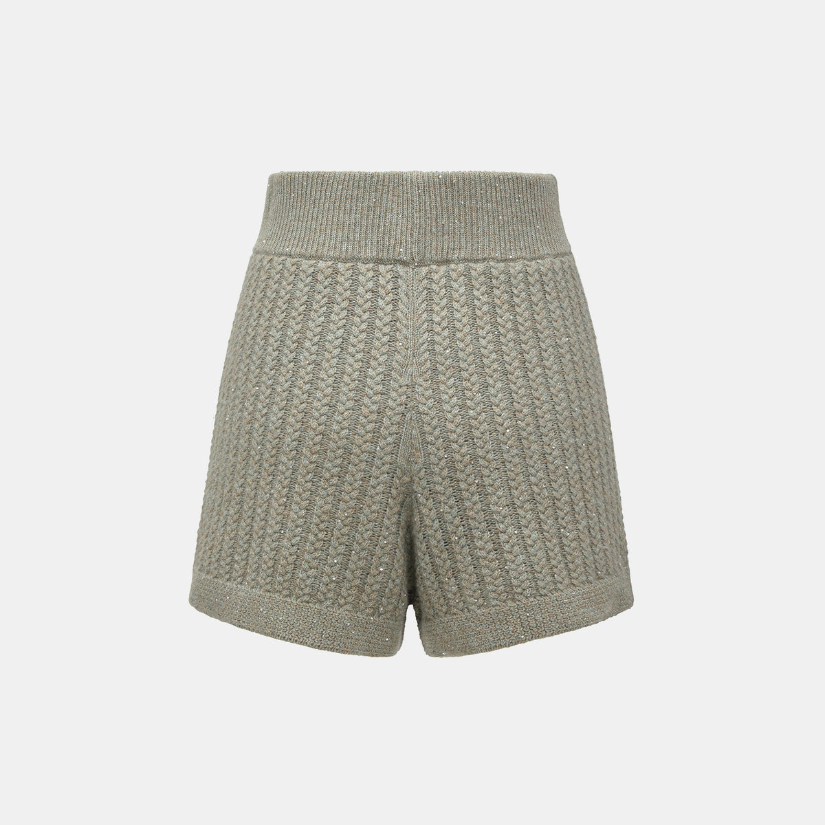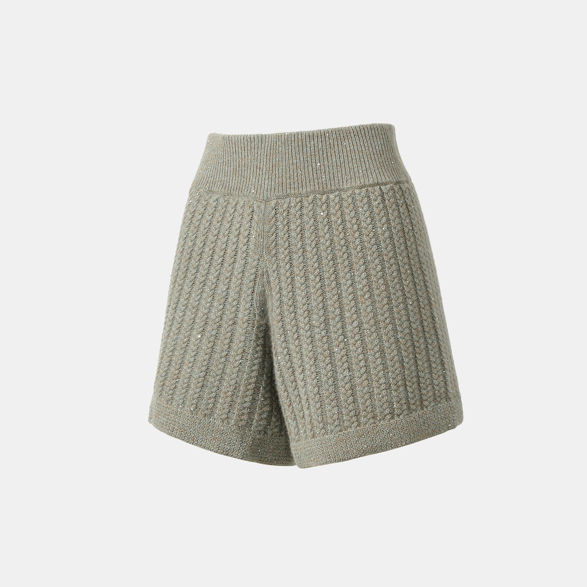 “Autumn Diary” 100% Cashmere 立體細麻花星點亮片針織短褲—Silver Birch銀樺霧林