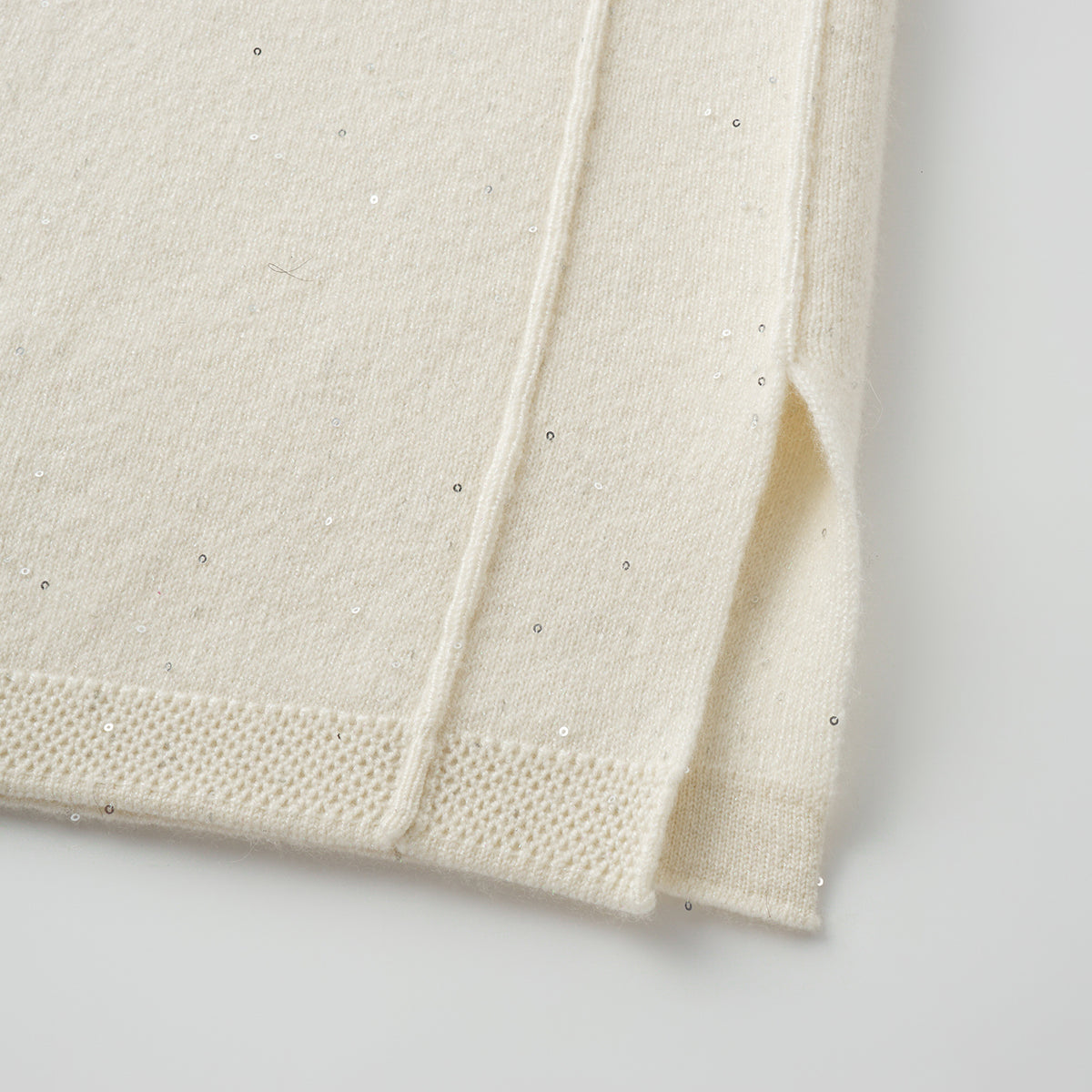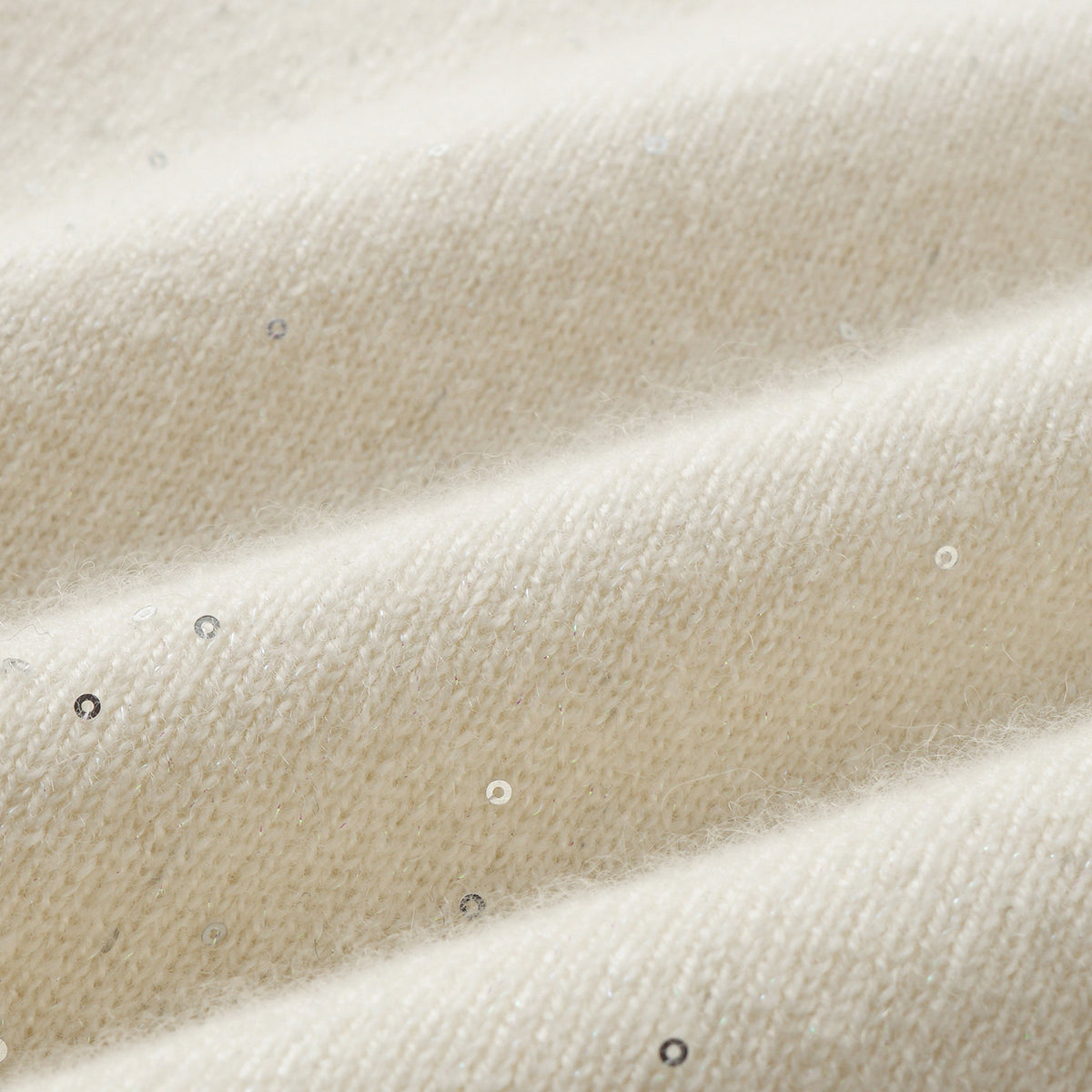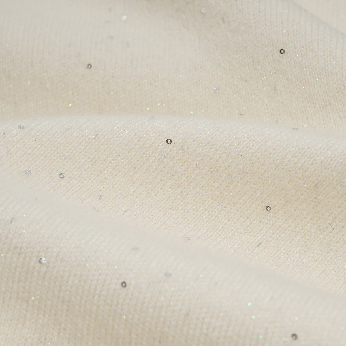 極細緻的100%羊絨,輕柔如霧,細緻星點閃爍微光。布料輕盈卻具溫度,柔滑貼膚,隨光轉動如呼吸般流動,呈現低調而細膩的奢華質感。