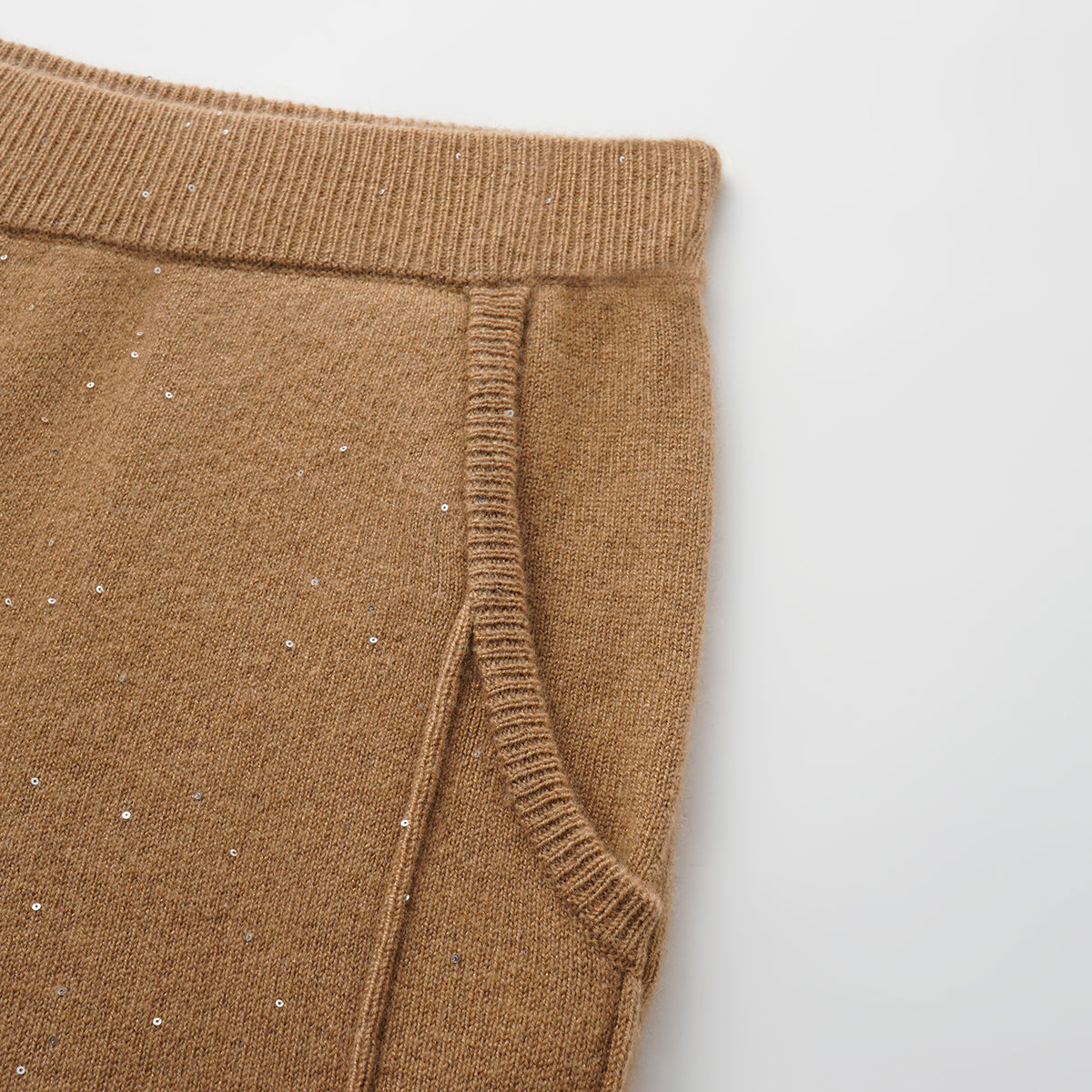 “Autumn Diary” 100% Cashmere極細絨柔星點針織長褲—Golden Acorn橡果暖陽