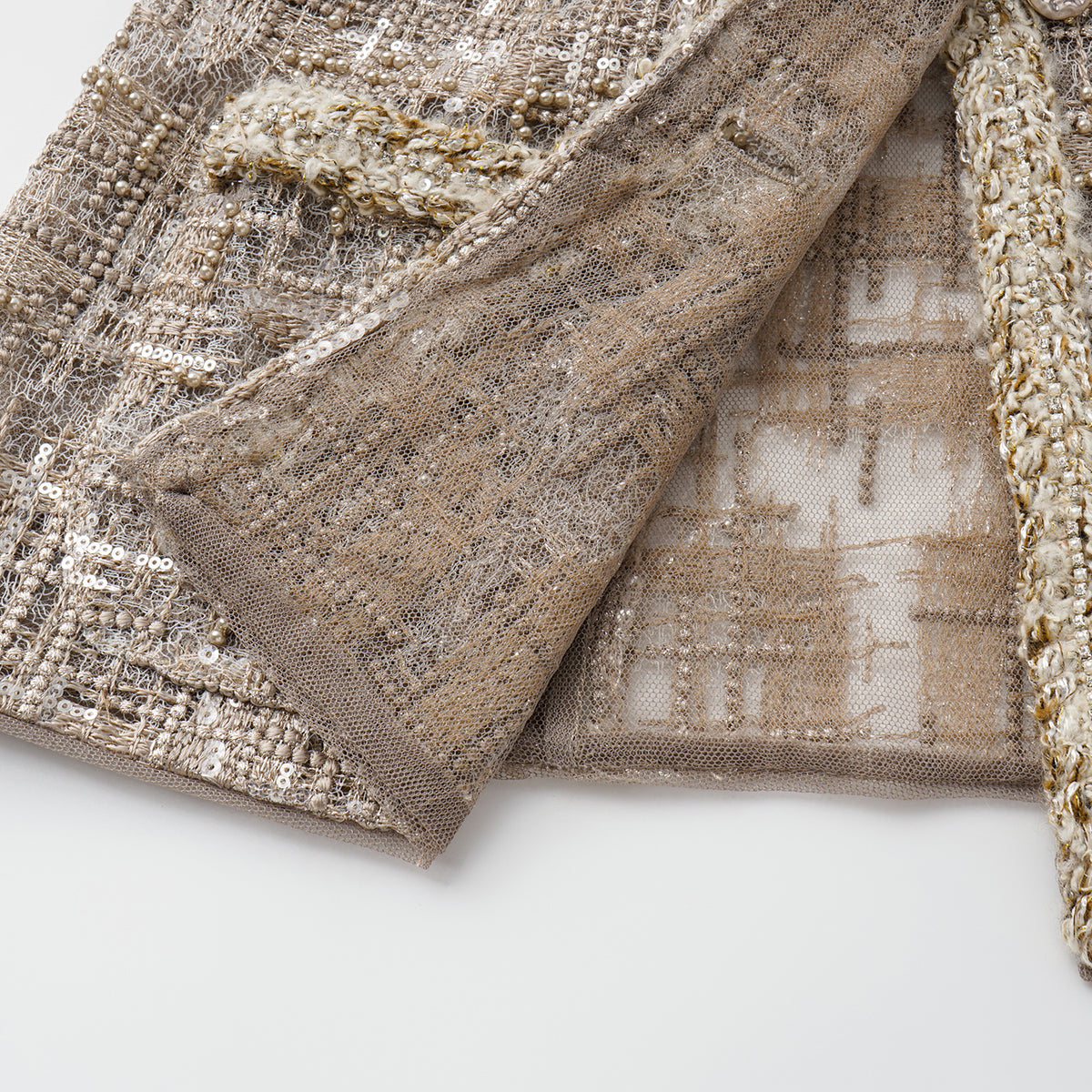 每一塊面料都經過嚴格甄選,部分由我們親自從歐洲頂級百年工坊與面料廠直接採購,部分則從纱線開始,經過挑選、設計與織造,再由專屬工廠完成最後的定型與製作。我們深信,唯有這樣全程把控的流程,才能讓每件作品不僅美麗,還蘊含可被信賴的質感與故事。