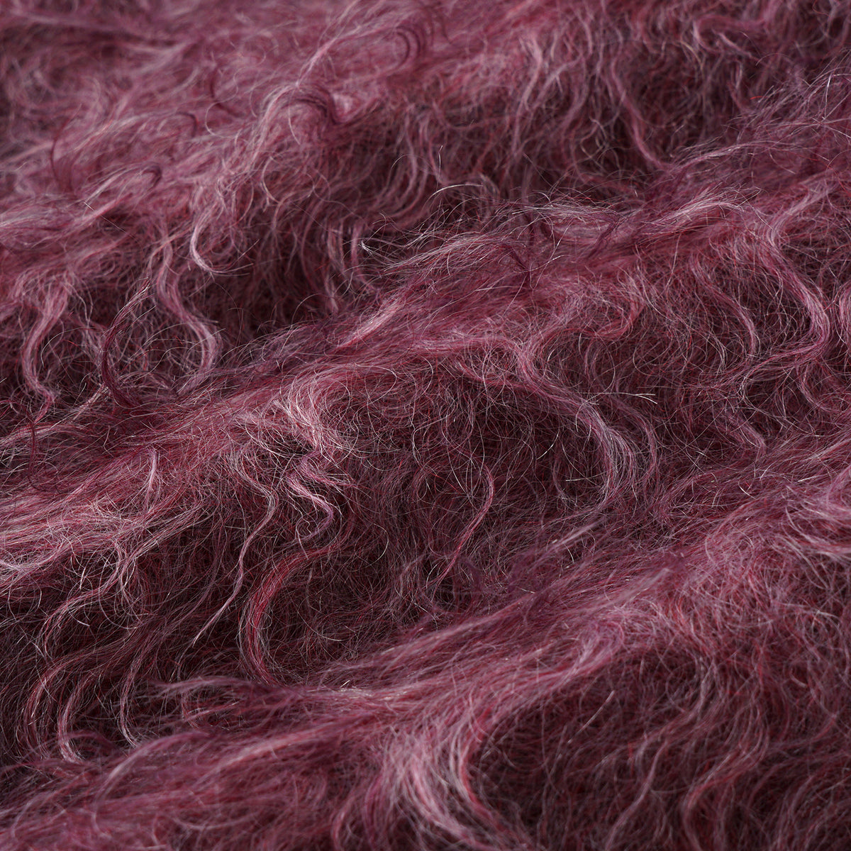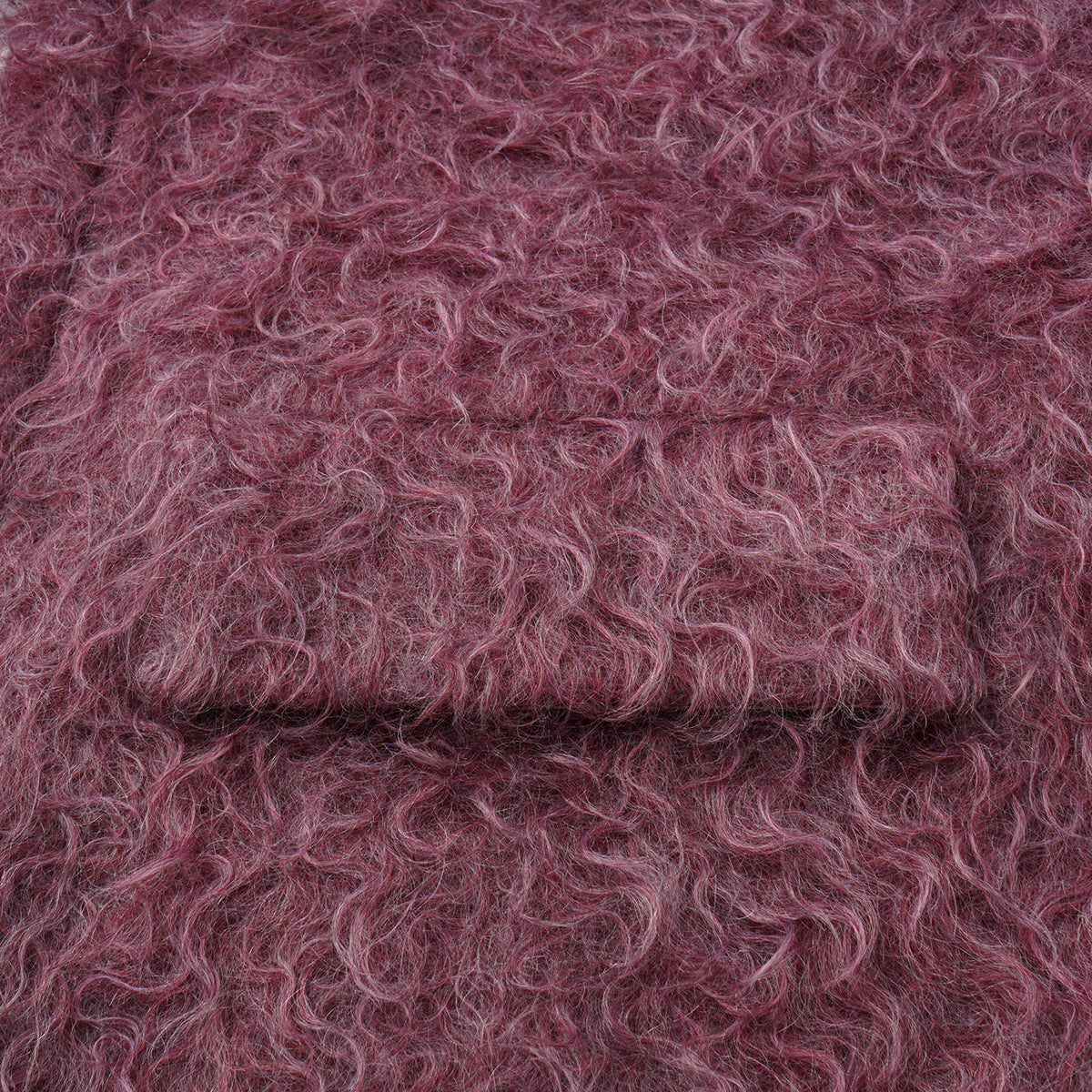 馬海毛交織出柔霧般的立體絨圈紋理,細膩而輕盈。光影流動於蓬鬆纖維間,呈現出柔軟的層次與溫暖的氣息,觸感如冬日微光般溫柔。
