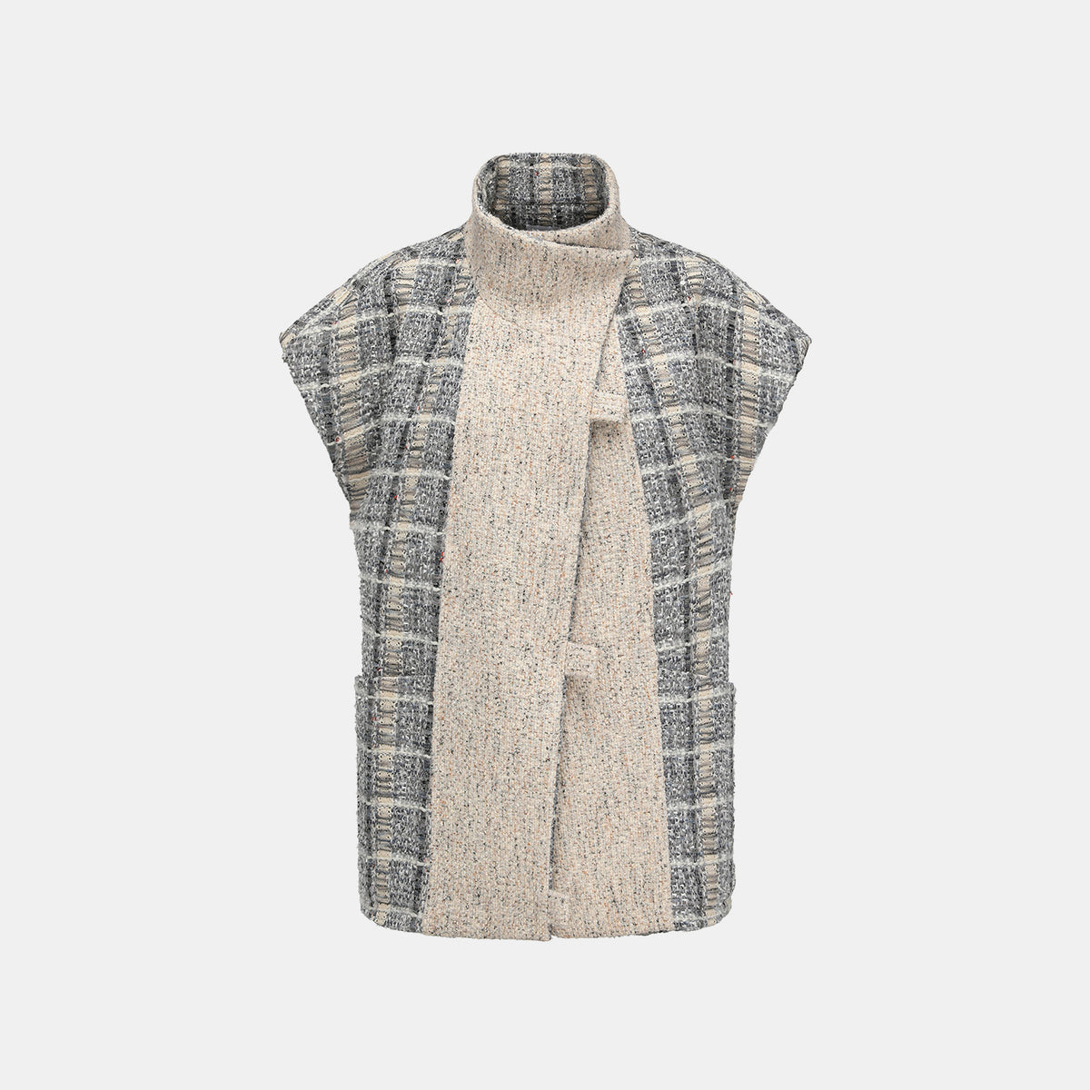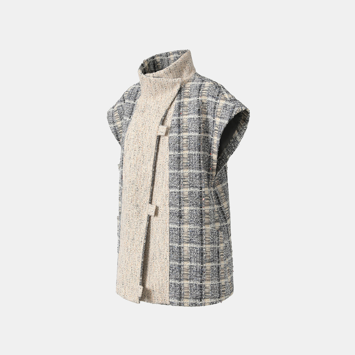"Oxford Autumn Elegance" 浮織蕾絲高領拼接斜襟花呢背心—Fair Isle Romance費爾島浪漫