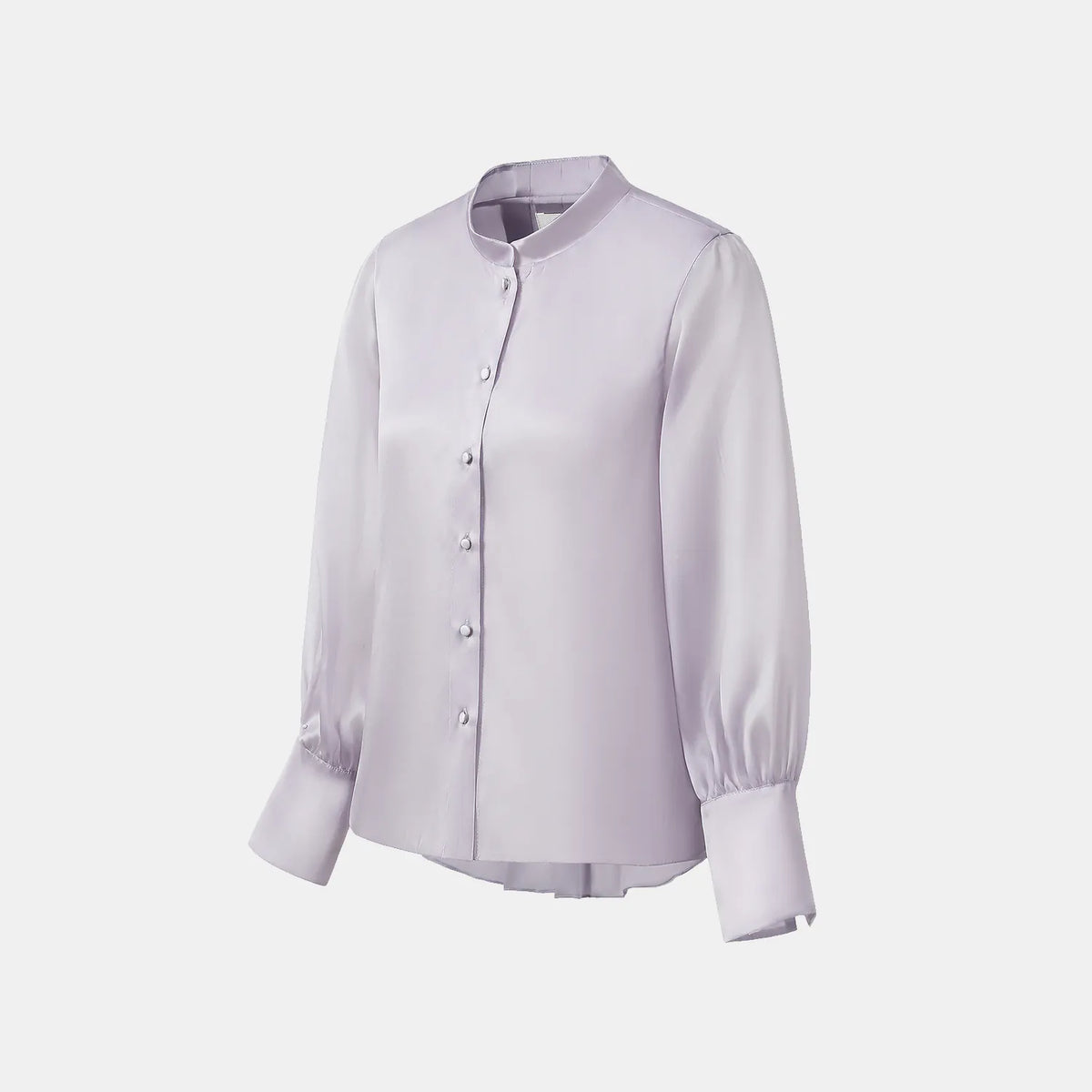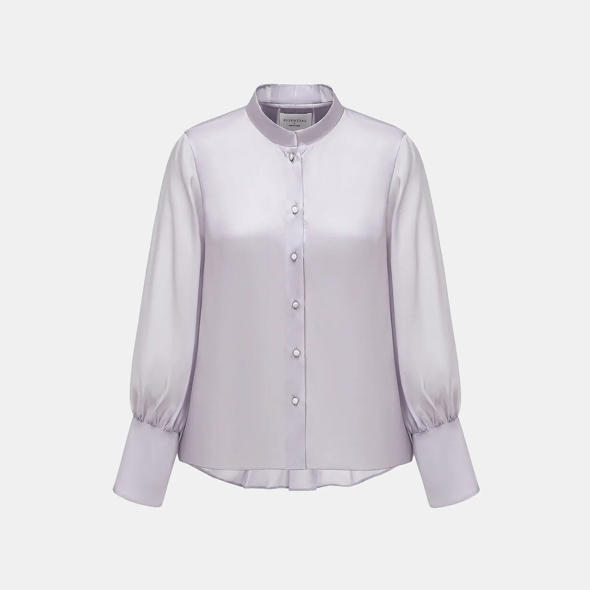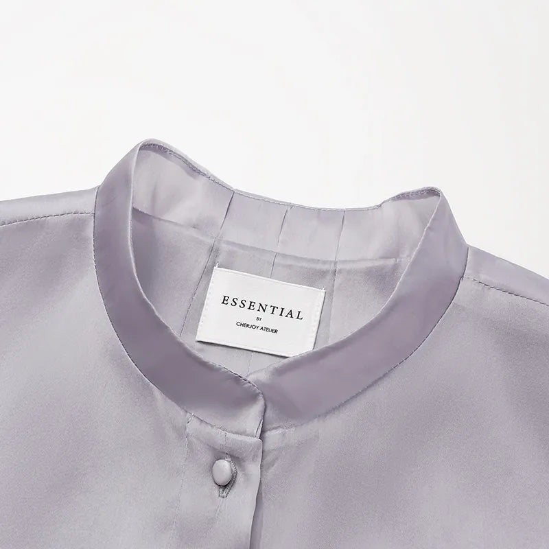 "慵倚春意" 真絲歐根緞立體剪裁國風罩衫— 暮雲煙紫