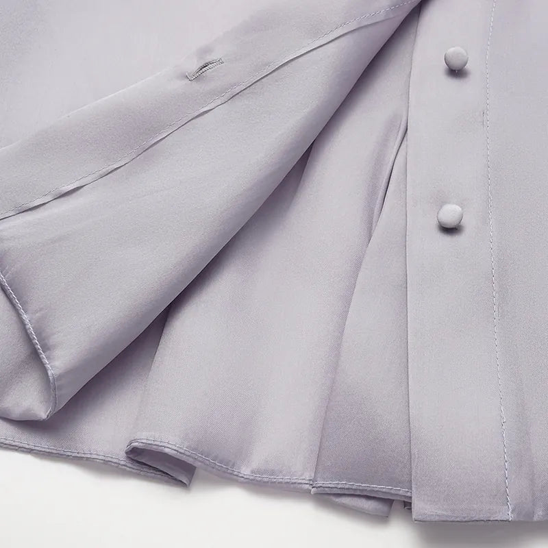 真絲的纖維能自然折射光線,散發珍珠般的光澤。它吸濕透氣,對肌膚溫柔如水,幾乎是唯一能同時兼具「輕盈」與「奢華」的天然纖維。穿上它,不只是穿衣,而是一場肌膚與布料的對話。