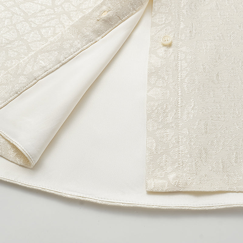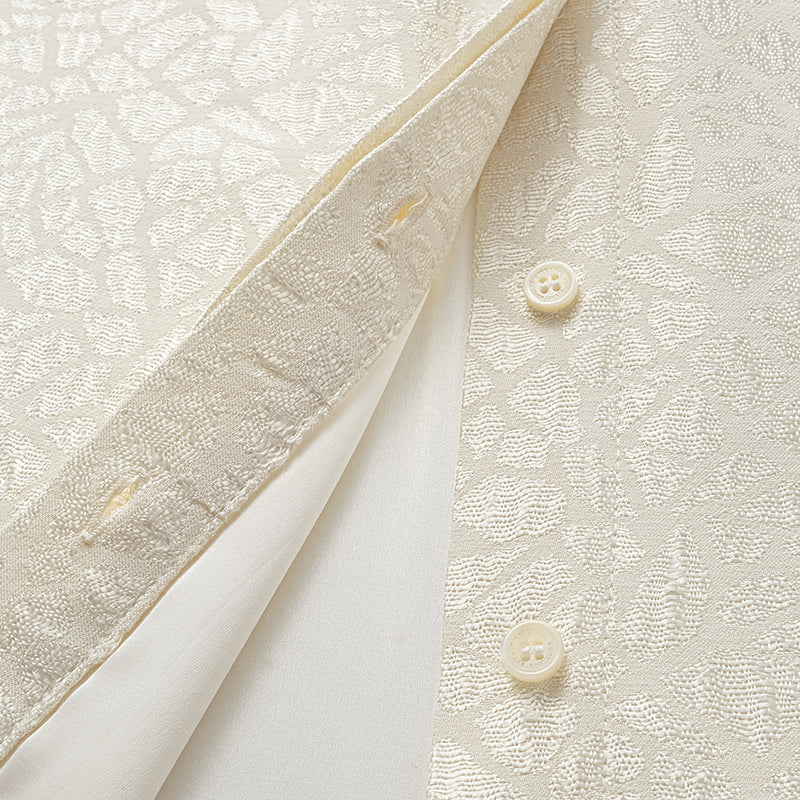 提花布料最大的魅力,在於「紋理本身就是藝術」。花紋不是印上去的,而是由經緯線交錯構成,因此層次更立體、觸感更細膩,也更耐洗耐磨。無論是繁複的宮廷感,還是簡約的幾何圖案,提花都能將設計的語言直接「織」進布料裡。穿上它,等於把藝術品披在身上。