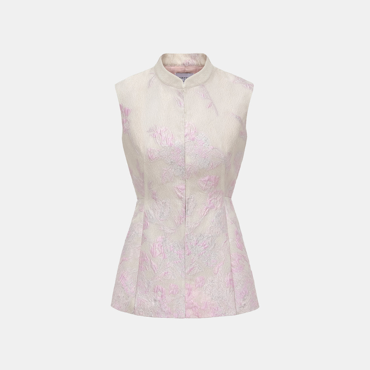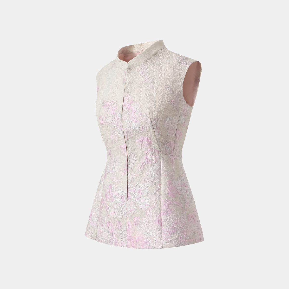“春意” 提花立體剪裁設計輕國風馬甲上衣—浮光露櫻