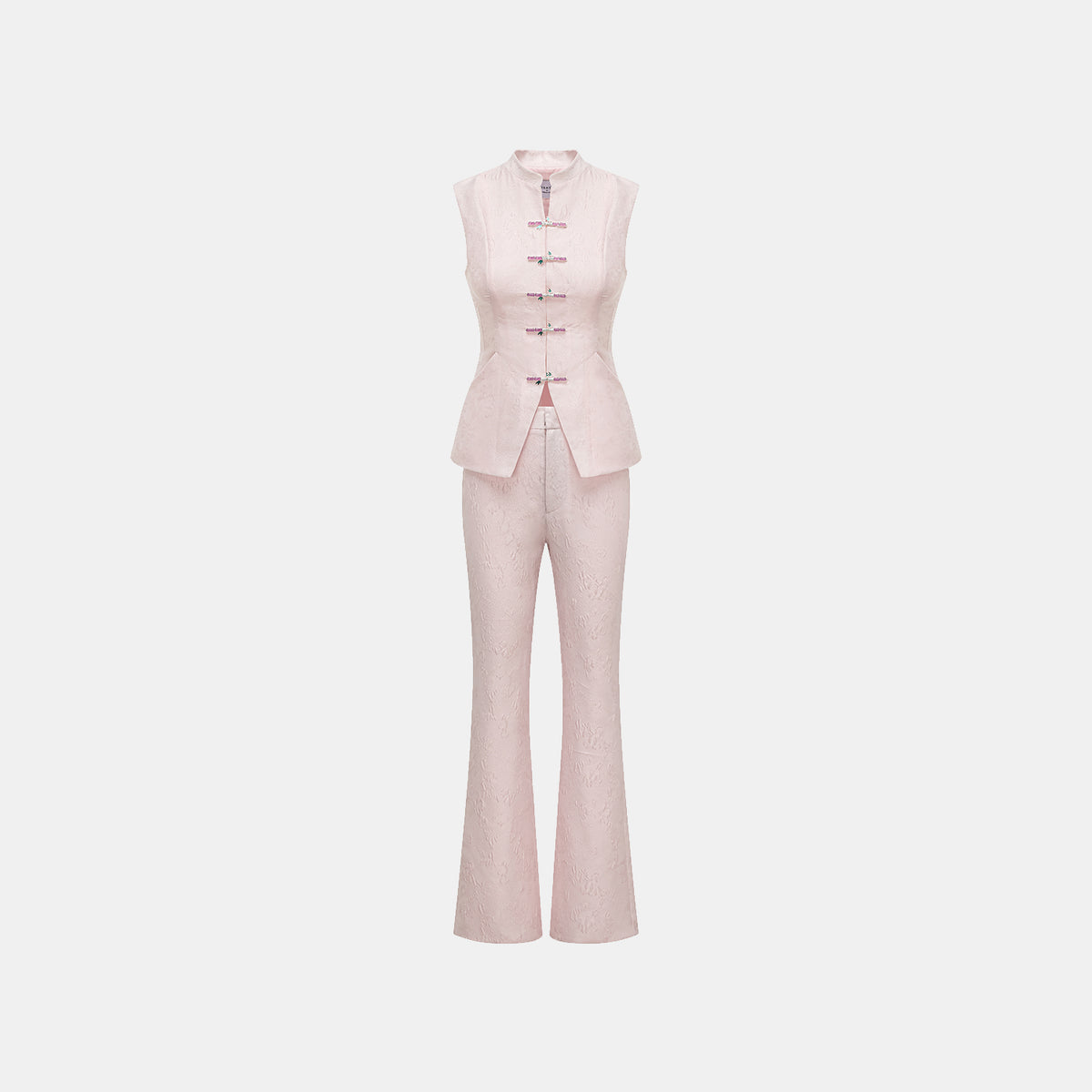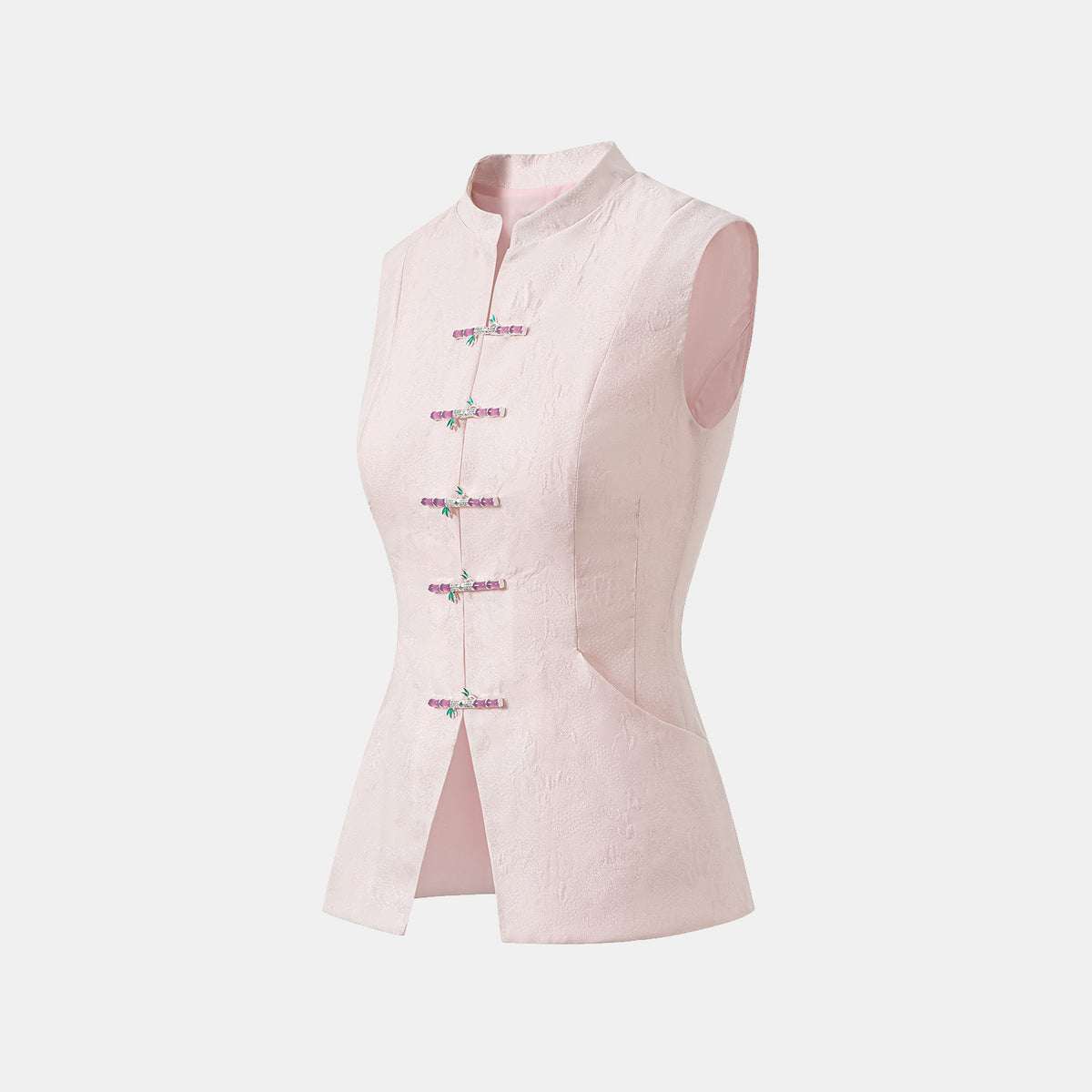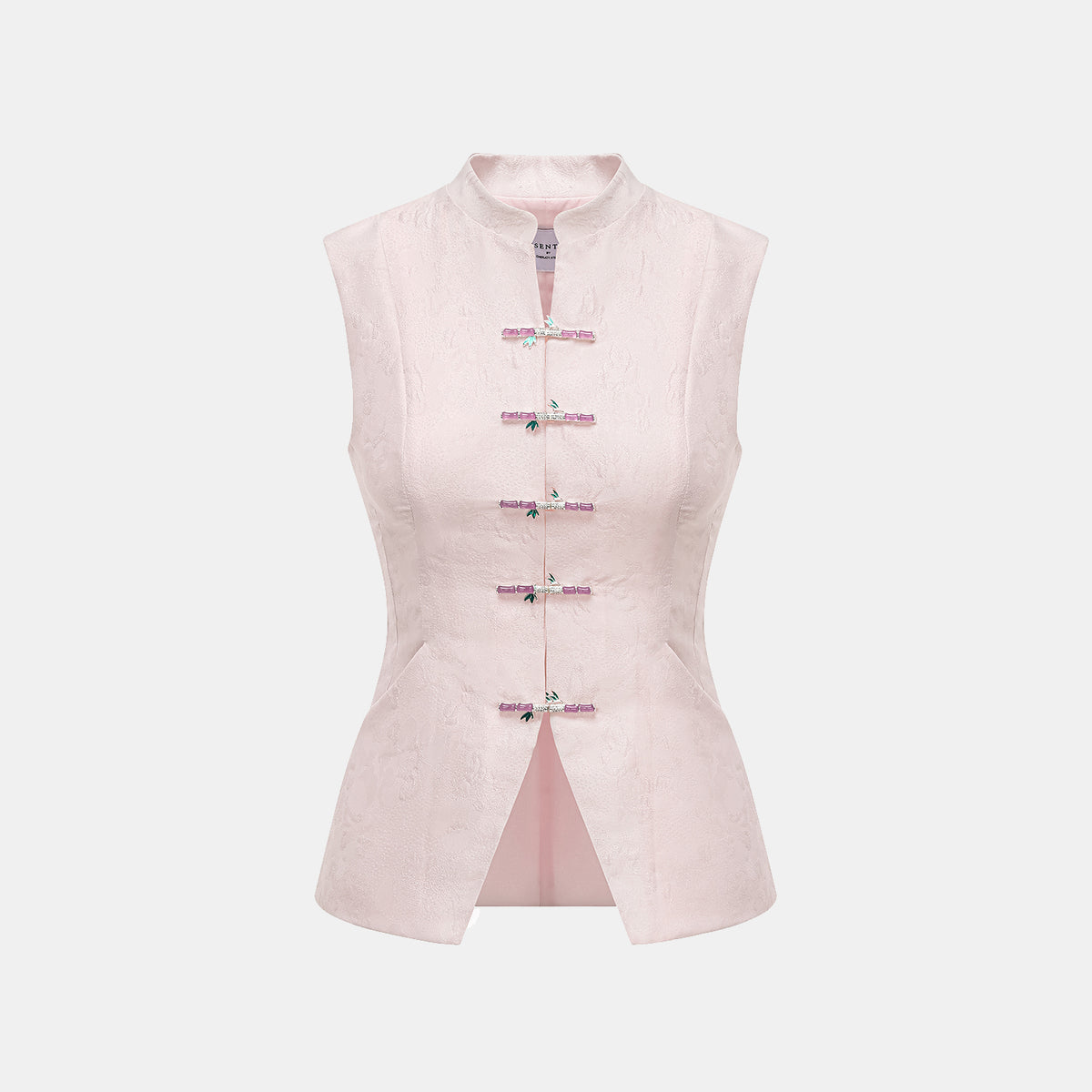 “茶宴” 碎銀工藝提花輕國風馬甲背心—粉露芙蓉