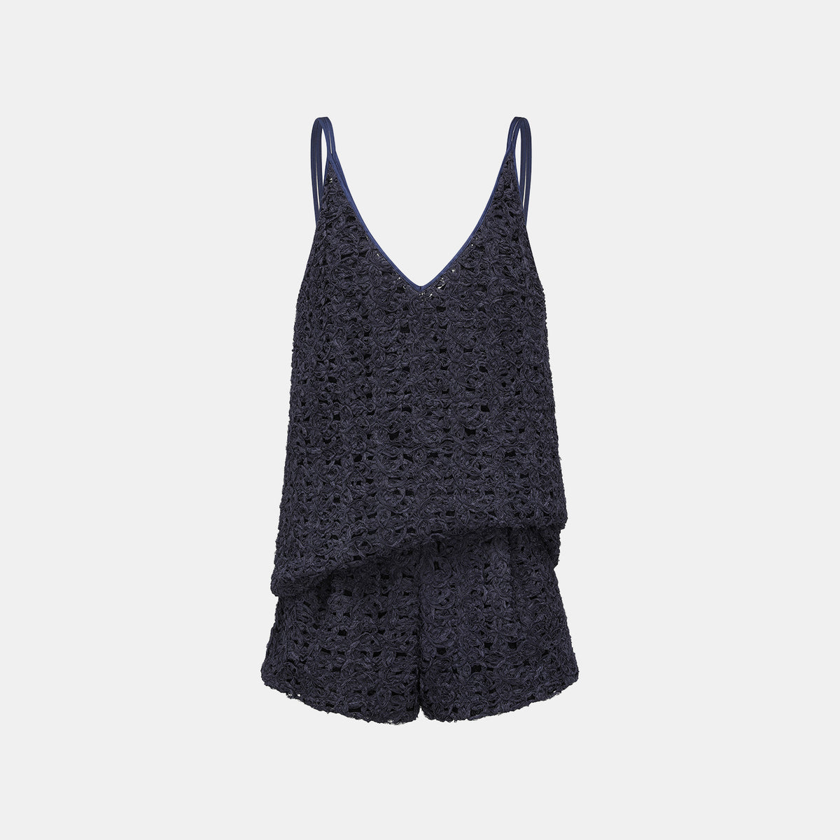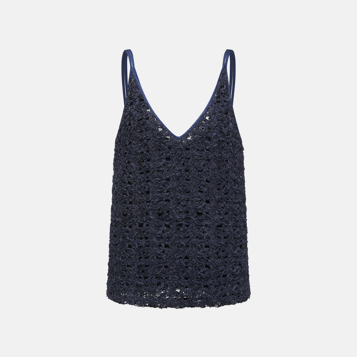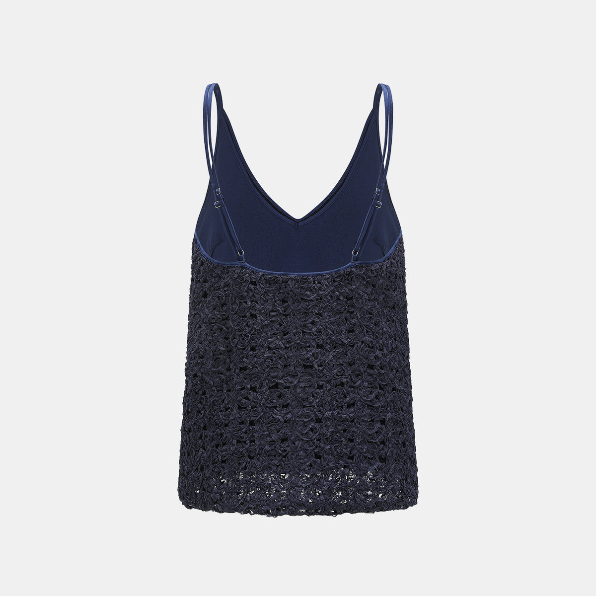 “Sloane Ave."繞畫織藝鏤花蕾絲細肩帶背心—Indigo Ballad布爾藍調