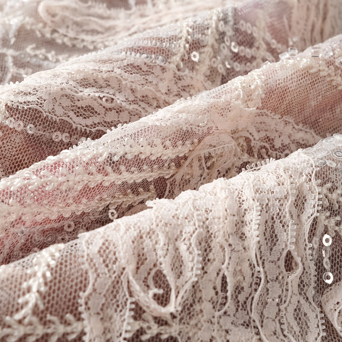 歐根紗由極細緊密的絲線或合成纖維織成,透明卻堅挺,能營造層次與空氣感。它的最大特點是「輕」與「挺」並存——能夠撐起裙襬的輪廓,卻又幾乎沒有重量。無論是婚紗、晚禮服還是舞台服飾,歐根紗總能帶來一種夢幻的體積感。