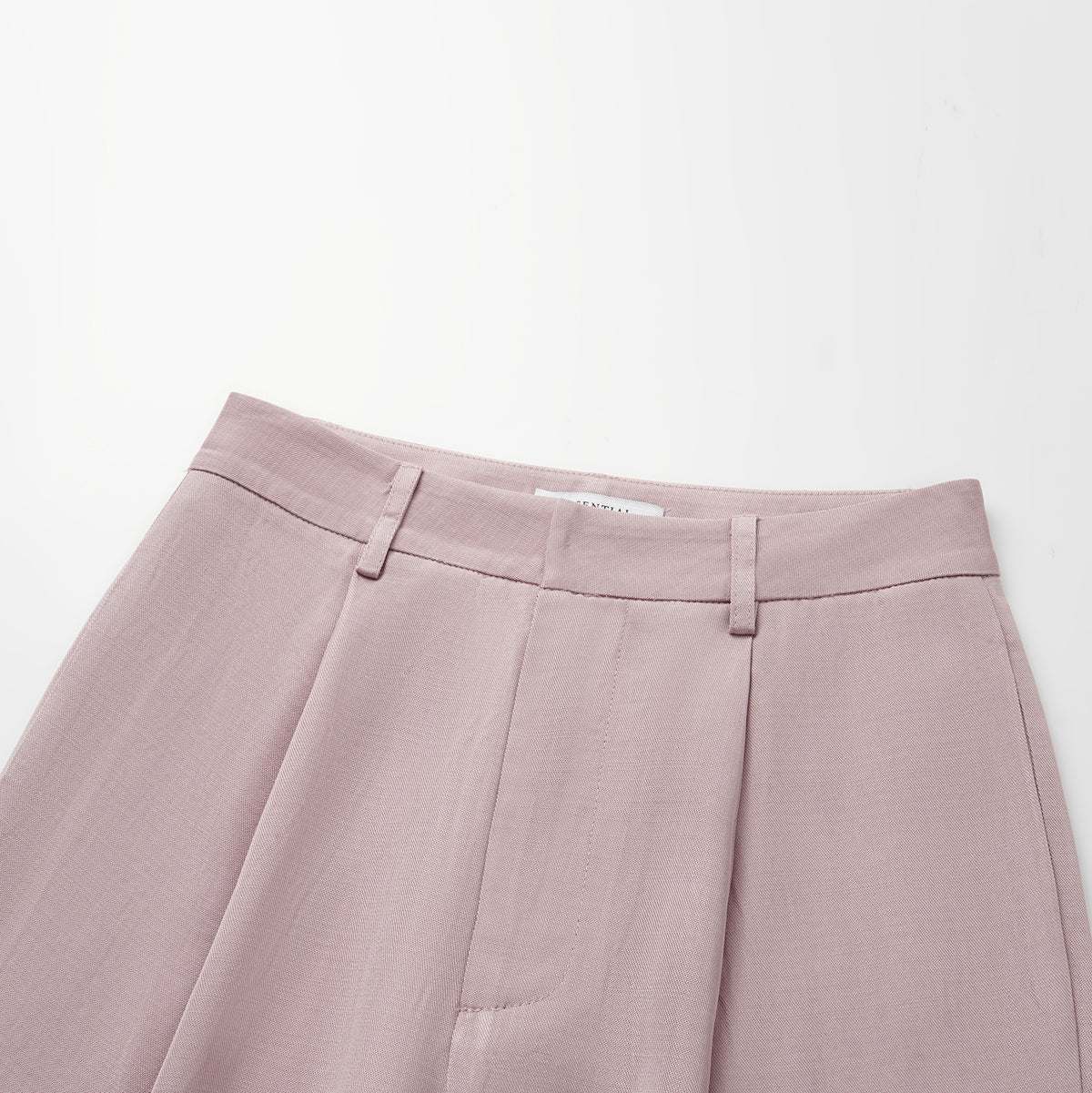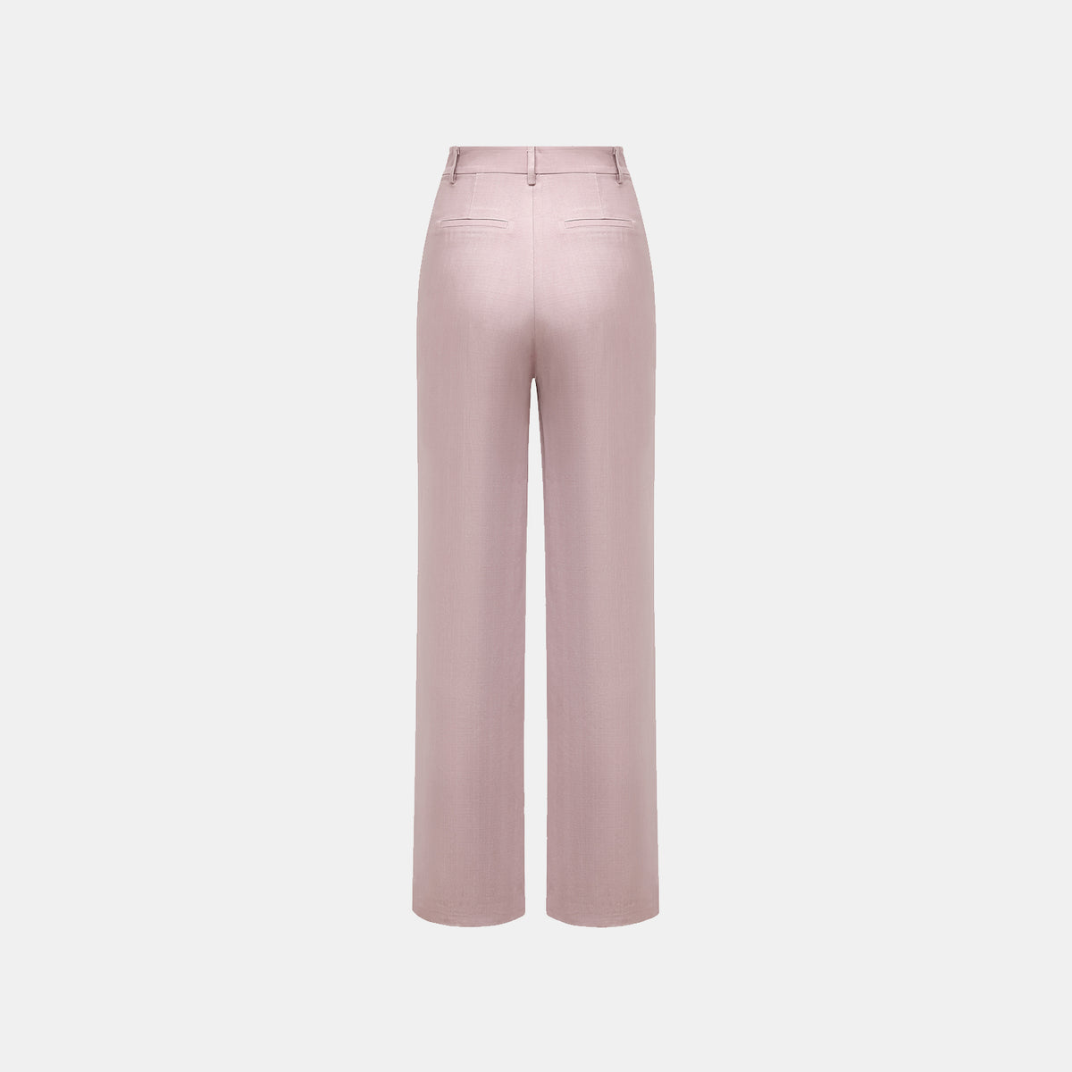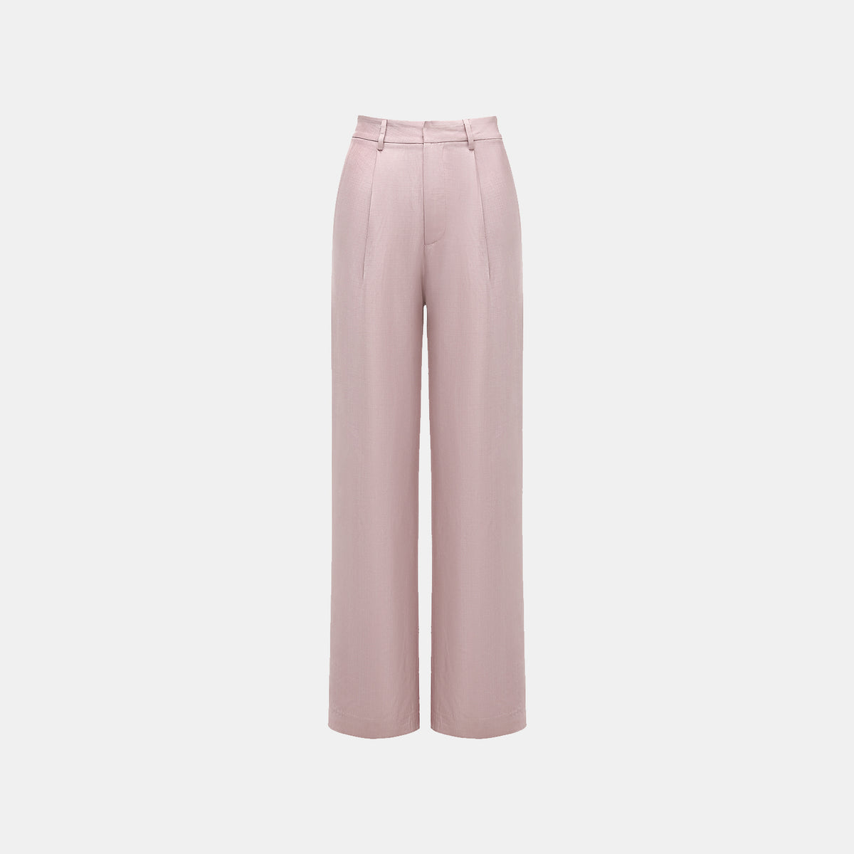 "Speak Sleek" 奢華輕薄麻感肌理醋酸立體剪裁寬褲—Pink