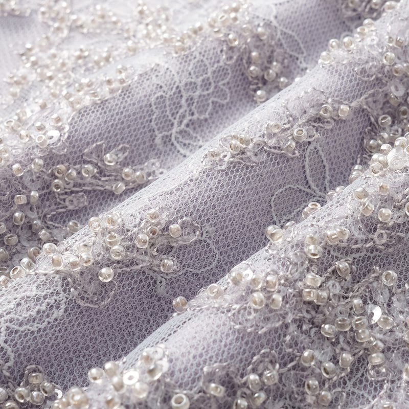 歐根紗由極細緊密的絲線或合成纖維織成,透明卻堅挺,能營造層次與空氣感。它的最大特點是「輕」與「挺」並存——能夠撐起裙襬的輪廓,卻又幾乎沒有重量。無論是婚紗、晚禮服還是舞台服飾,歐根紗總能帶來一種夢幻的體積感。