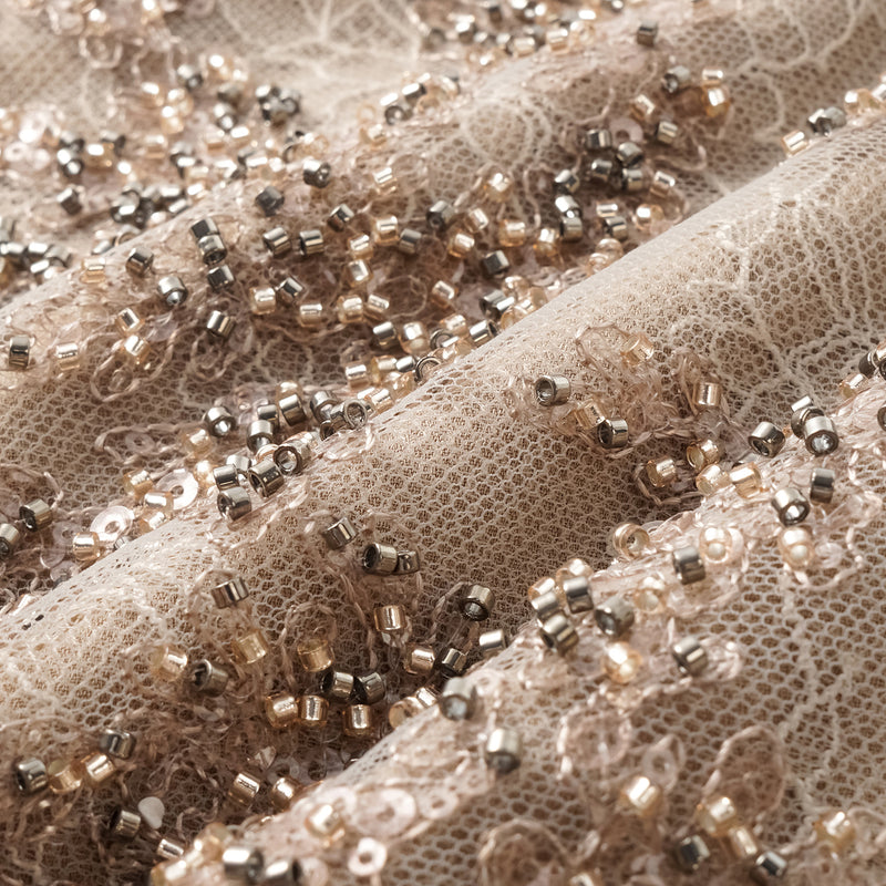 歐根紗由極細緊密的絲線或合成纖維織成,透明卻堅挺,能營造層次與空氣感。它的最大特點是「輕」與「挺」並存——能夠撐起裙襬的輪廓,卻又幾乎沒有重量。無論是婚紗、晚禮服還是舞台服飾,歐根紗總能帶來一種夢幻的體積感。