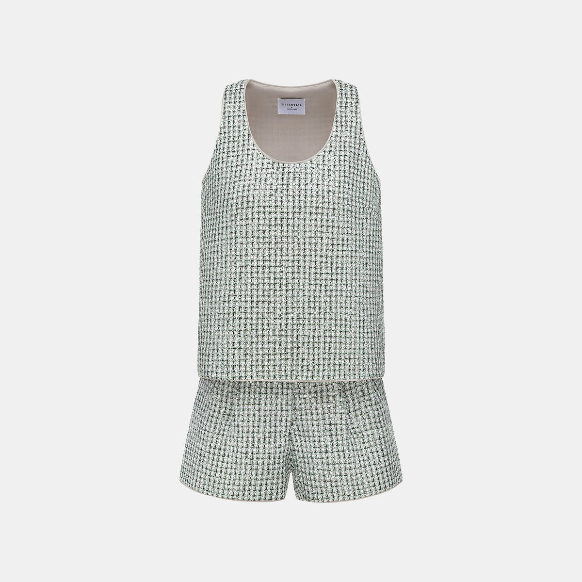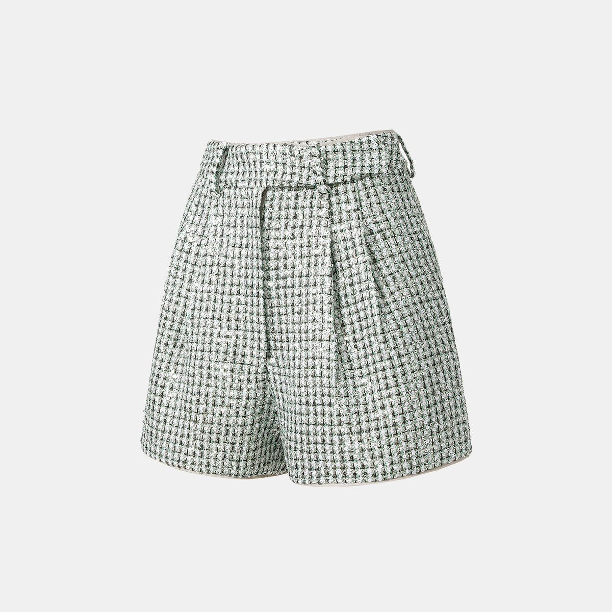 “Weekend at Monaco” 彩織亮片鑲藝花呢短褲—Chartreuse Swizzle夏翠絲旋舞