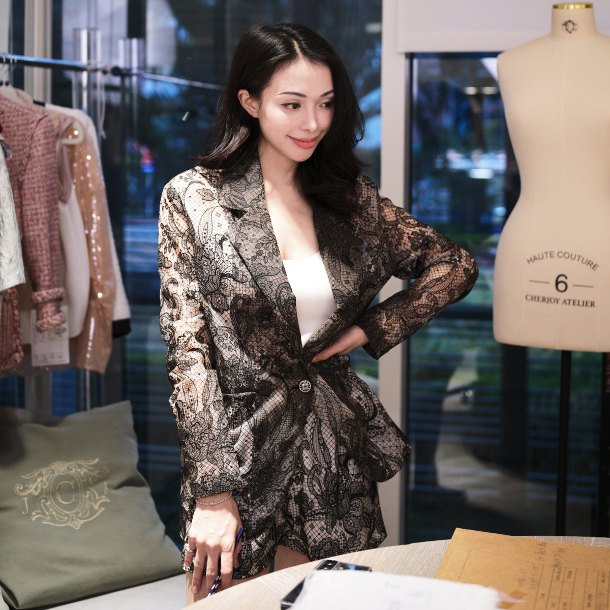 每一塊面料都經過嚴格甄選,部分由我們親自從歐洲頂級百年工坊與面料廠直接採購,部分則從纱線開始,經過挑選、設計與織造,再由專屬工廠完成最後的定型與製作。我們深信,唯有這樣全程把控的流程,才能讓每件作品不僅美麗,還蘊含可被信賴的質感與故事。