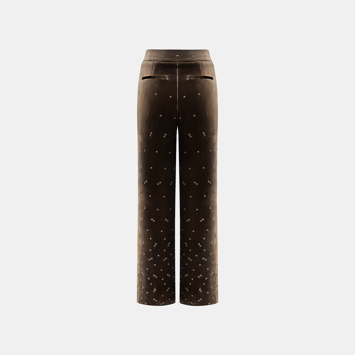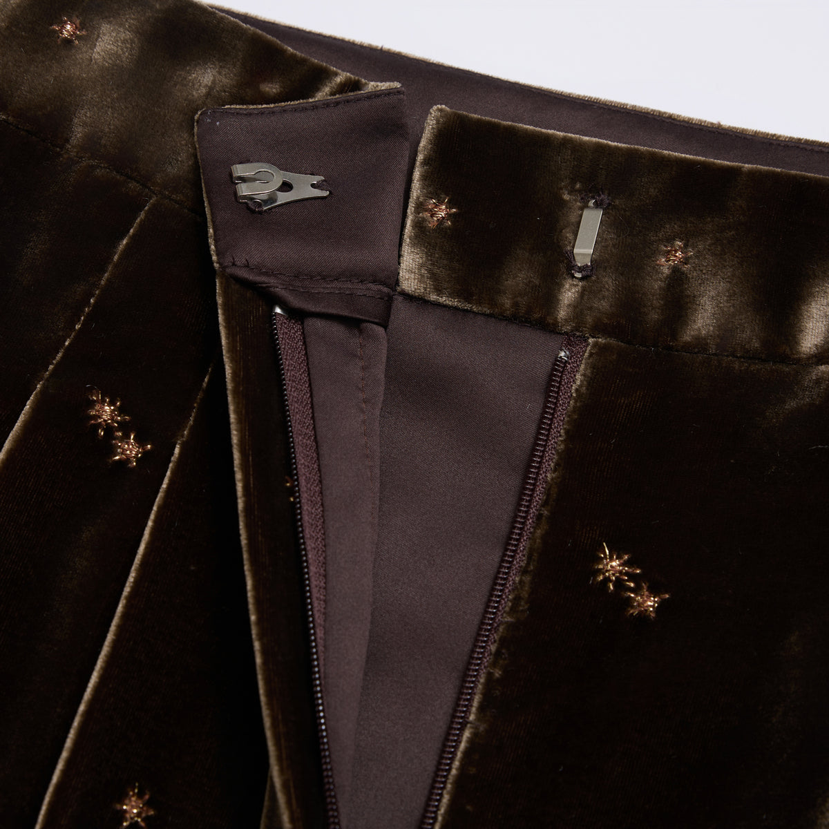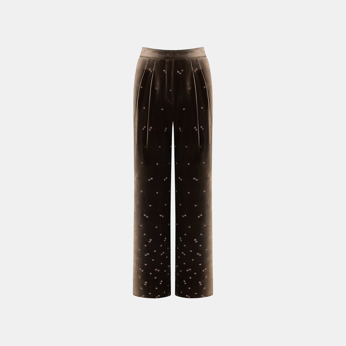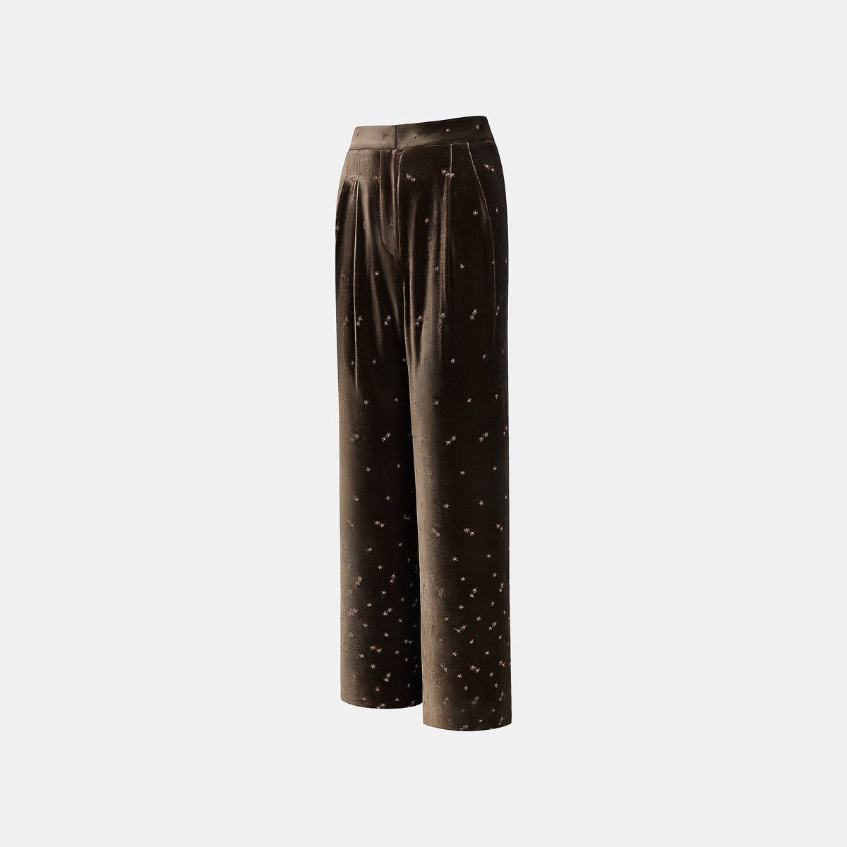 "Imperial Garden Teatime"法國細針嵌點刺繡絲絨立體剪裁長褲—Silent Gleam微光成詩