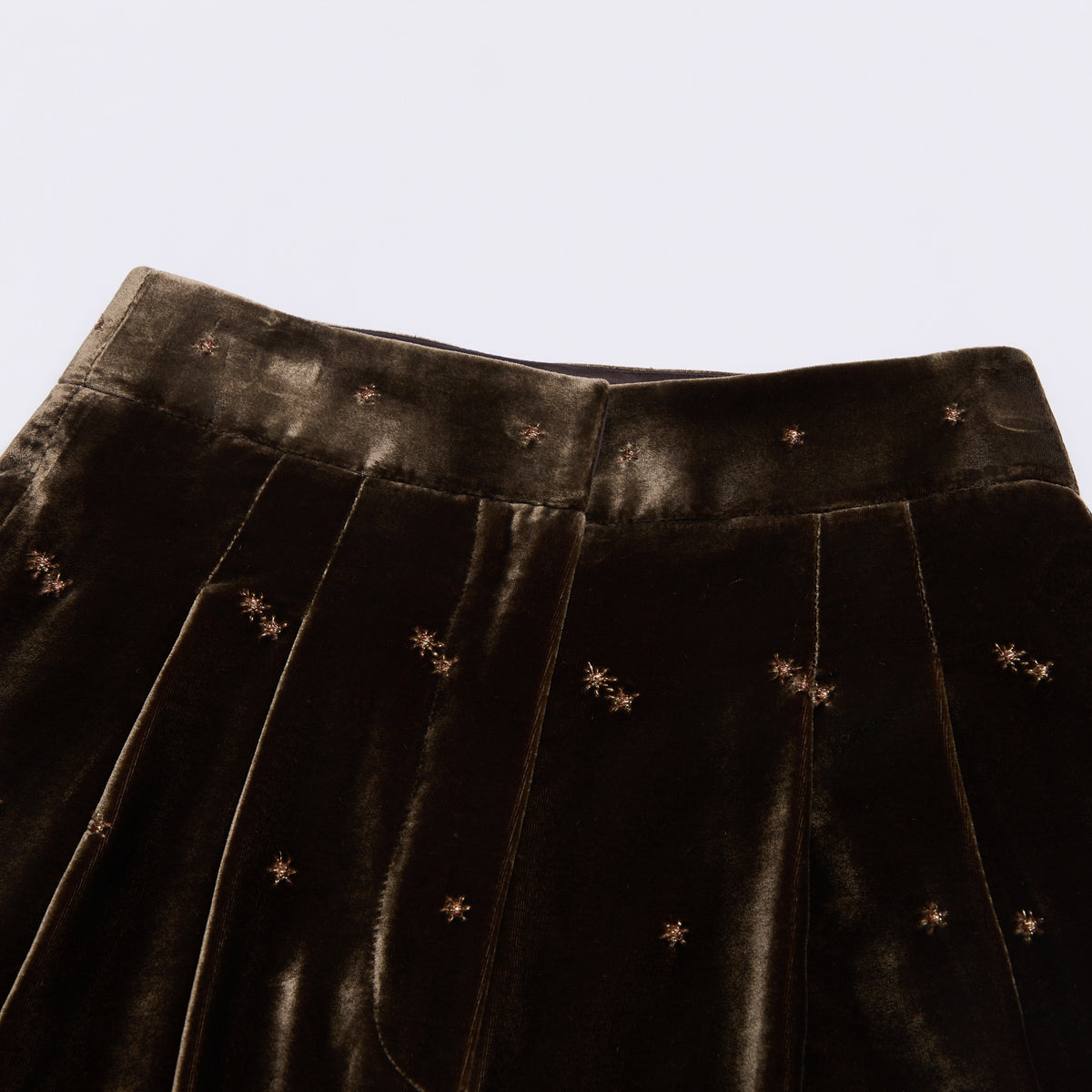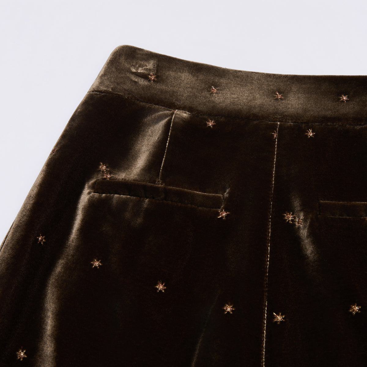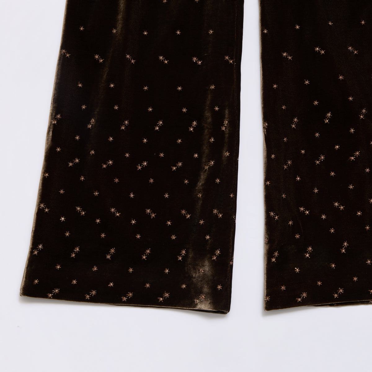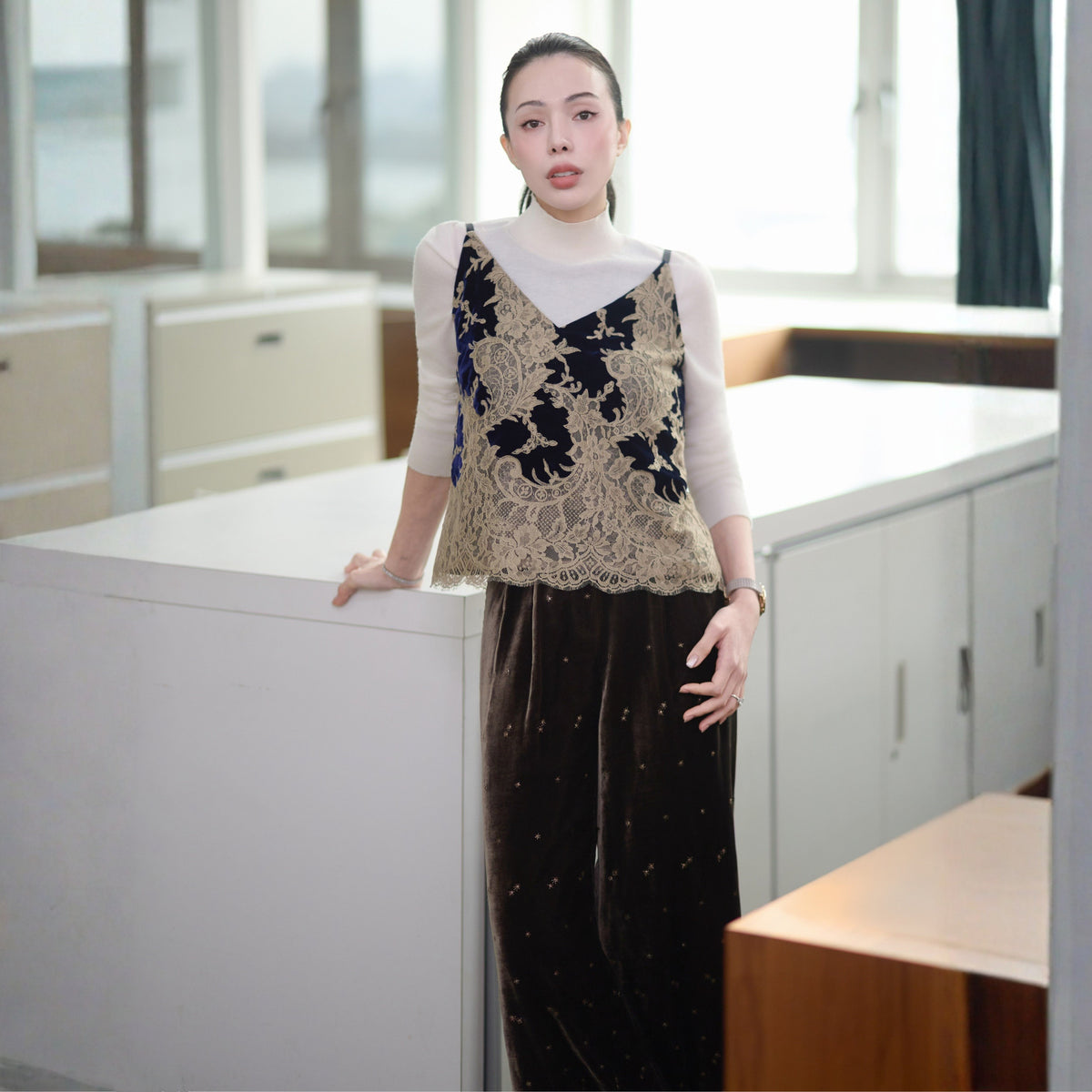 "Imperial Garden Teatime"法國細針嵌點刺繡絲絨立體剪裁長褲—Silent Gleam微光成詩