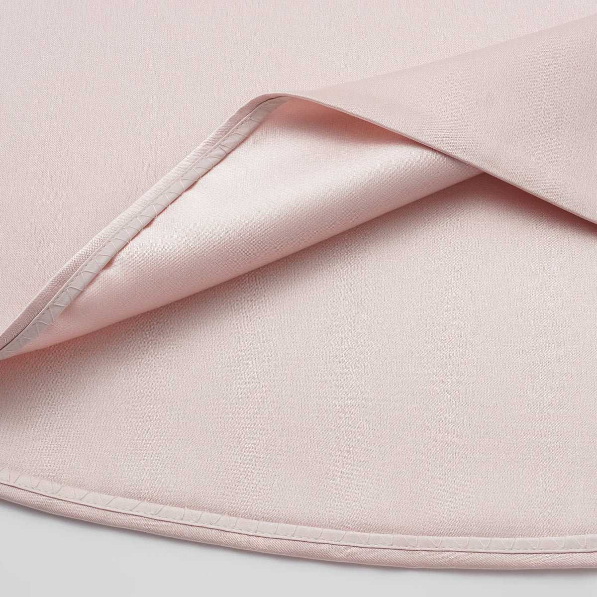 歐根紗由極細緊密的絲線或合成纖維織成,透明卻堅挺,能營造層次與空氣感。它的最大特點是「輕」與「挺」並存——能夠撐起裙襬的輪廓,卻又幾乎沒有重量。無論是婚紗、晚禮服還是舞台服飾,歐根紗總能帶來一種夢幻的體積感。