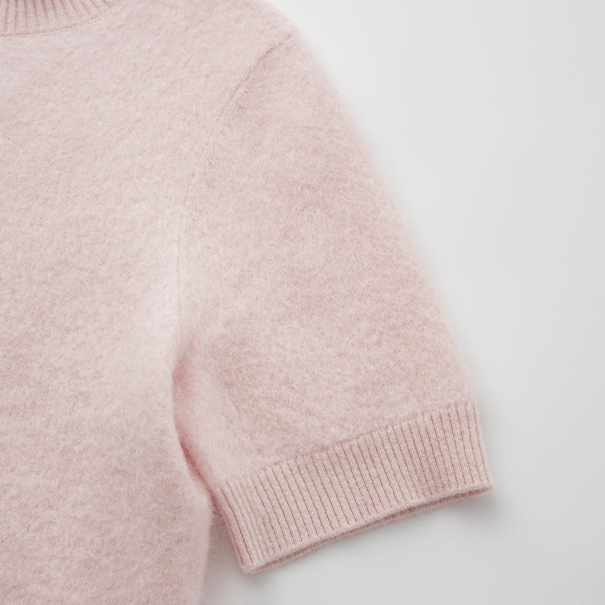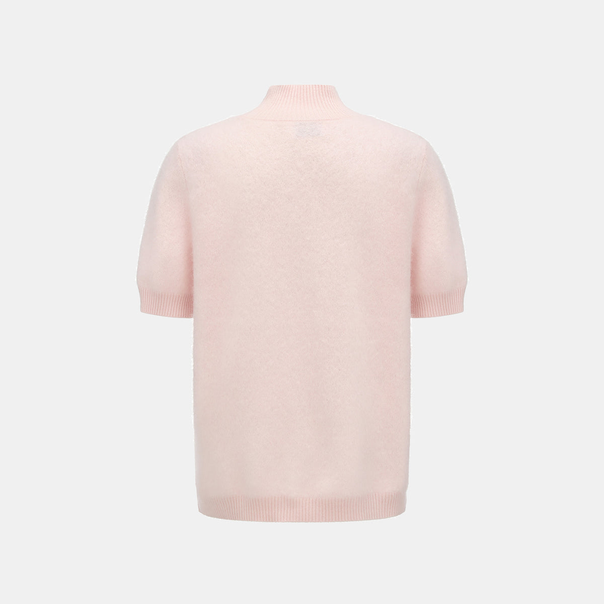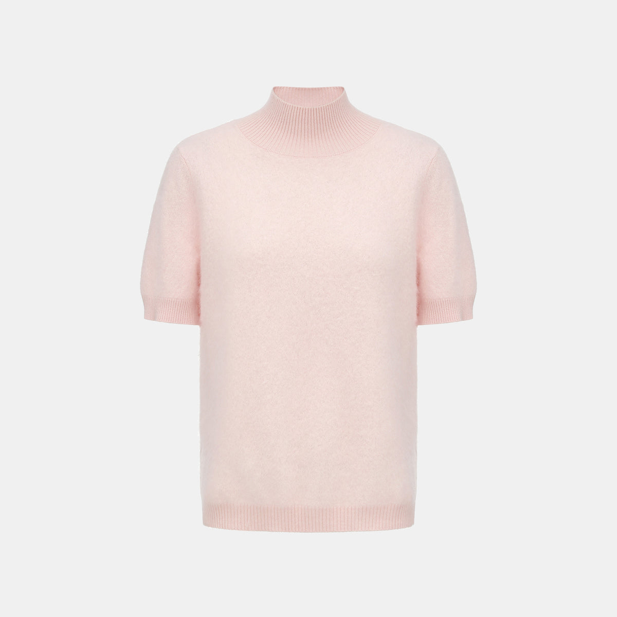 “Winter Diary” 100%Cashmere極細絨柔梳纖工藝立領五分袖上衣—Cotton Blush棉花蜜粉