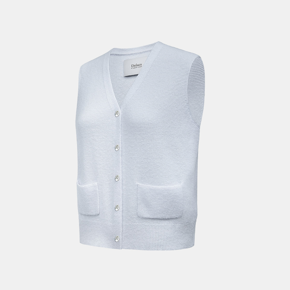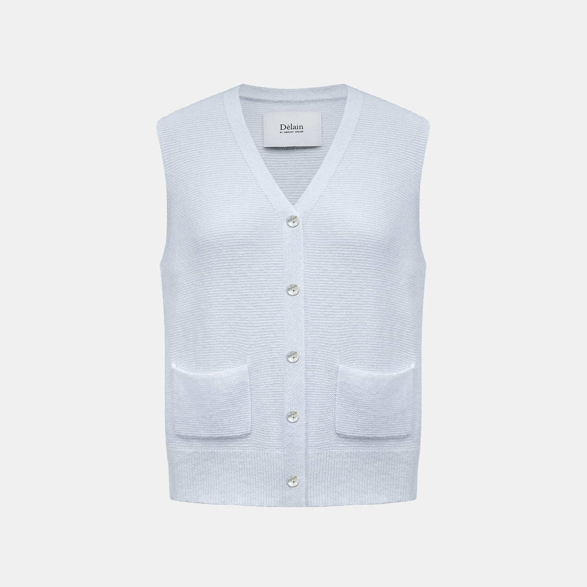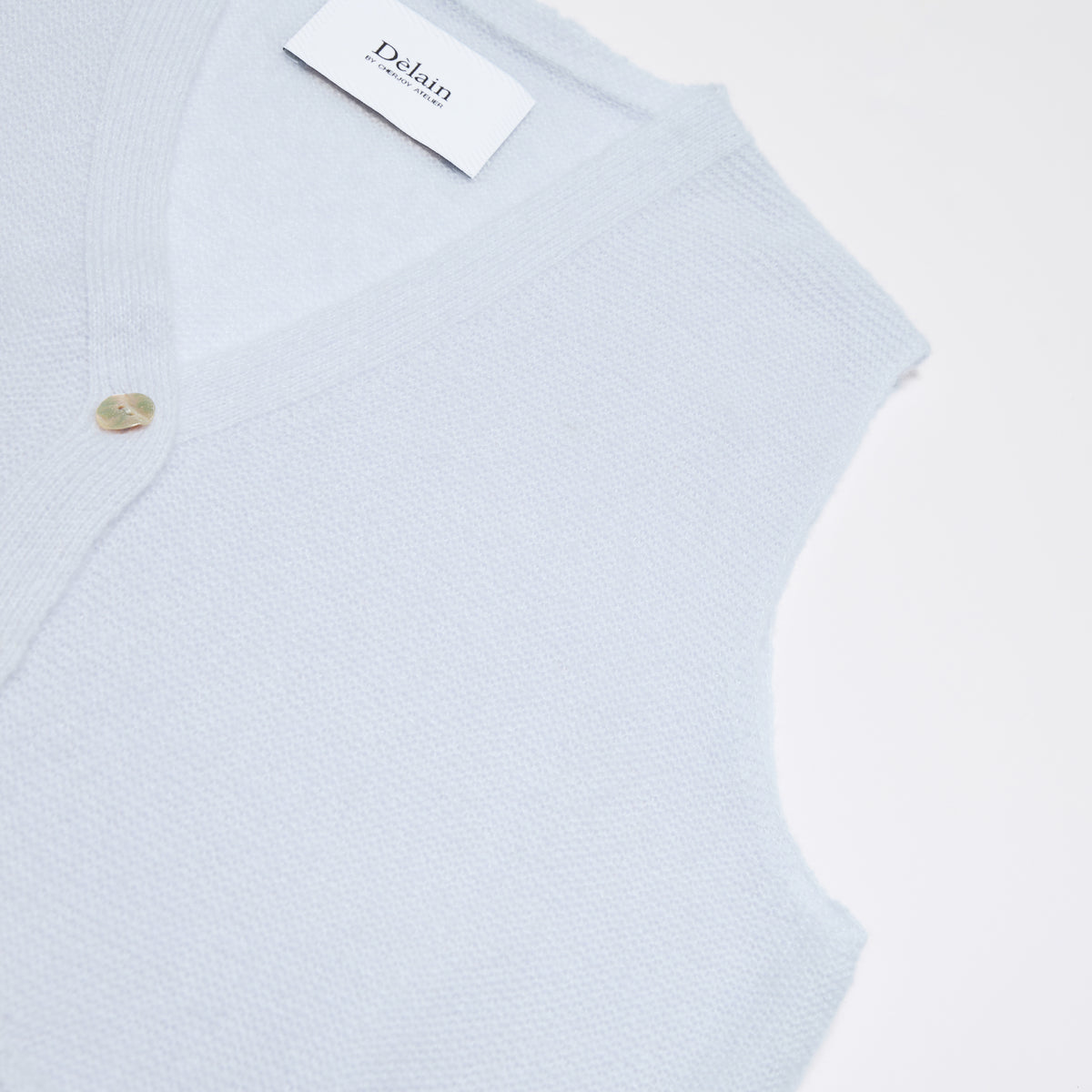 Spring Diary” Silk Cashmere真絲兩件式背心針織上衣—Azure Glow藍霧輕光