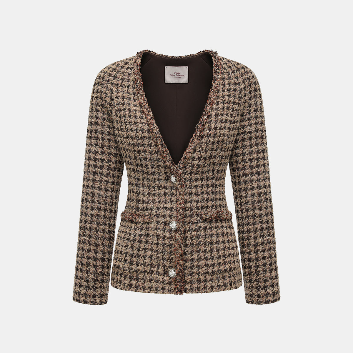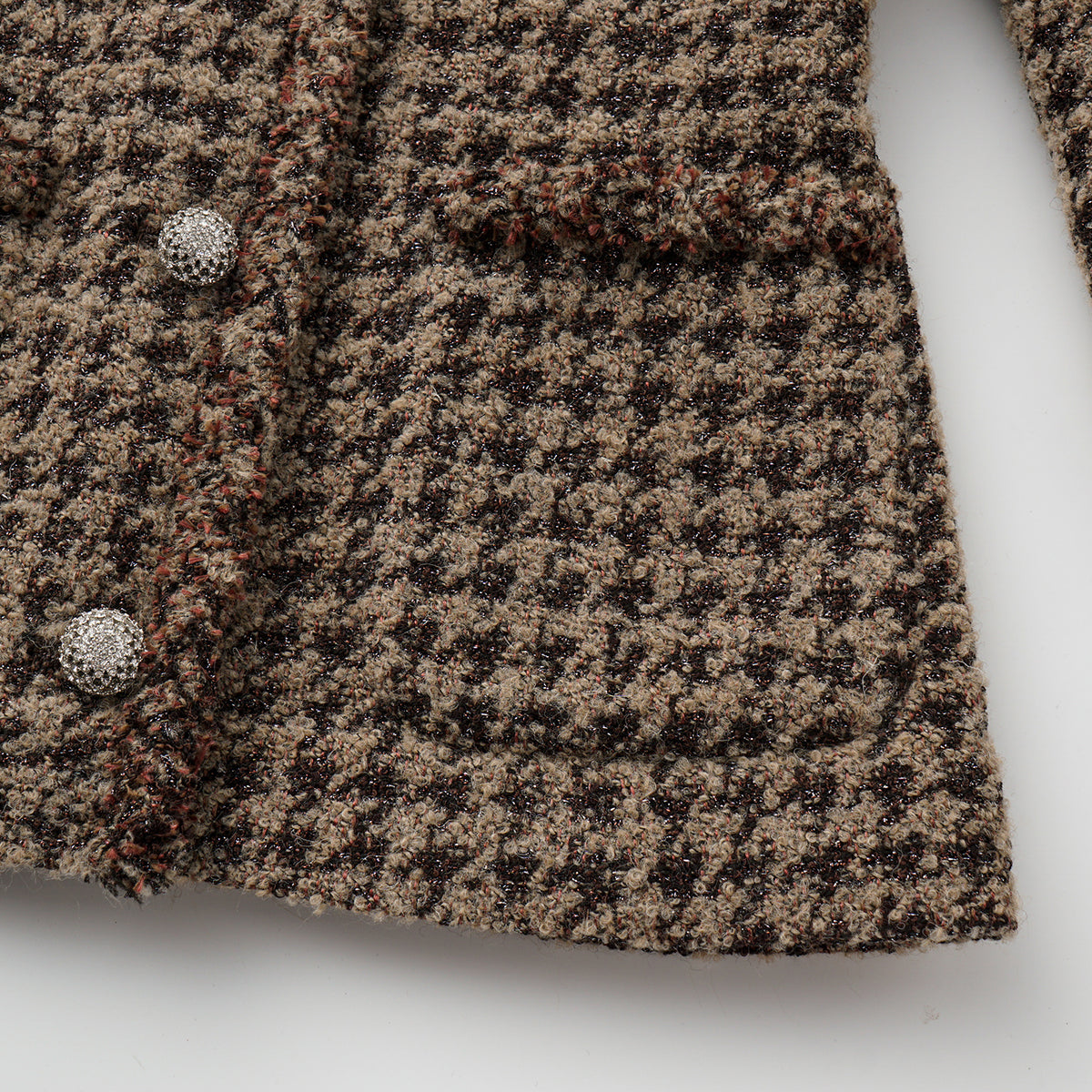 "Chelsea Citywalk." 義大利星紗簇絨緹花千鳥格修身外套—Timeworn Bloom歲月縫花